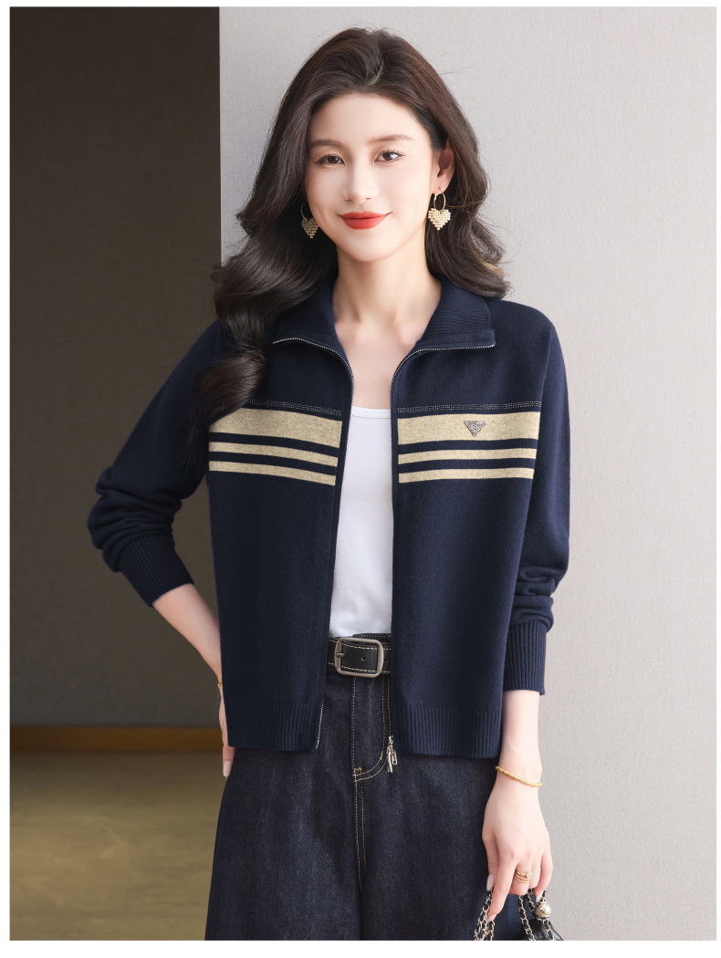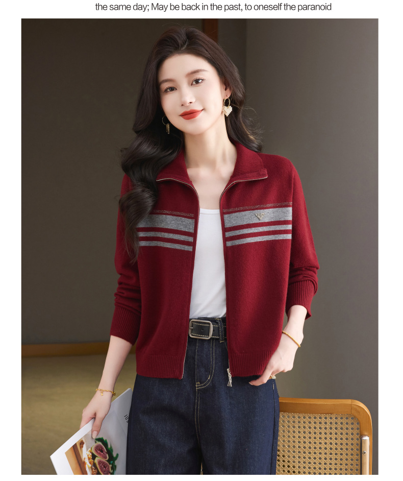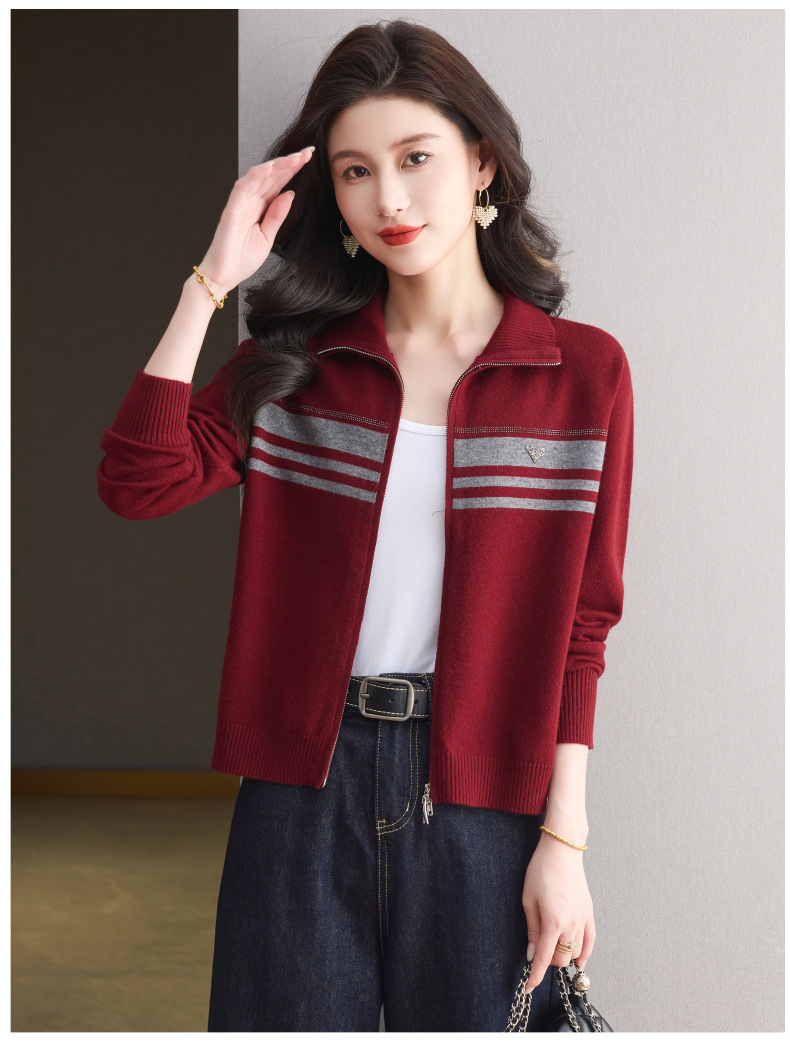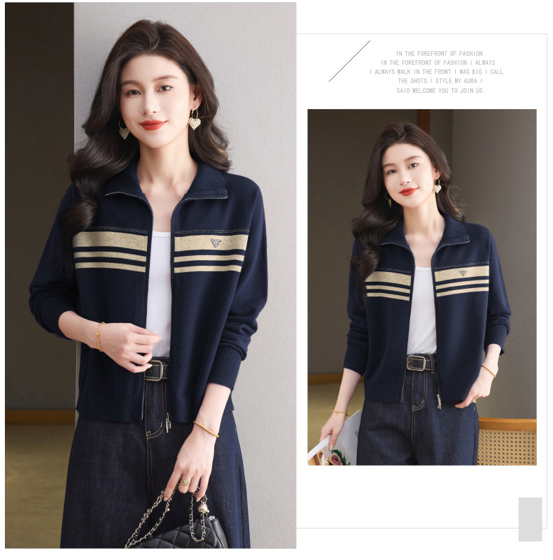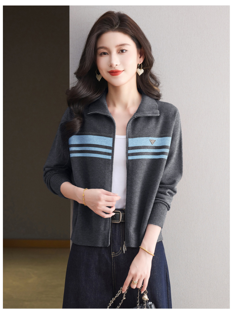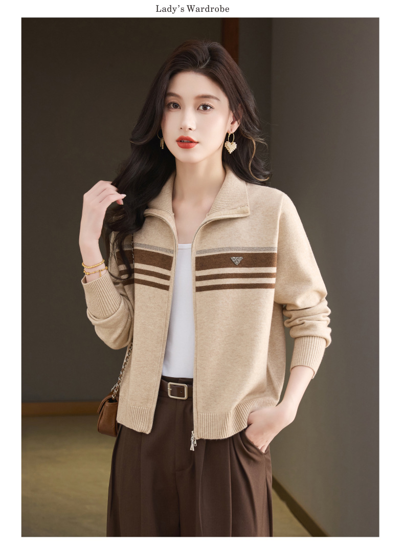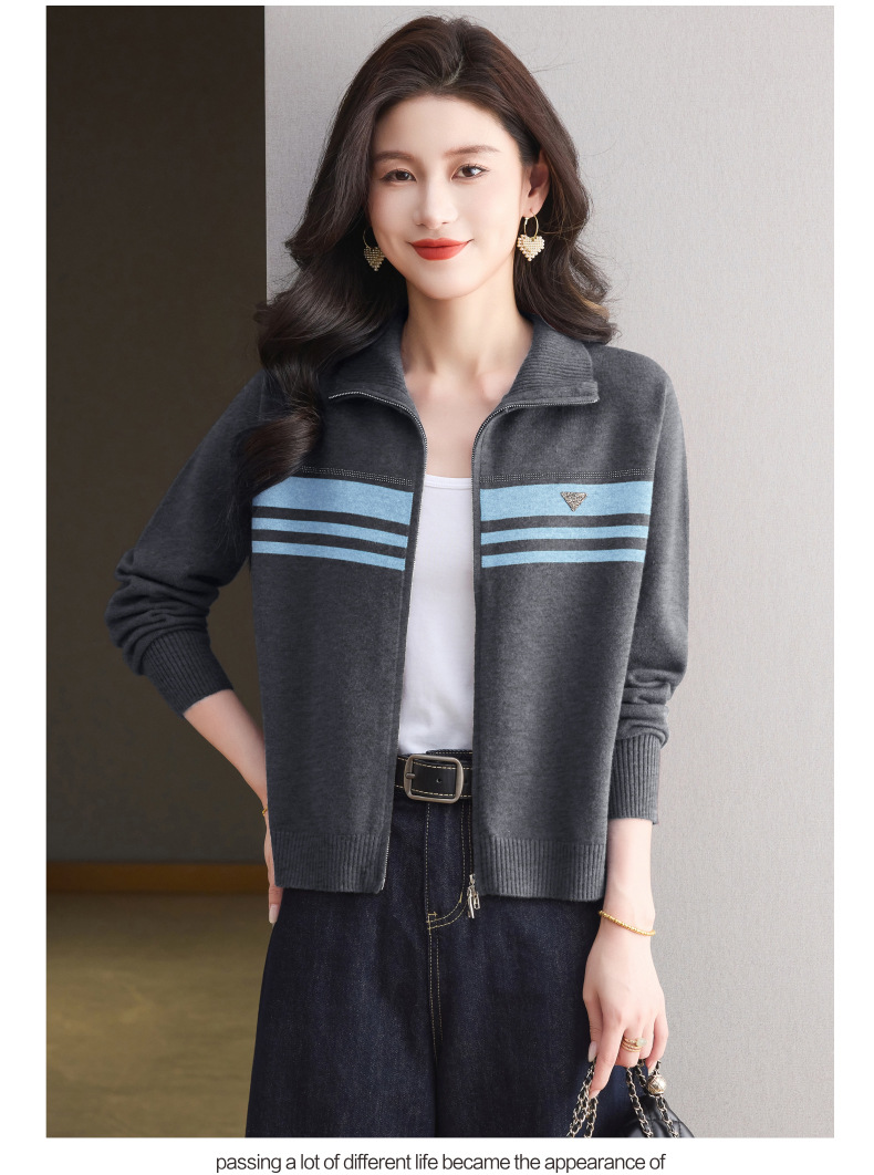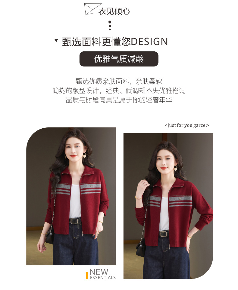 CC高级感秋装拉链翻领外套毛衣2025新款大码胖mm针织开衫女短款显瘦