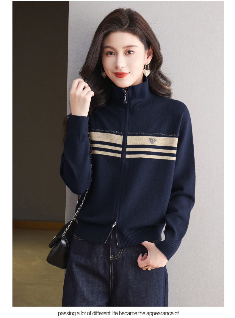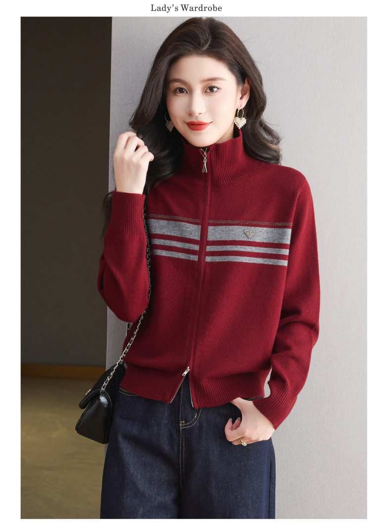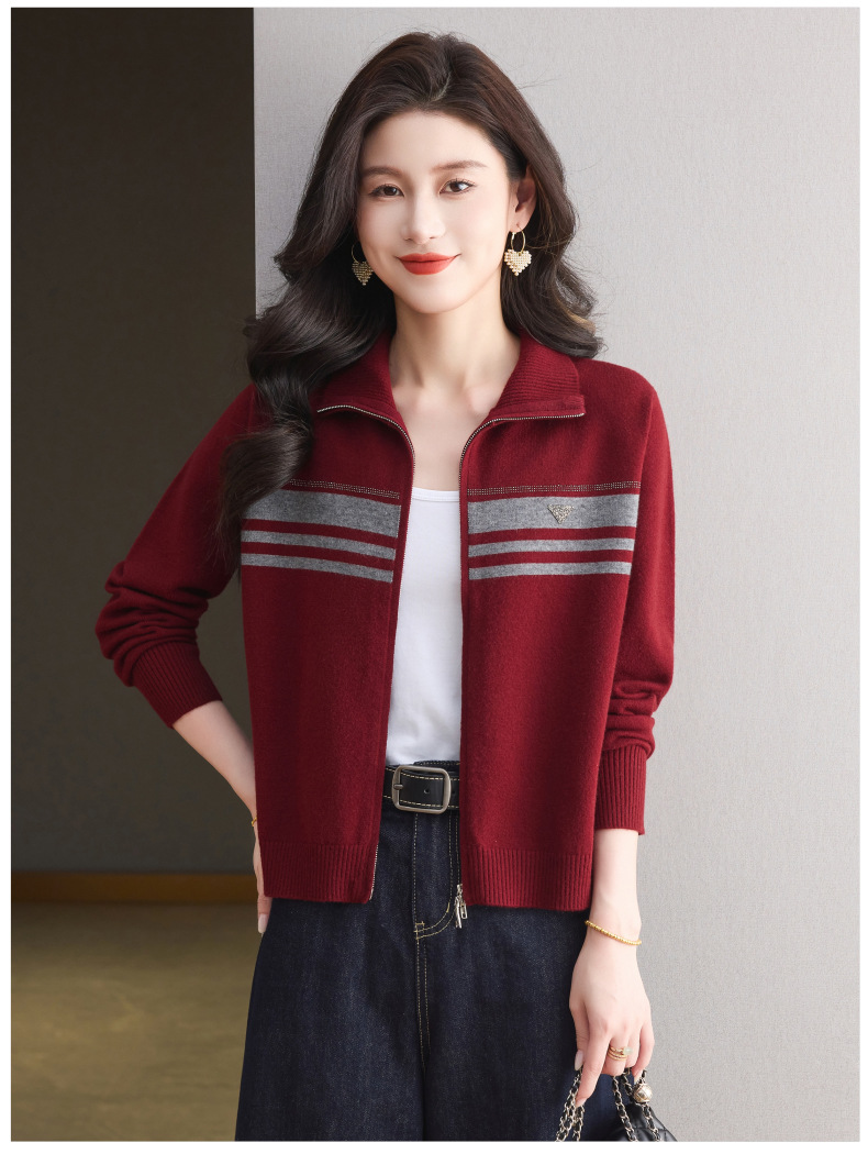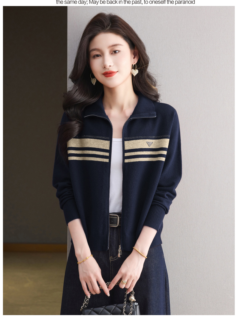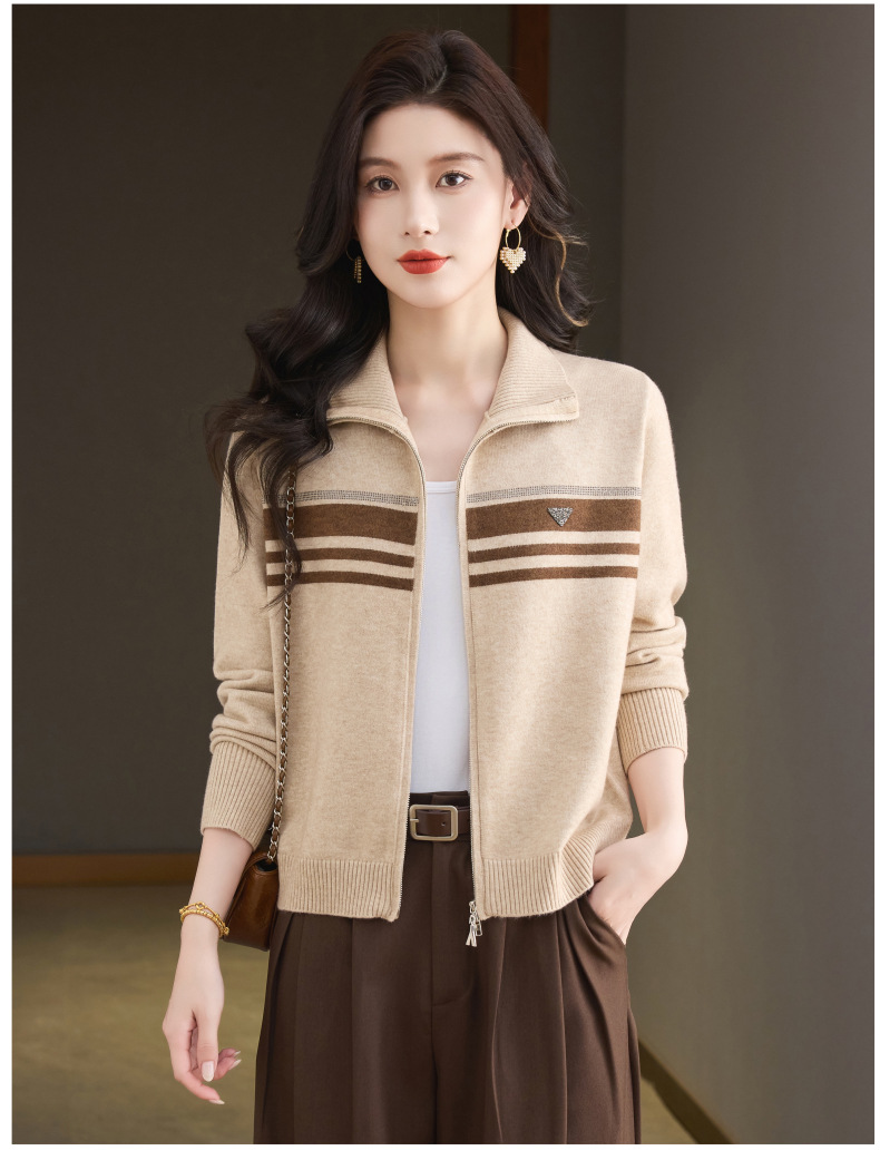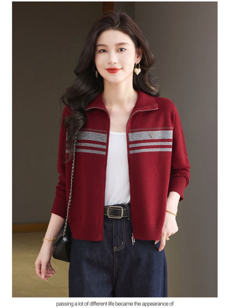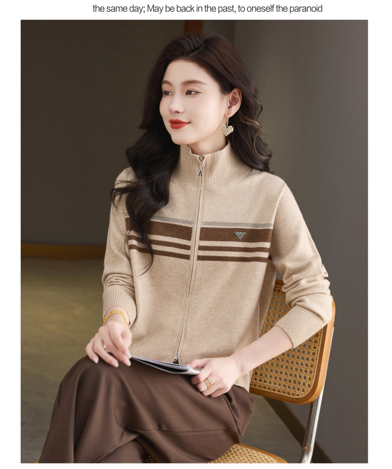 CC高级感秋装拉链翻领外套毛衣2025新款大码胖mm针织开衫女短款显瘦