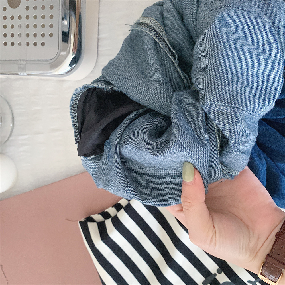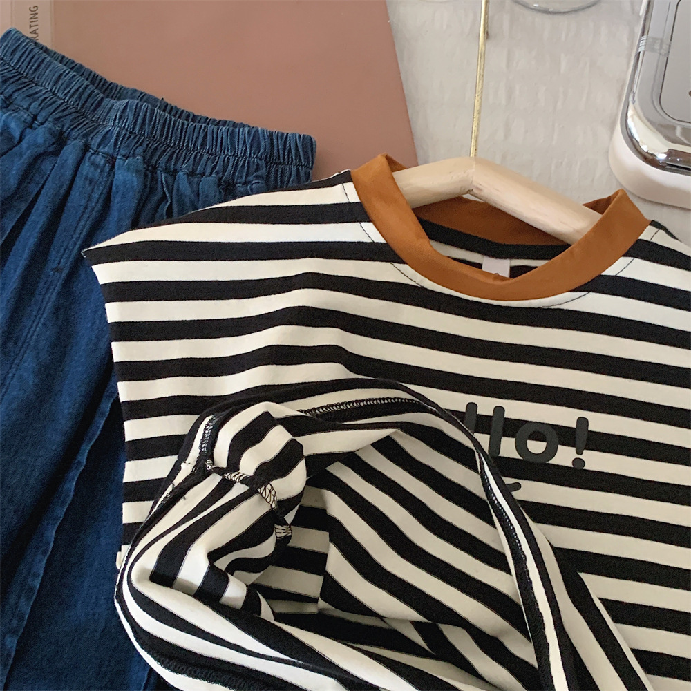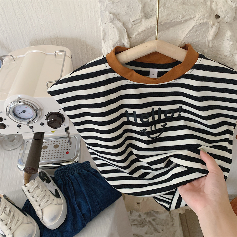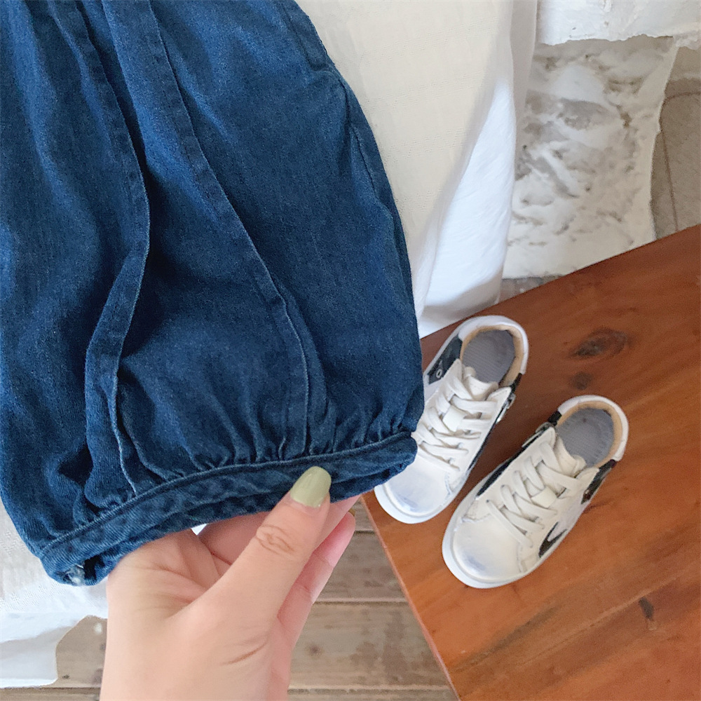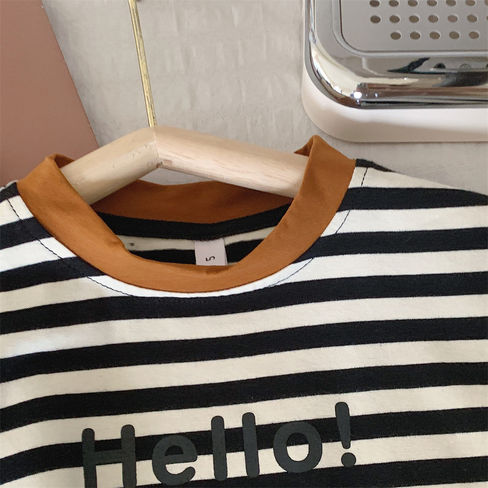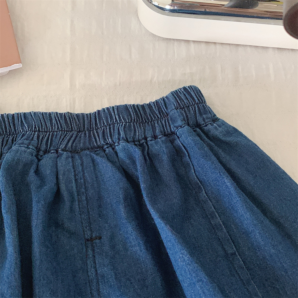 【冰丝凉爽透气,松紧裤腰带】2023夏季新款冰丝牛仔童装,圆领条纹设计凉爽透气不起球,儿童韩版冰瓷棉无袖套装男童痞帅一套-SH