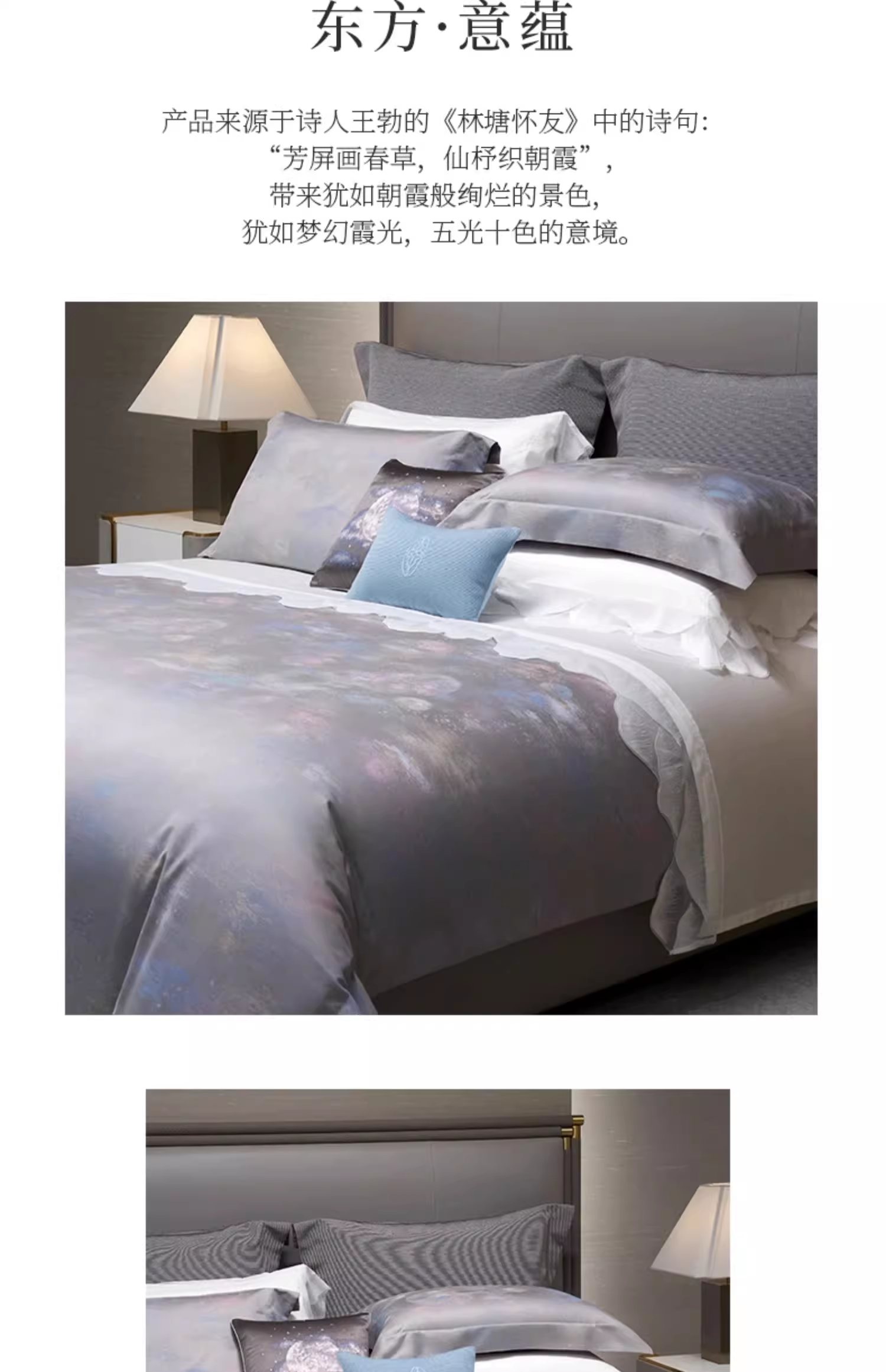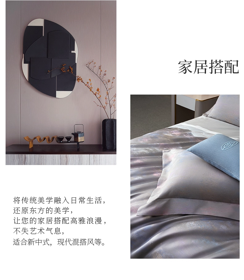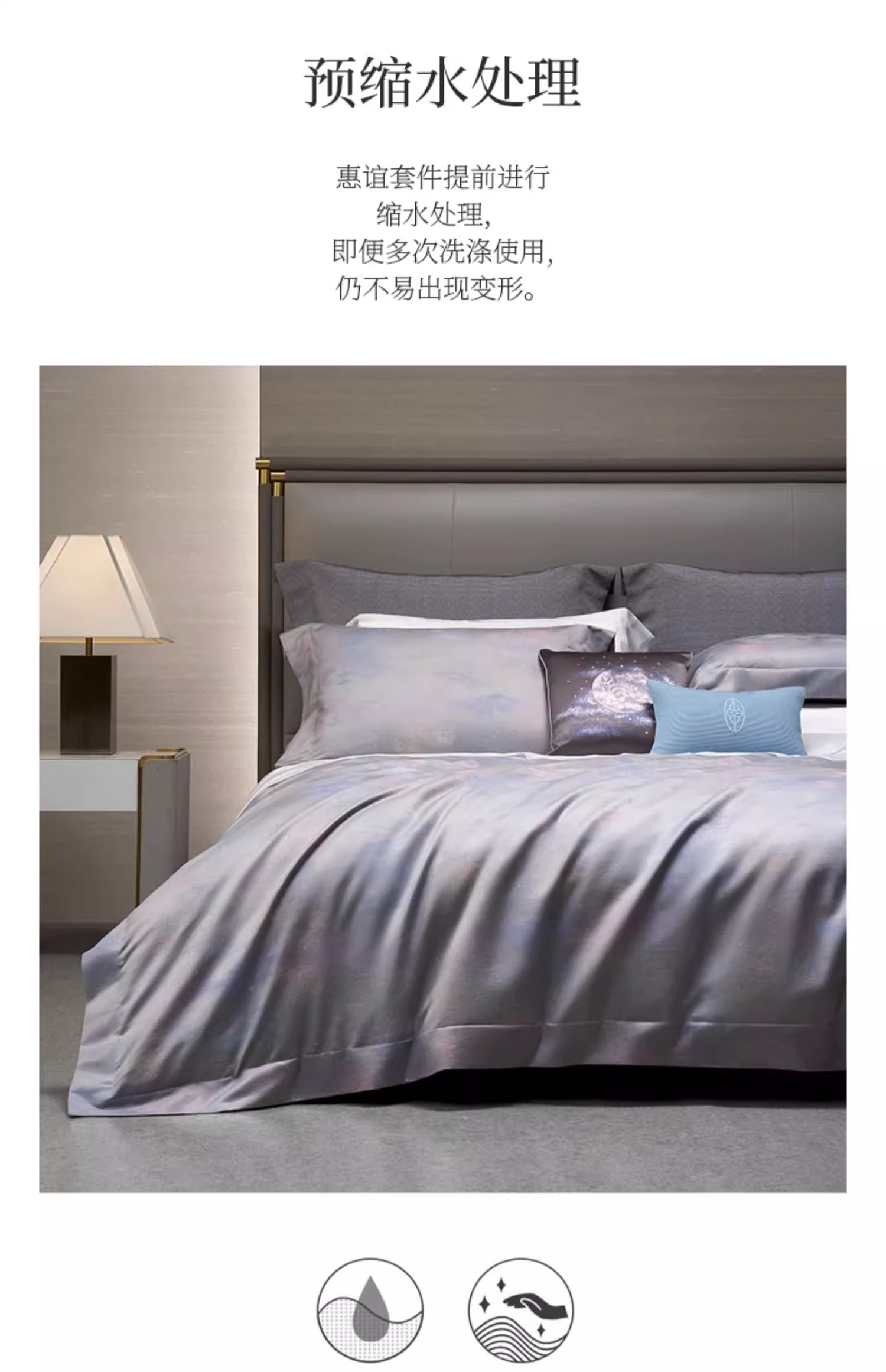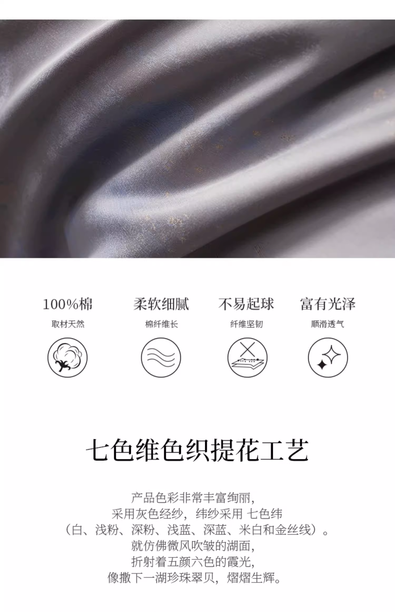 【whinny/惠谊】现代中式 埃及长绒棉进口全棉贡缎提花四件套 观霞