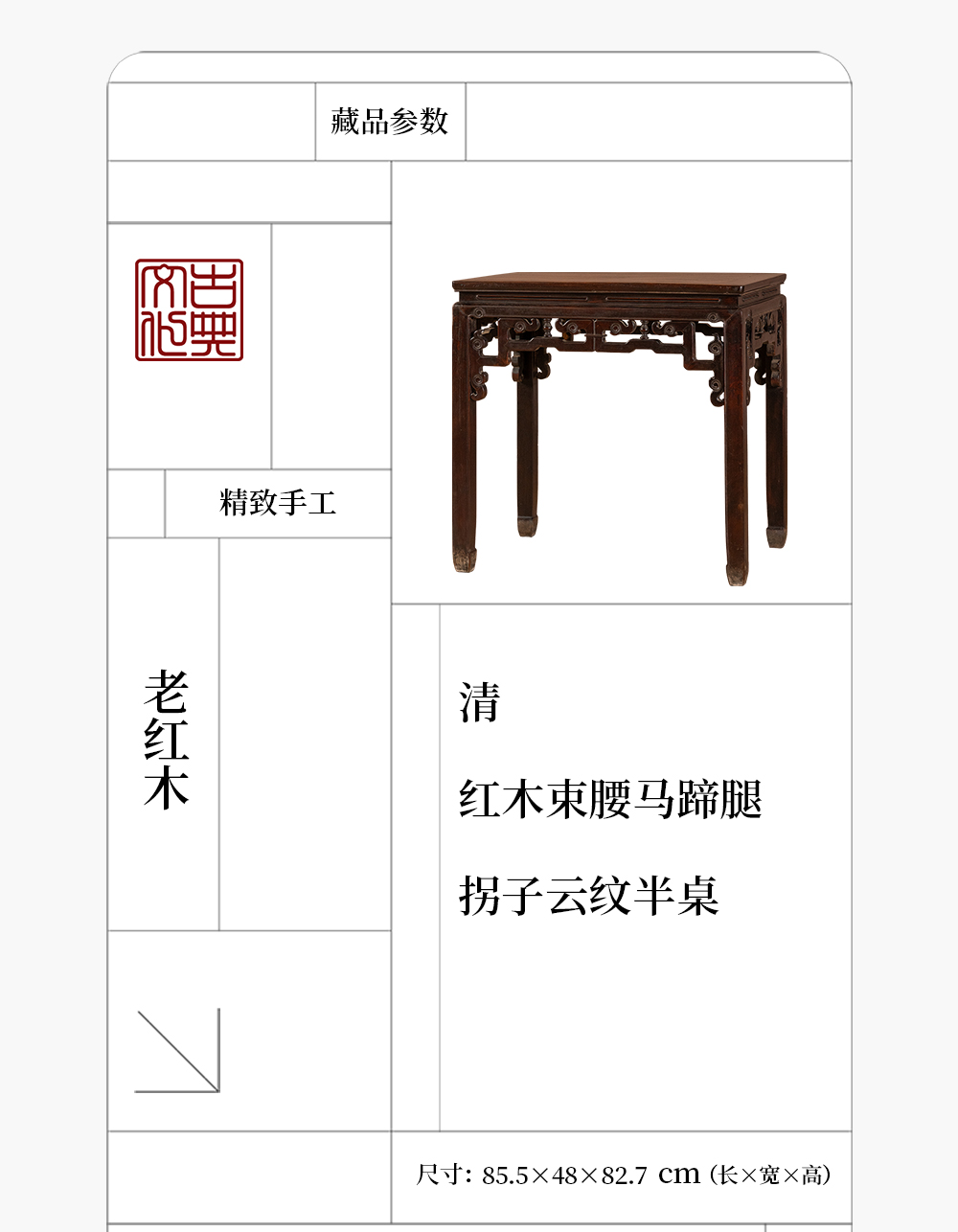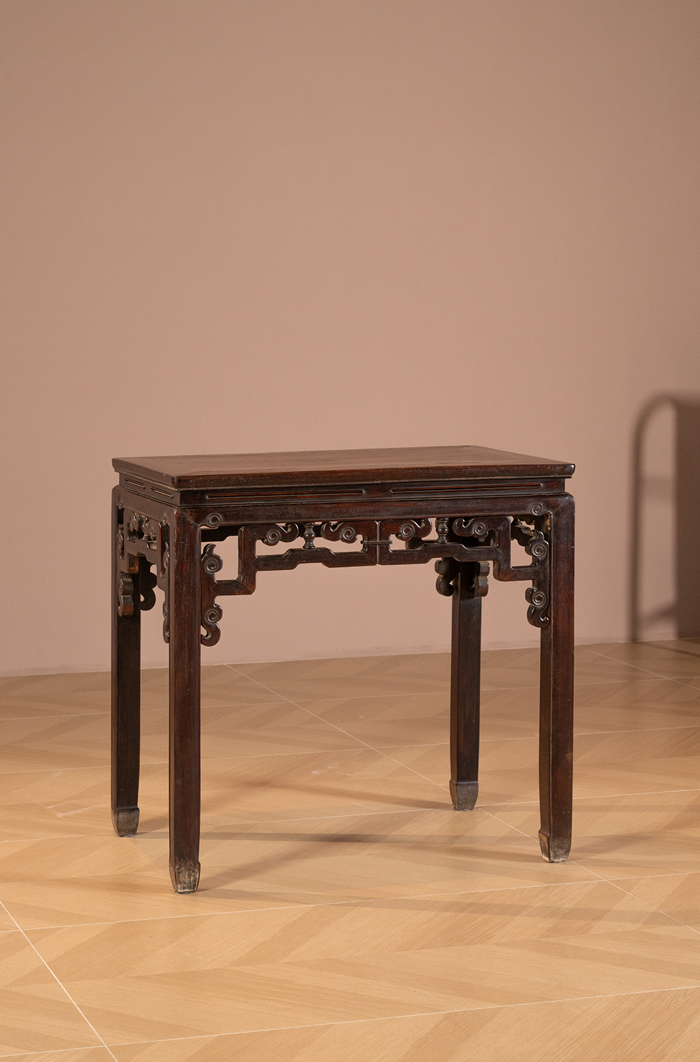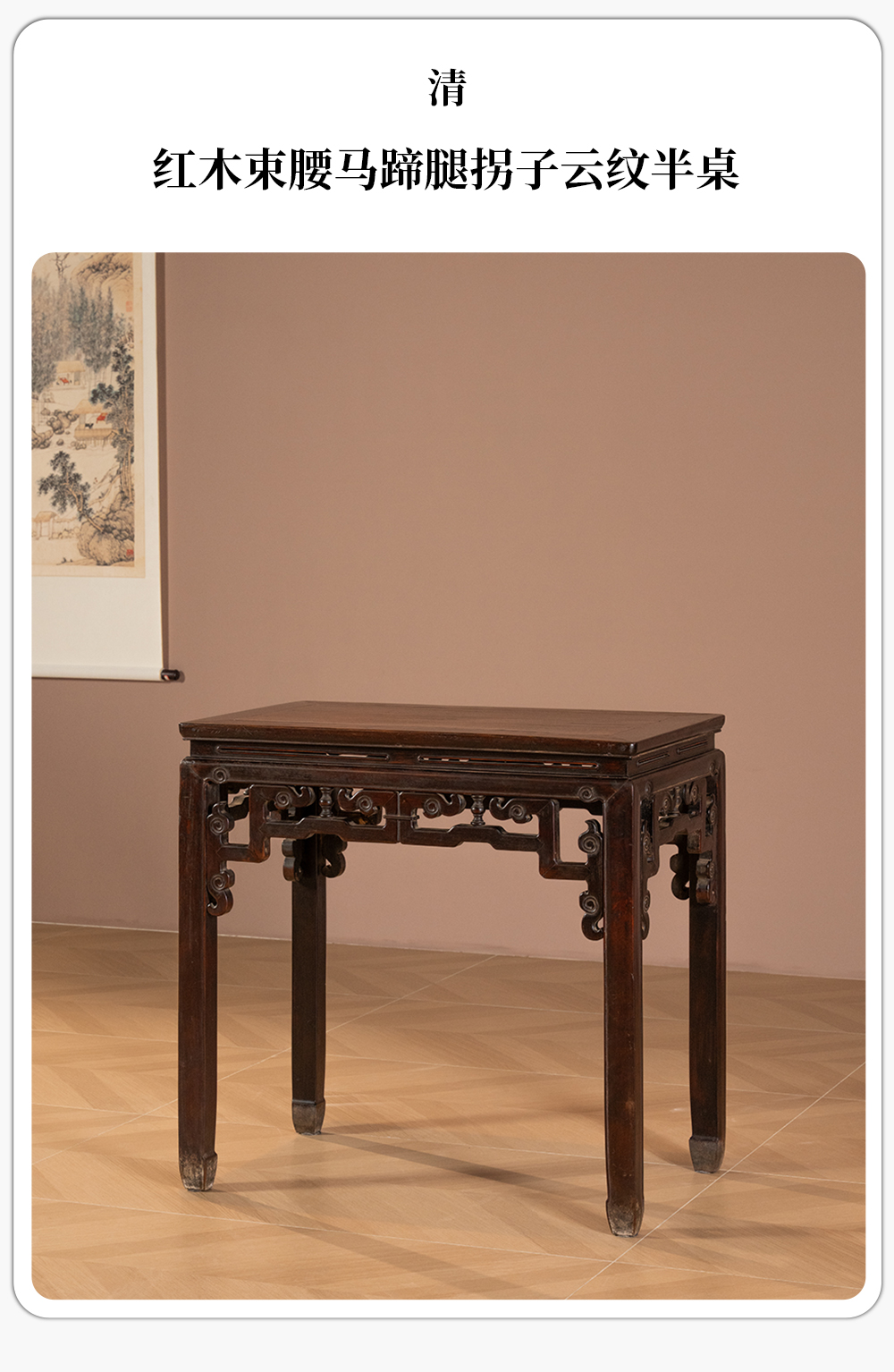 清 红木束腰马蹄腿拐子云纹半桌