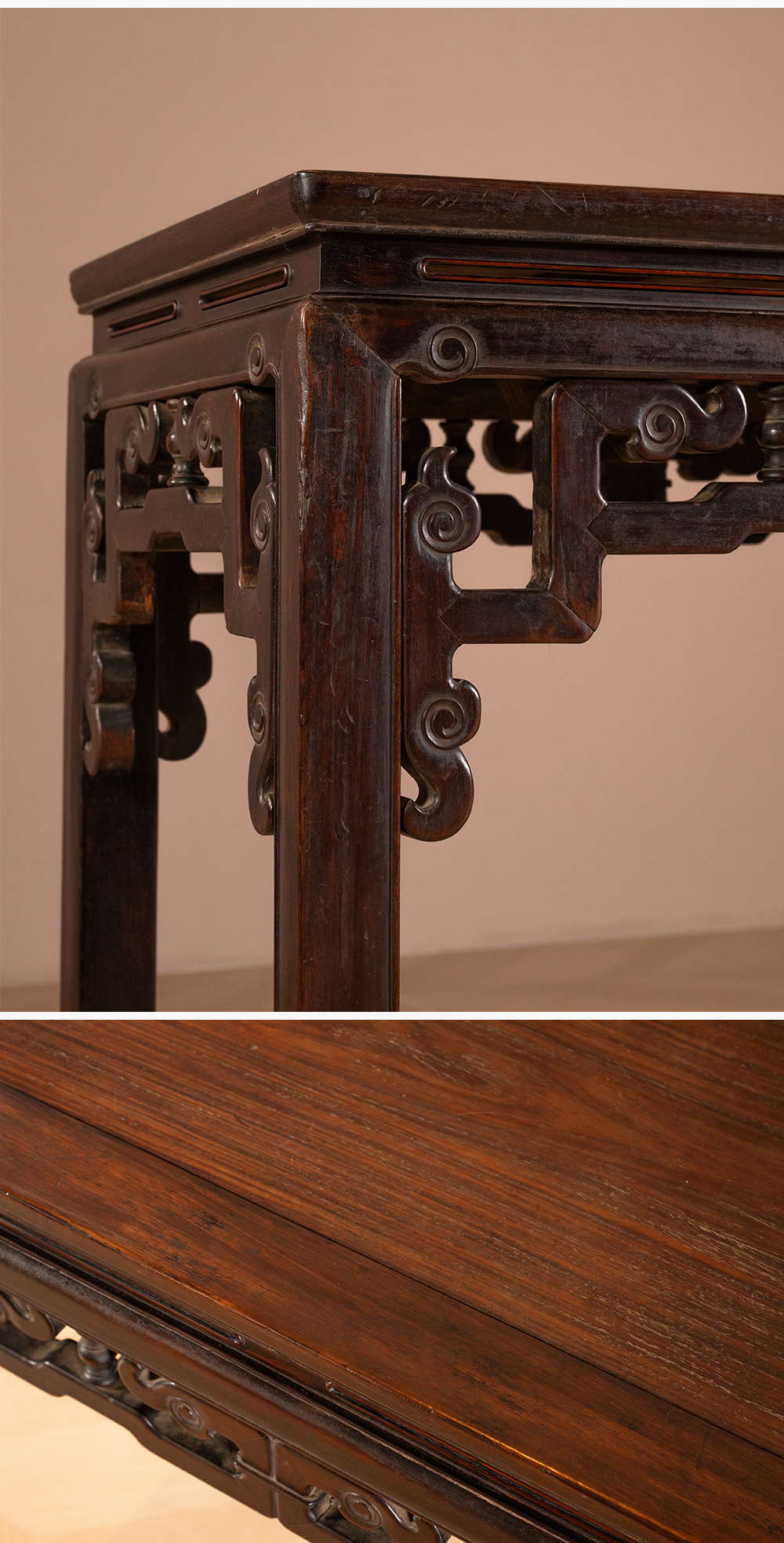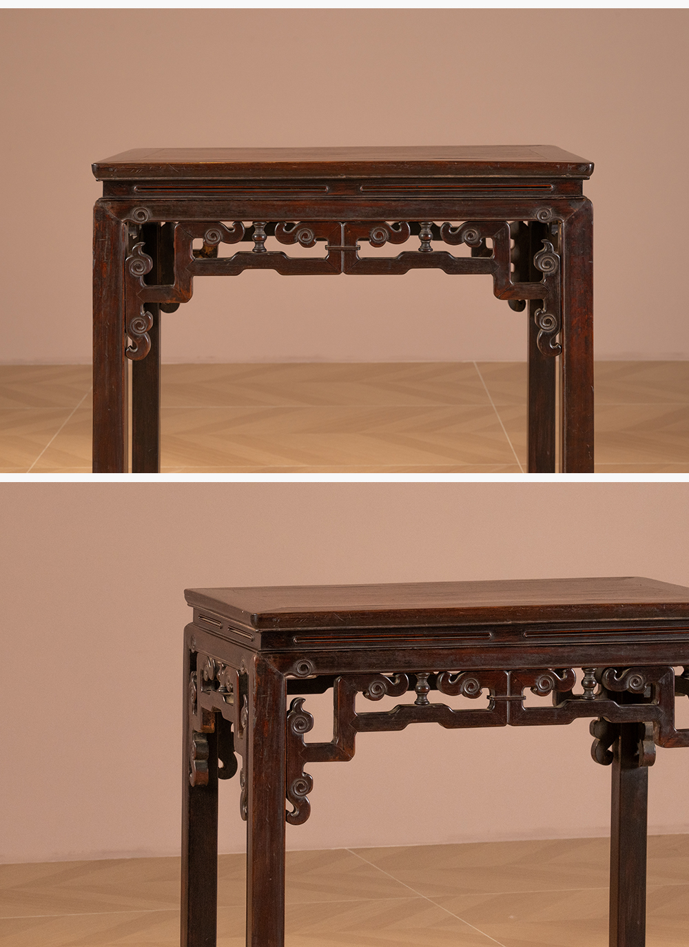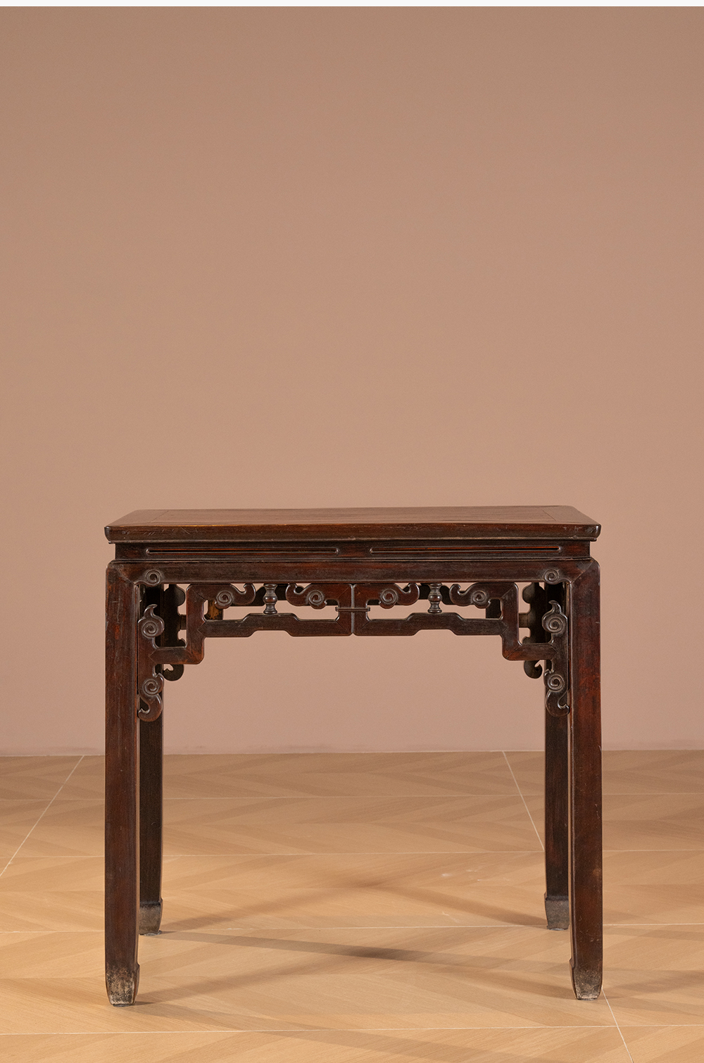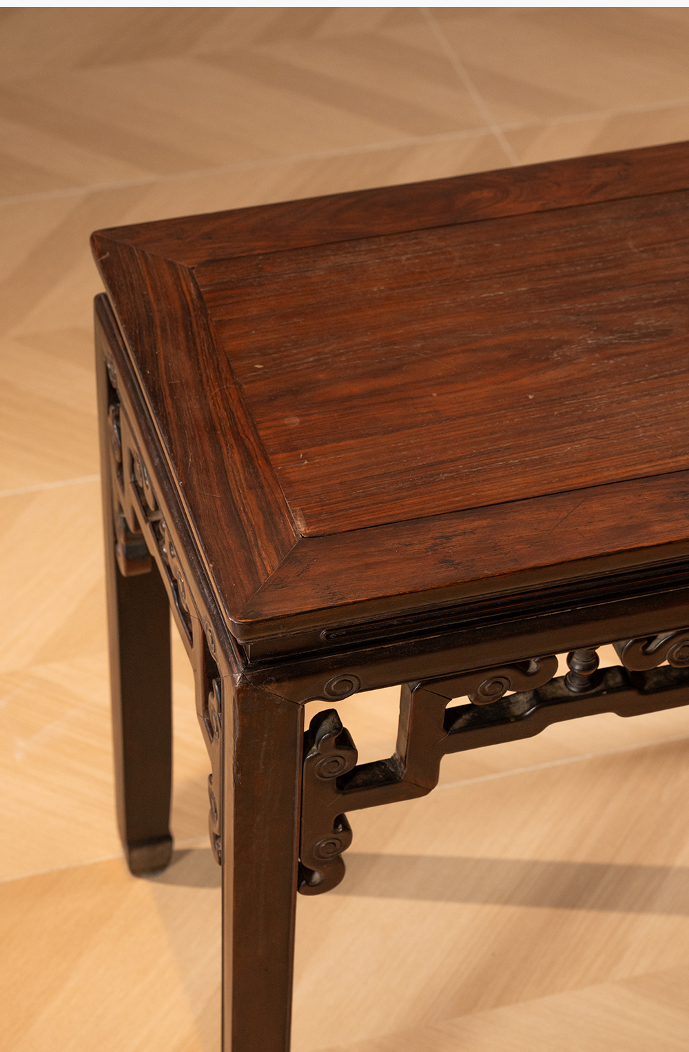 清 红木束腰马蹄腿拐子云纹半桌
