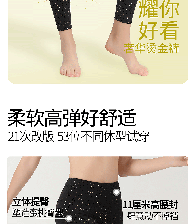 梵美人 F8050T 瑜伽九分裤 闪耀黑 裸感