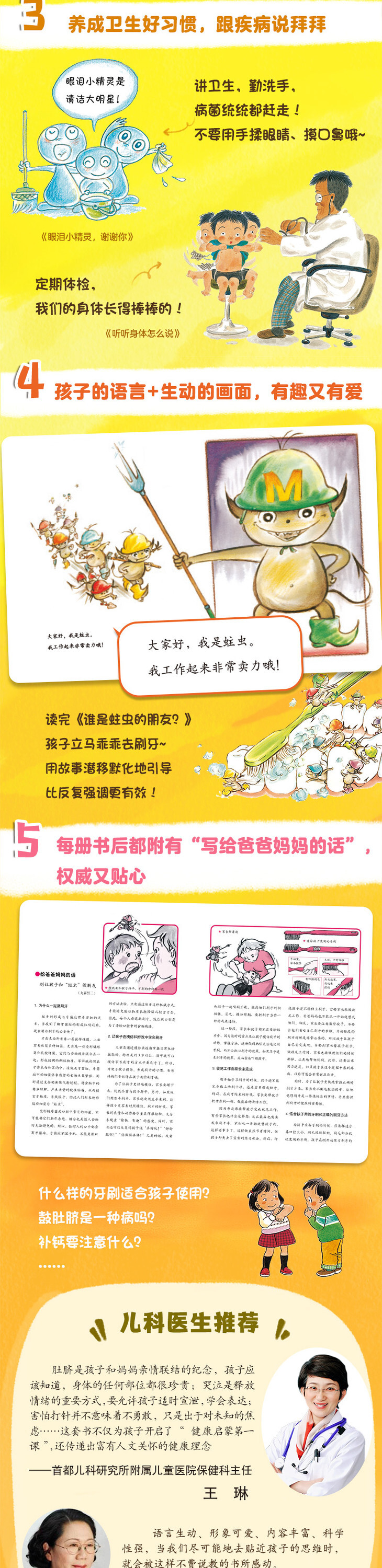 ☆ 每本书后都附有“给爸爸妈妈的话”,进一步介绍相关医学知识,为家长解答孩子的疑惑提供科学依据。