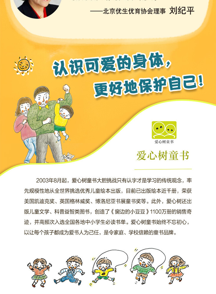 ☆ 不仅关心孩子的身体健康,还传递出富有人文关怀的理念。让孩子意识到身体的任何部位都一样珍贵,要学会表达情绪、爱惜自己身体、尊重他人身体等等;