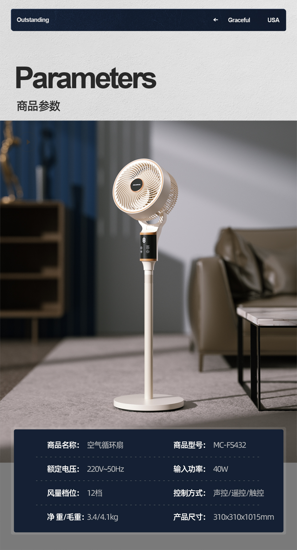 迈卡罗 空气循环扇 (电子款)MC-FS432