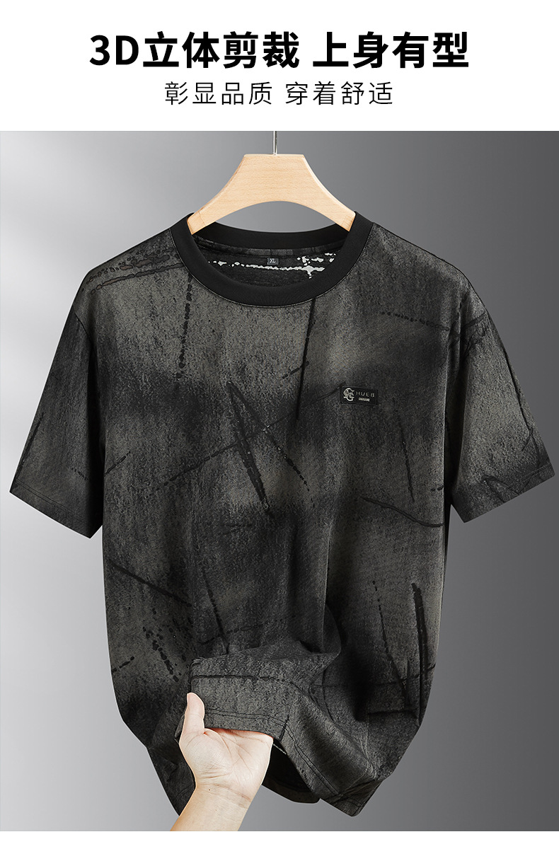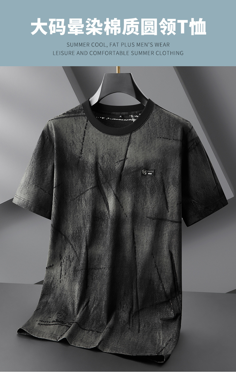 【DPF】大依优型大码做旧短袖T恤男士加肥大码夏季圆领半袖打底衫胖子宽松休闲上衣