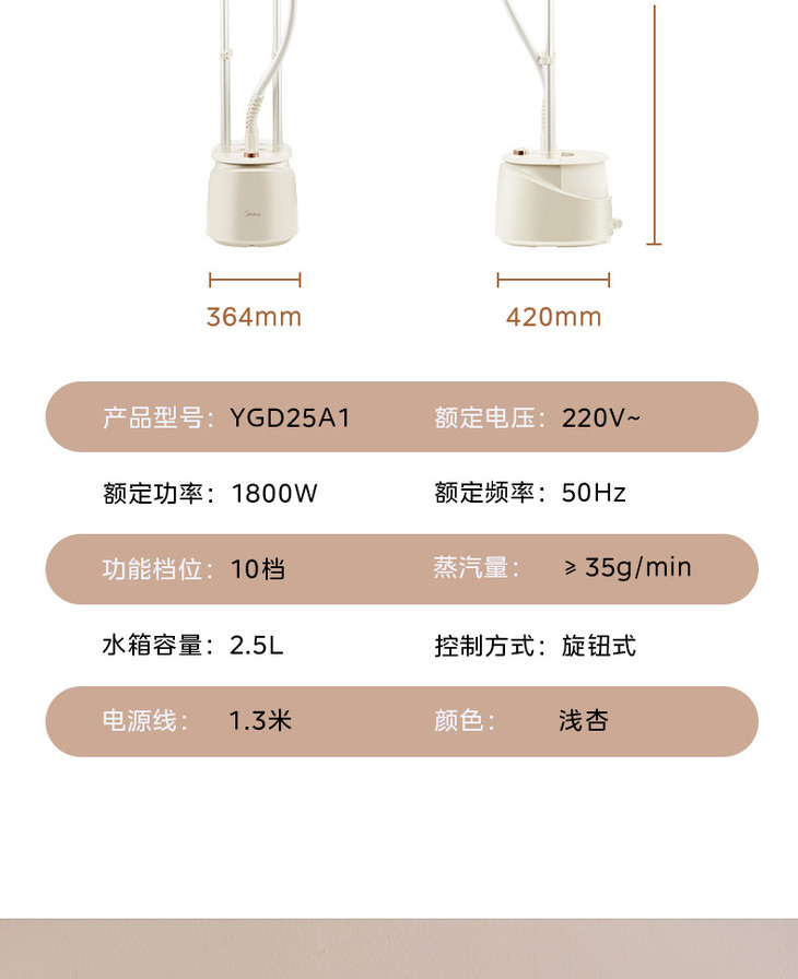【美的 YGD25A1挂烫机】烫衣服蒸汽熨斗家用服装店商用专用挂式熨烫机