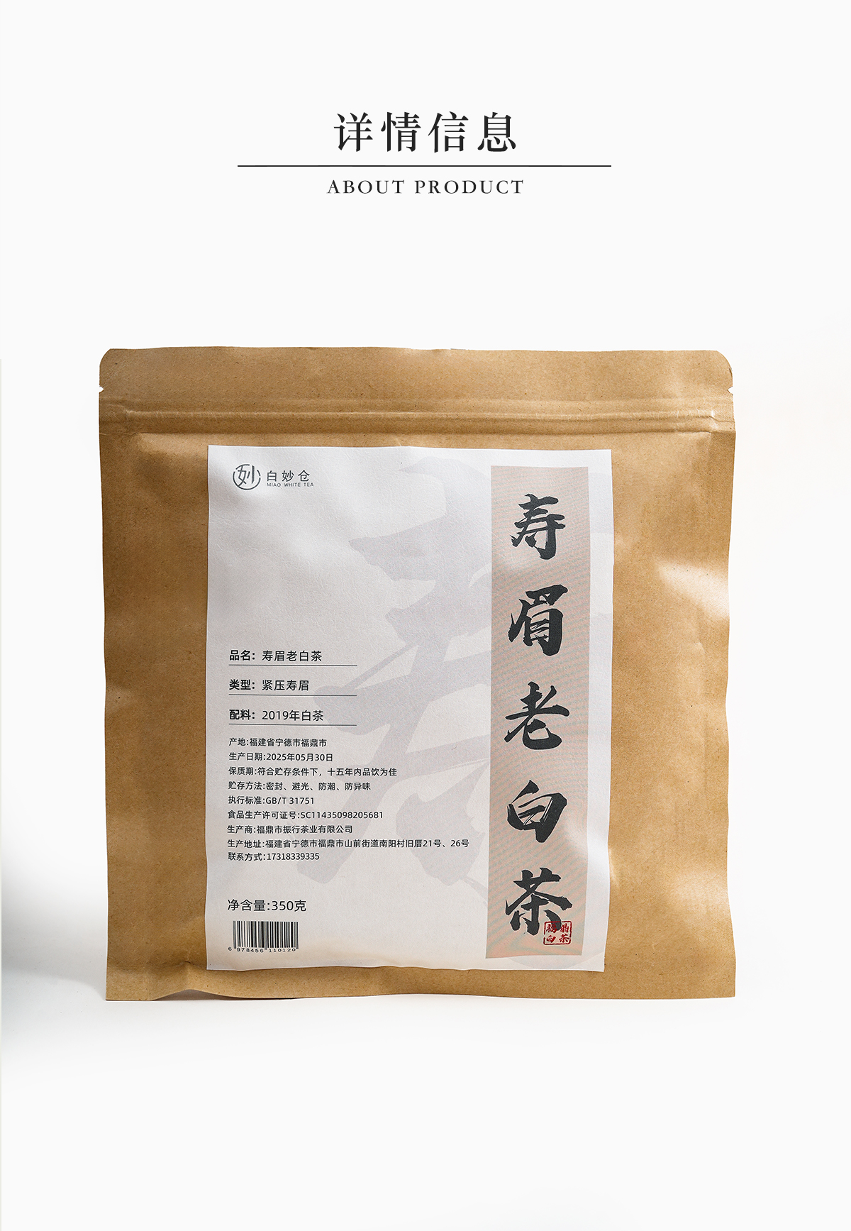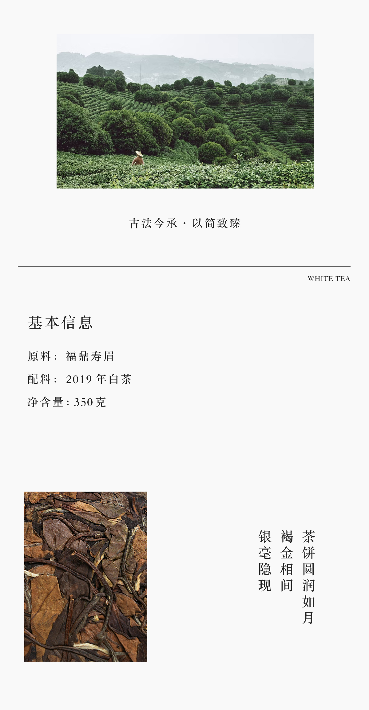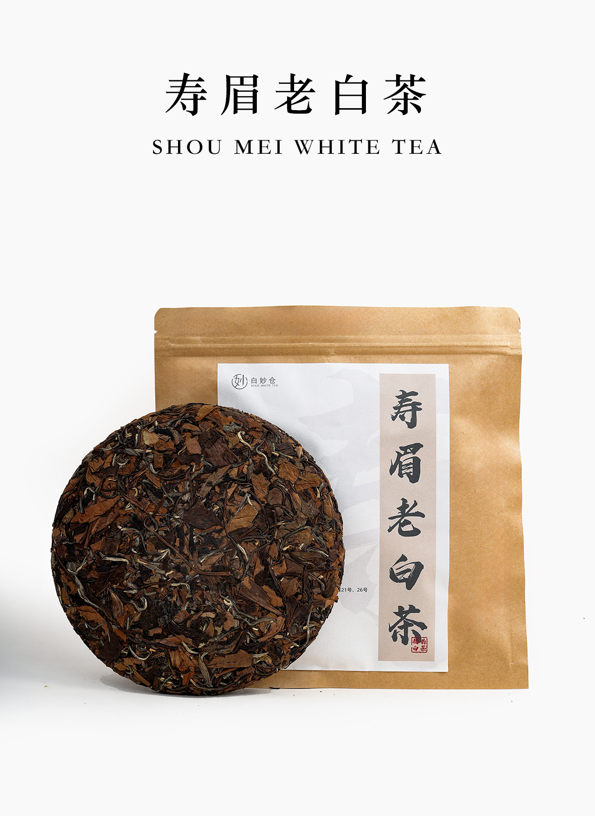 白茶 2019寿眉老白茶饼茶简易包装 350g/饼