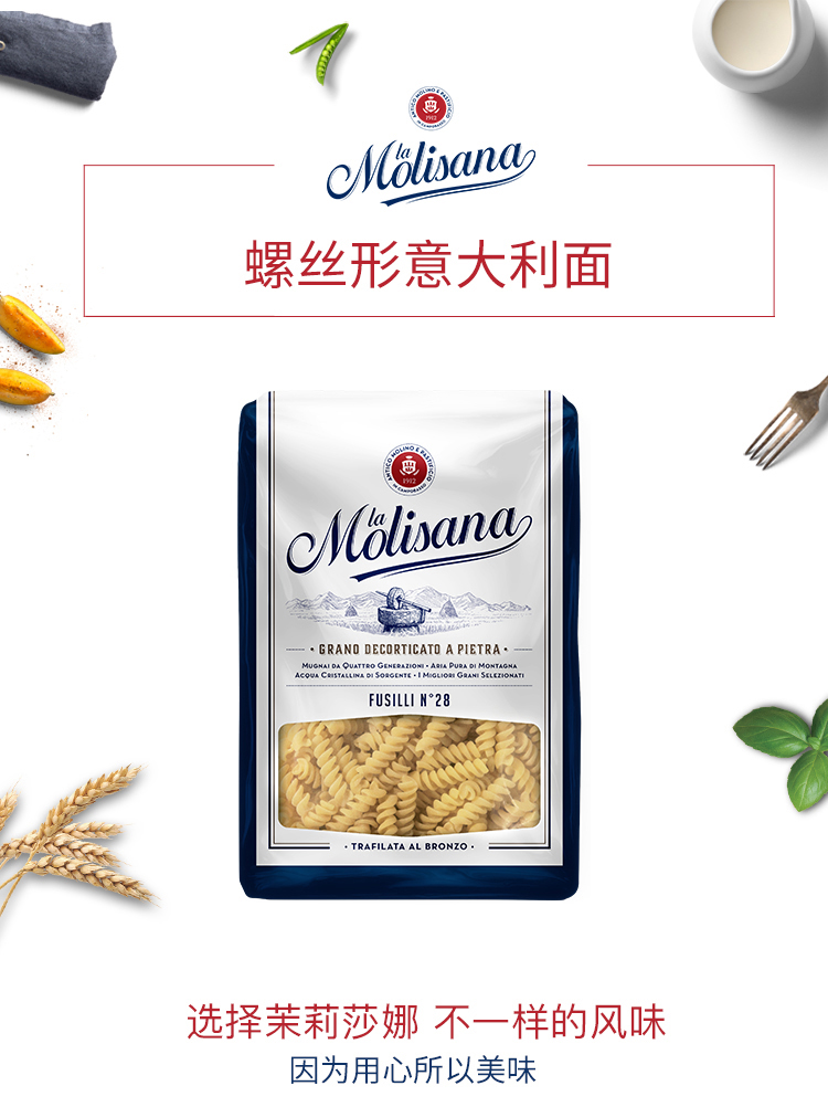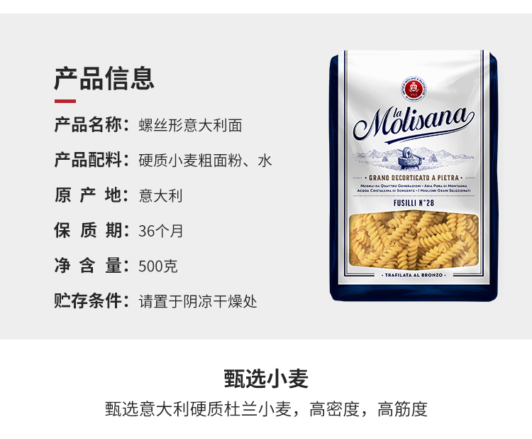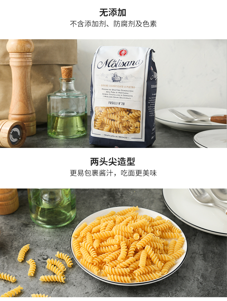 Molisana茉莉莎娜螺旋形意大利面500g 进口螺丝形意粉意面通心粉
