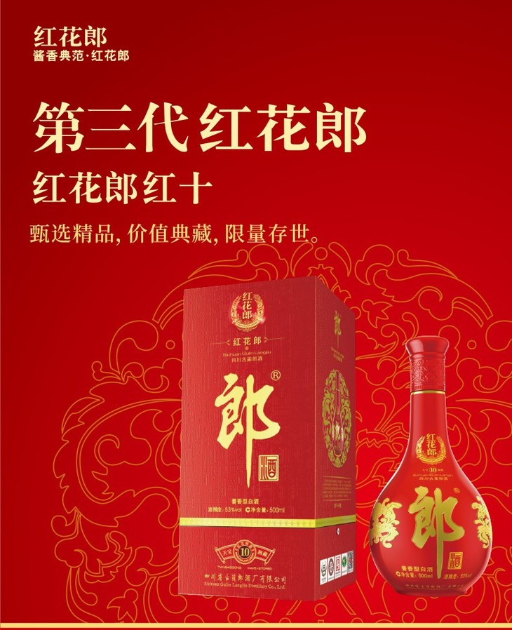 【推荐】2018年 郎酒 红花郎十(10) 500ml*2酱香型