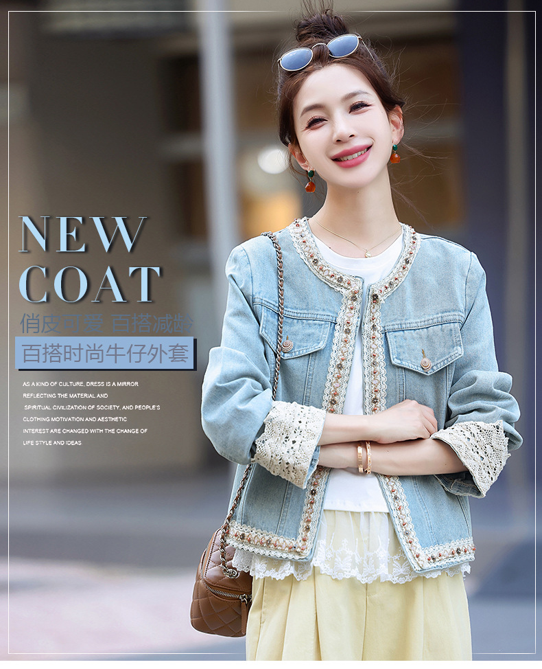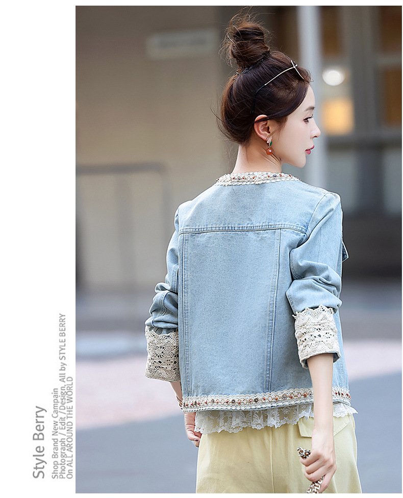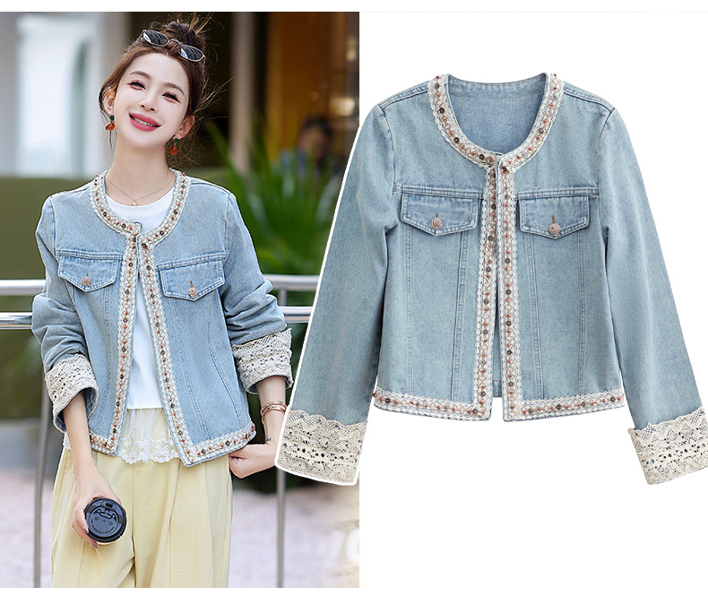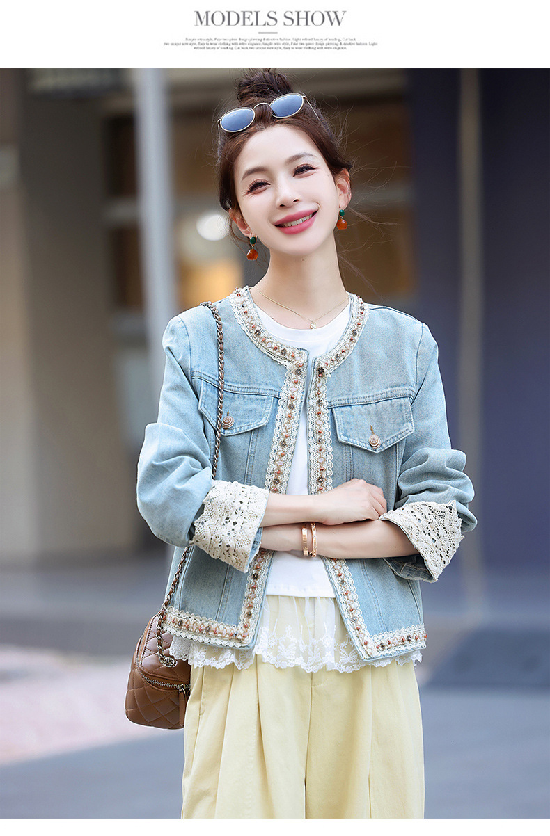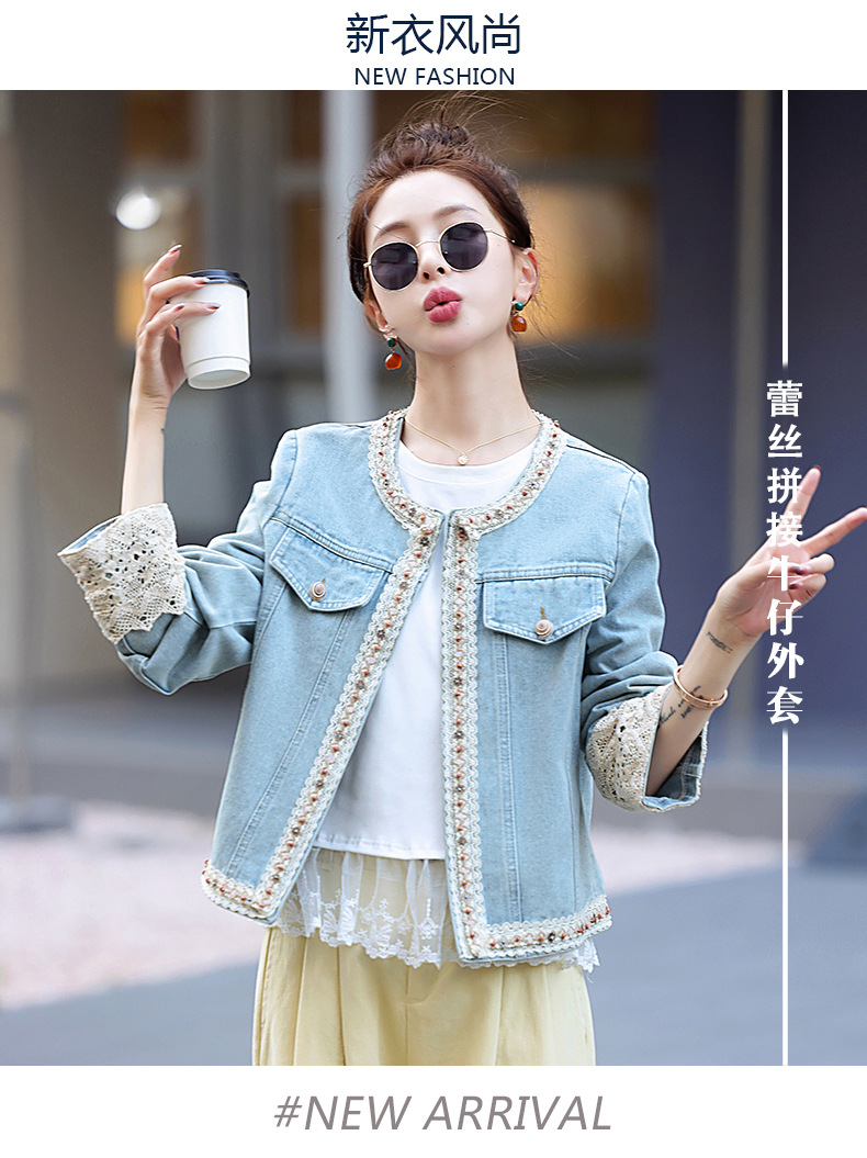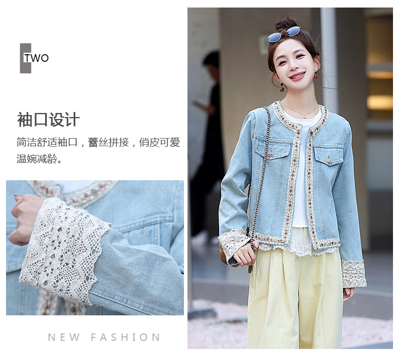 【预售3天】重工轻奢蕾丝拼接短款牛仔外套2025春秋新款时尚名媛减龄百搭XYFS6786