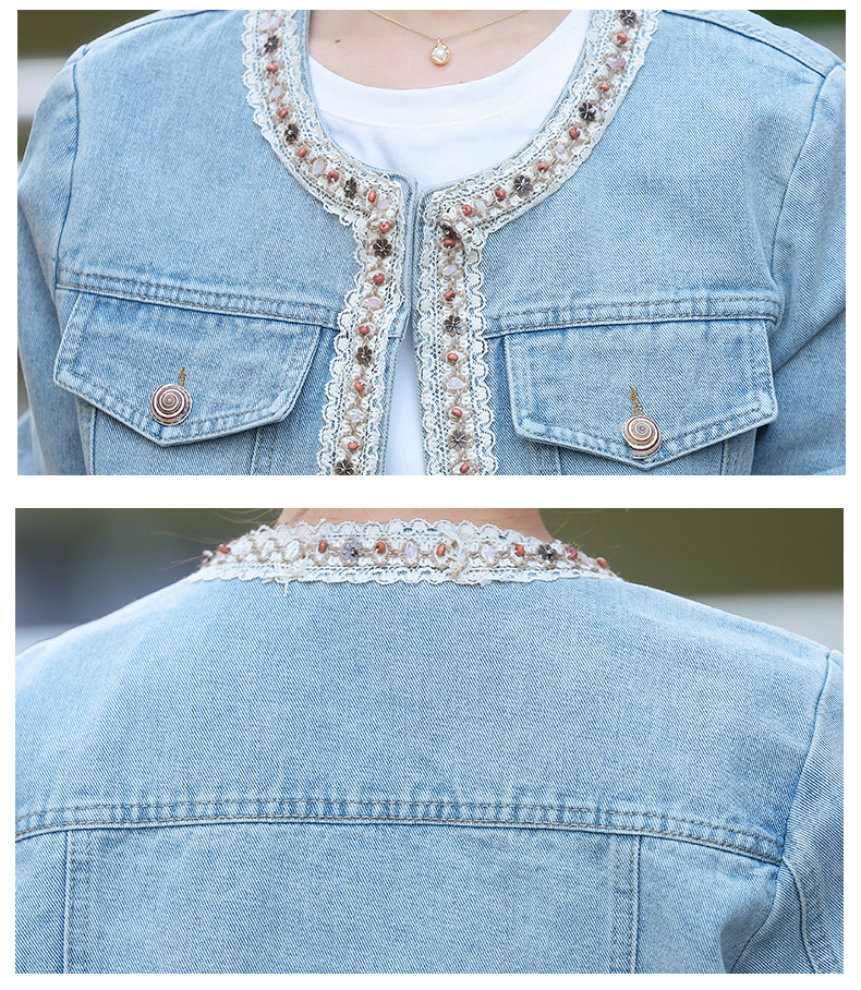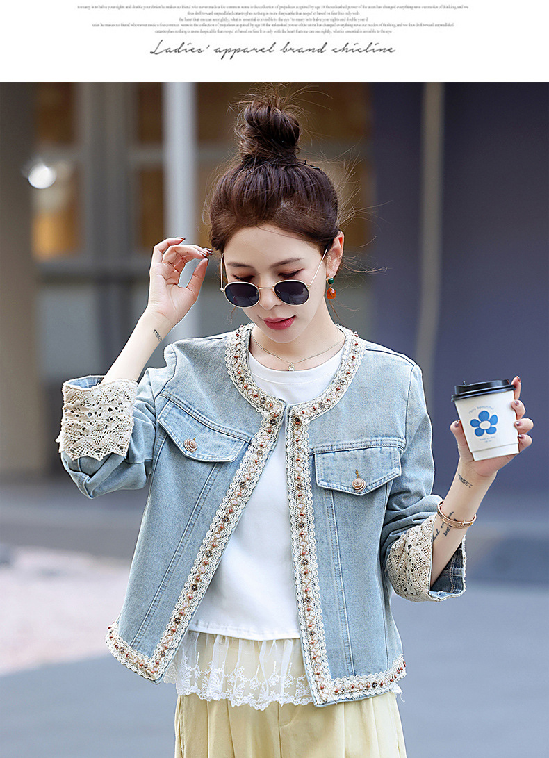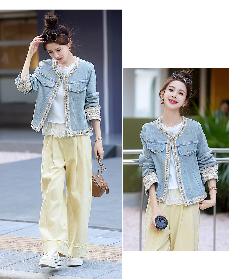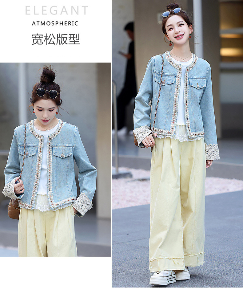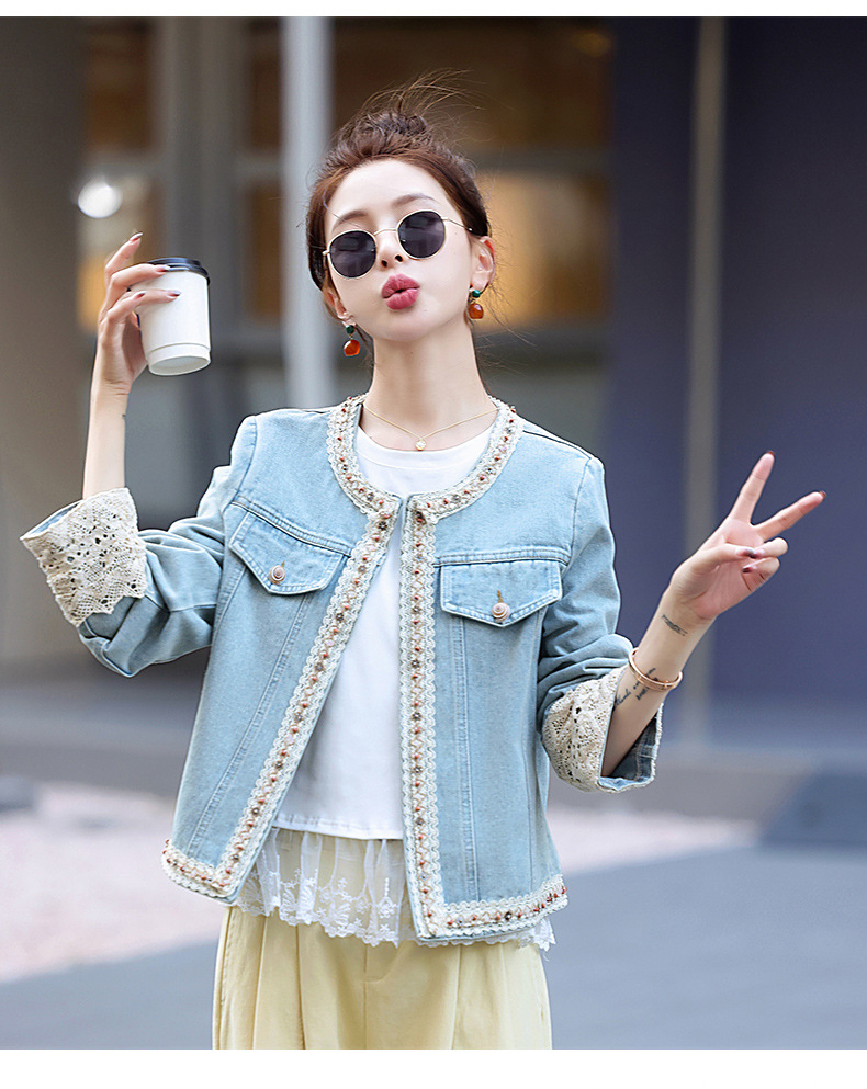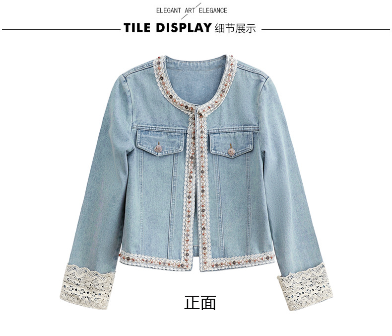 【预售3天】重工轻奢蕾丝拼接短款牛仔外套2025春秋新款时尚名媛减龄百搭XYFS6786