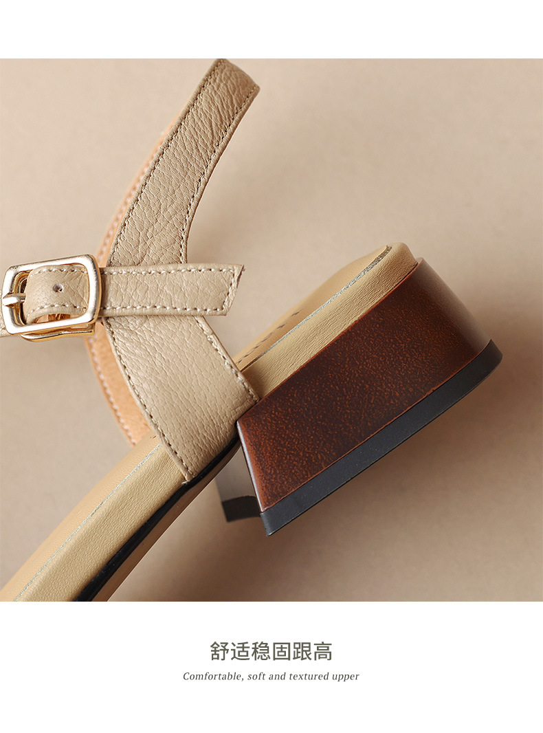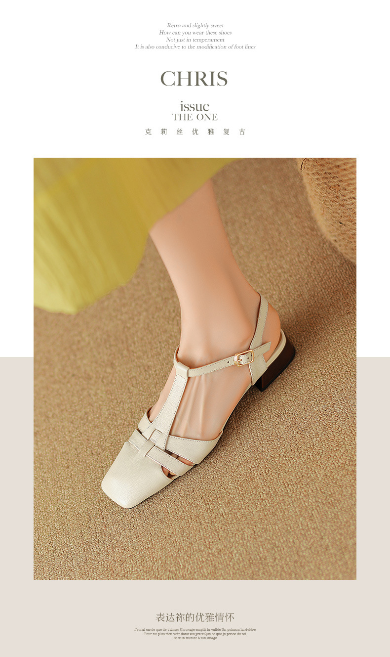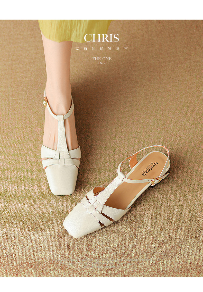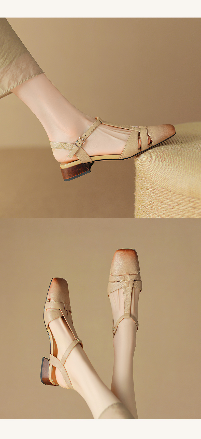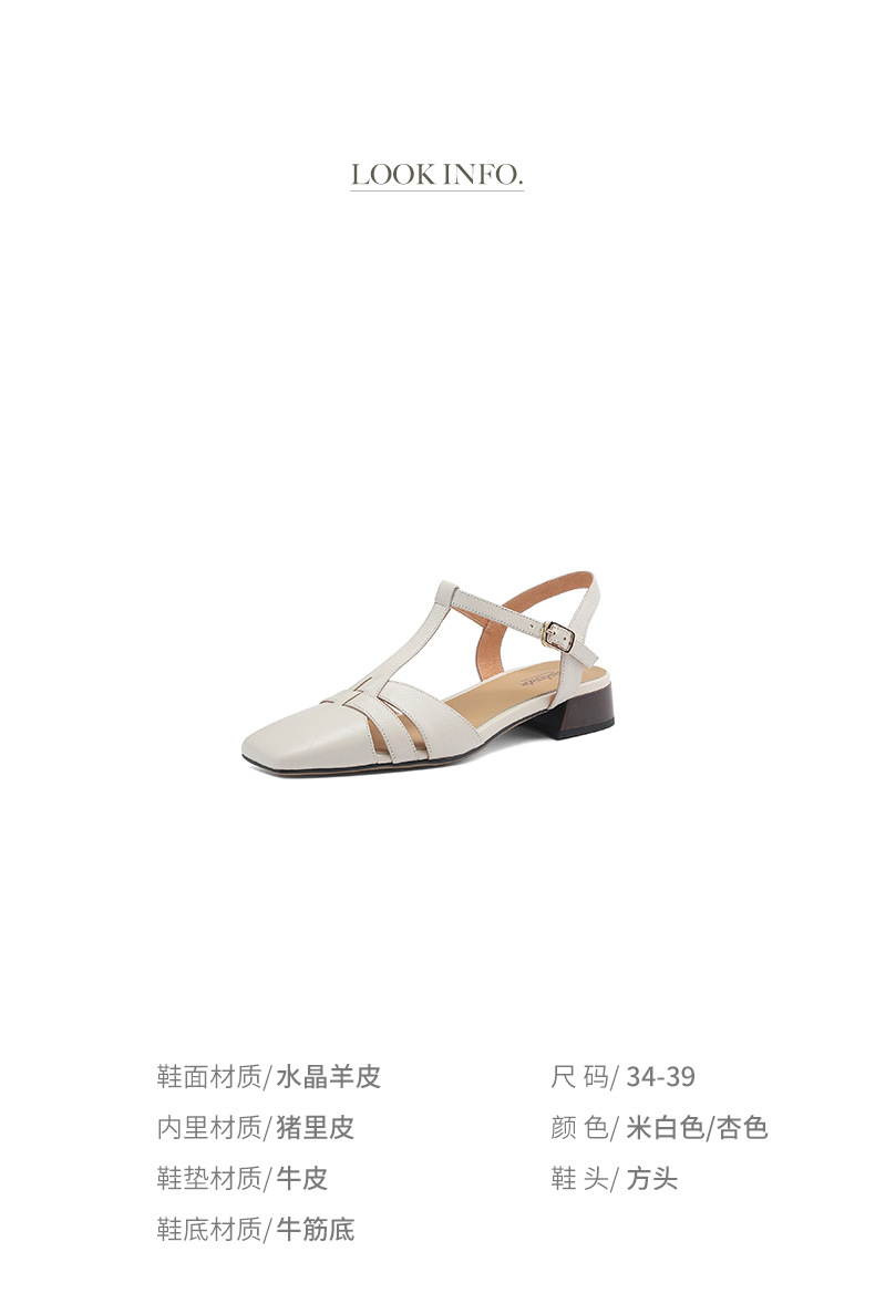 包头编织中空女鞋,方头粗跟罗马凉鞋LD-6359