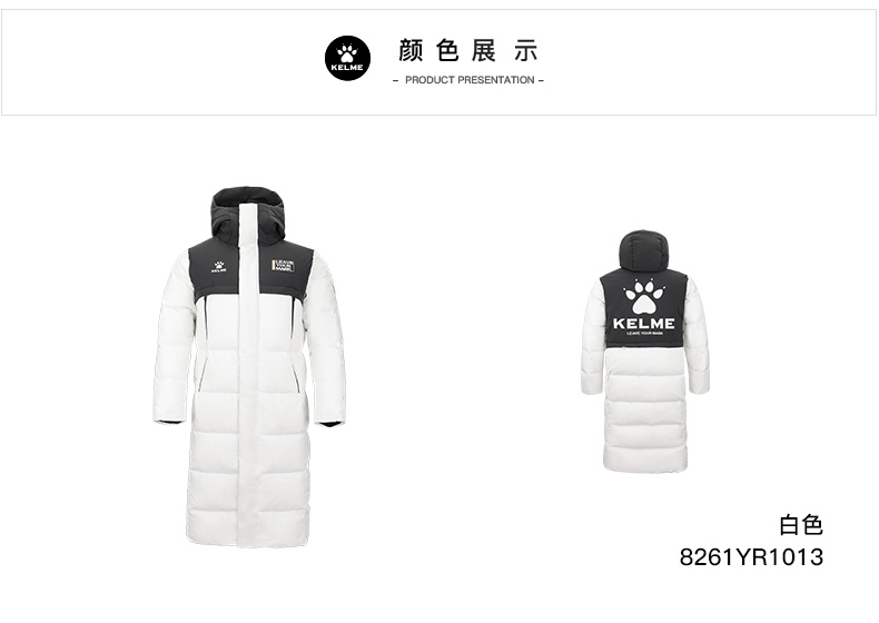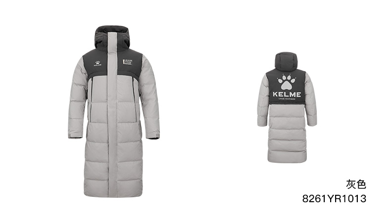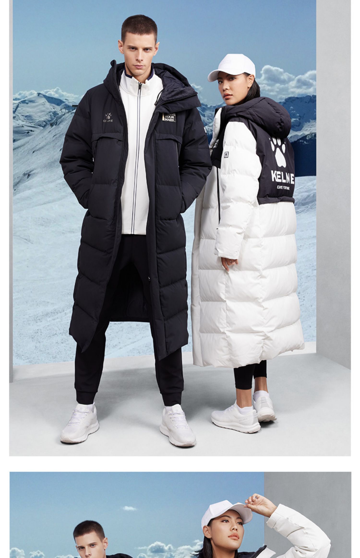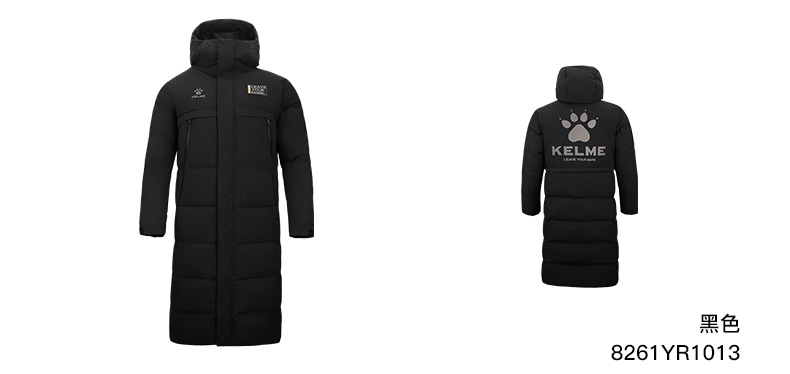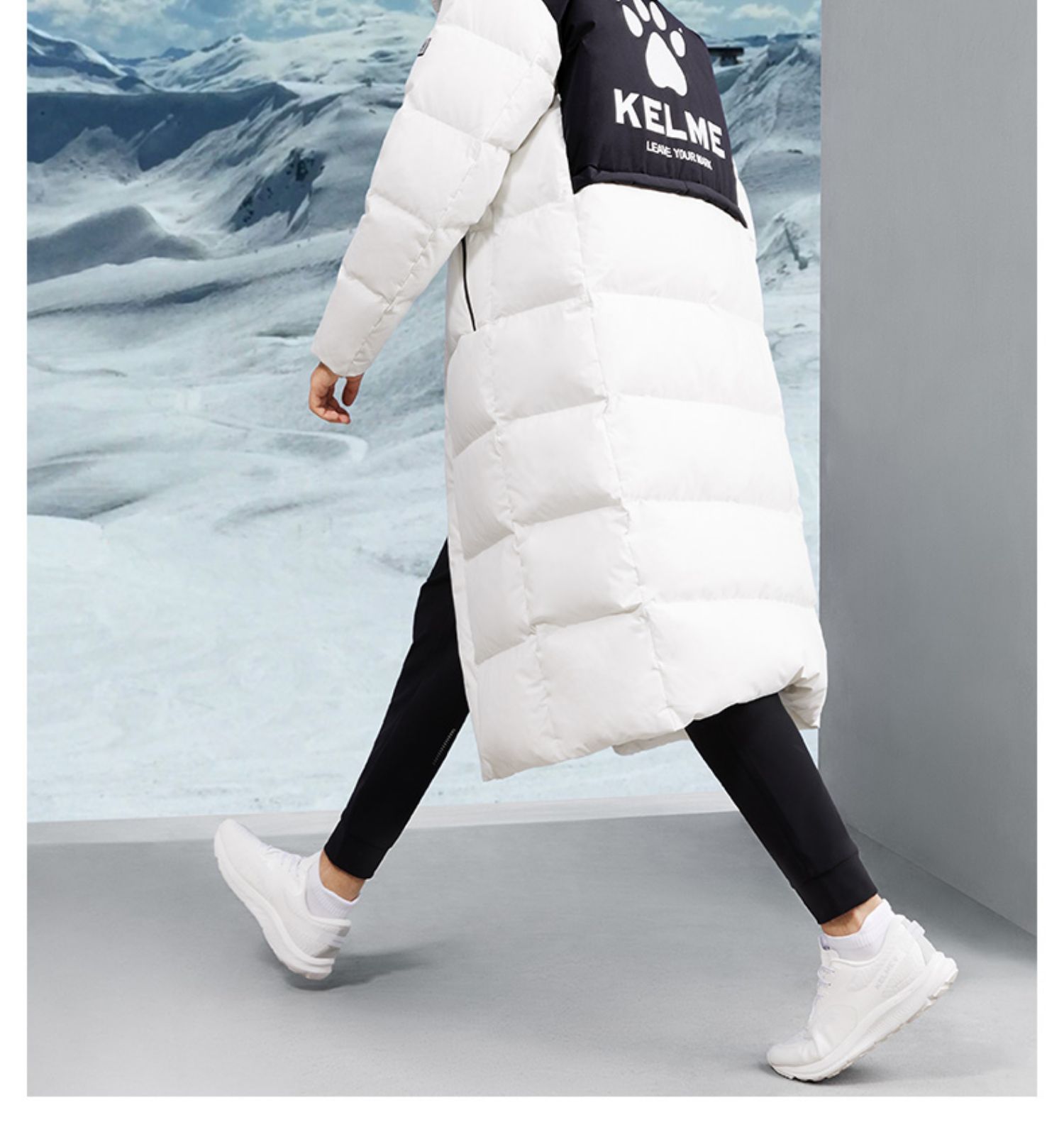 卡尔美长款羽绒服男女加厚连帽外套运动休闲保暖过膝鸭绒服8261YR1013
