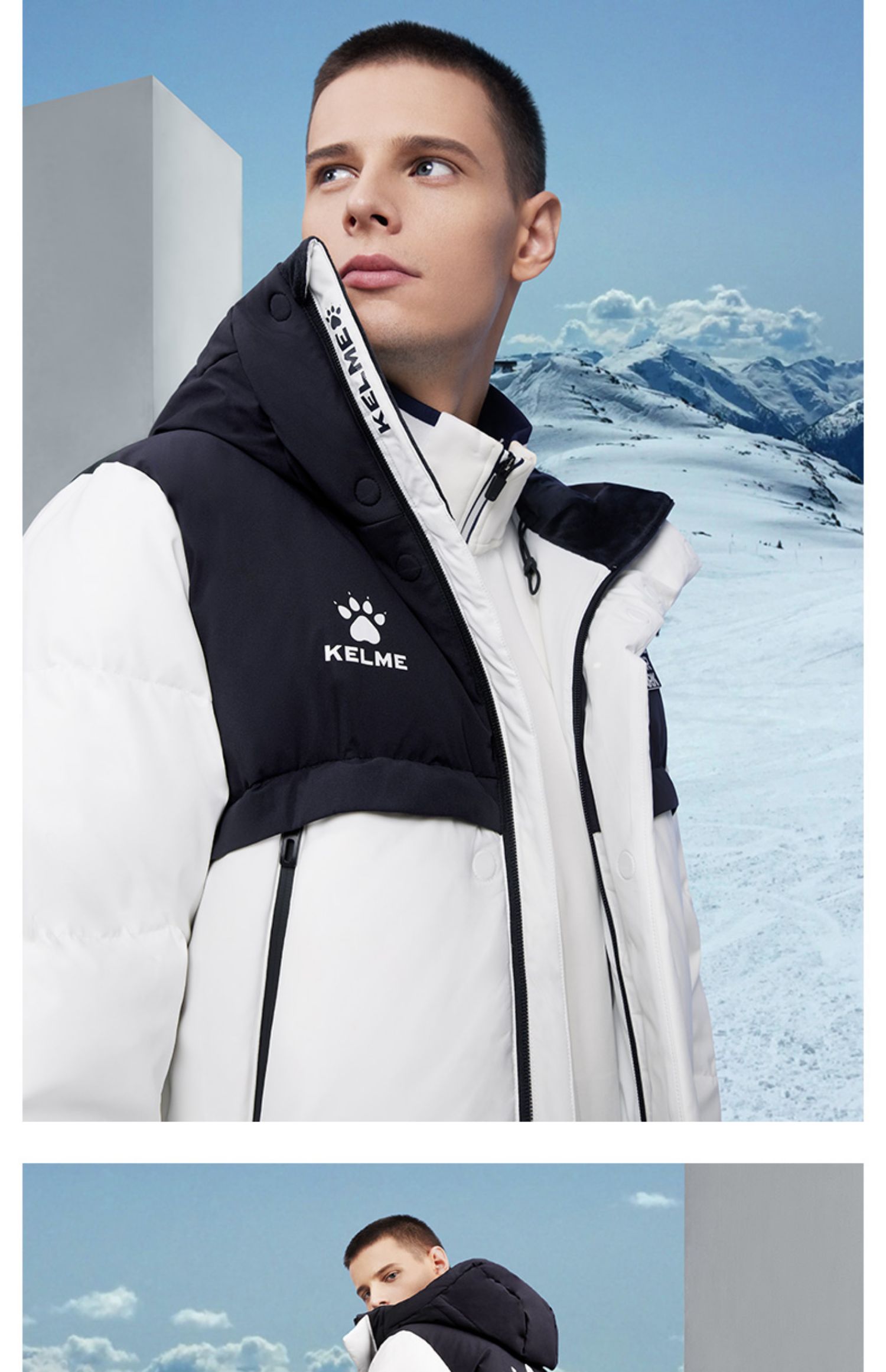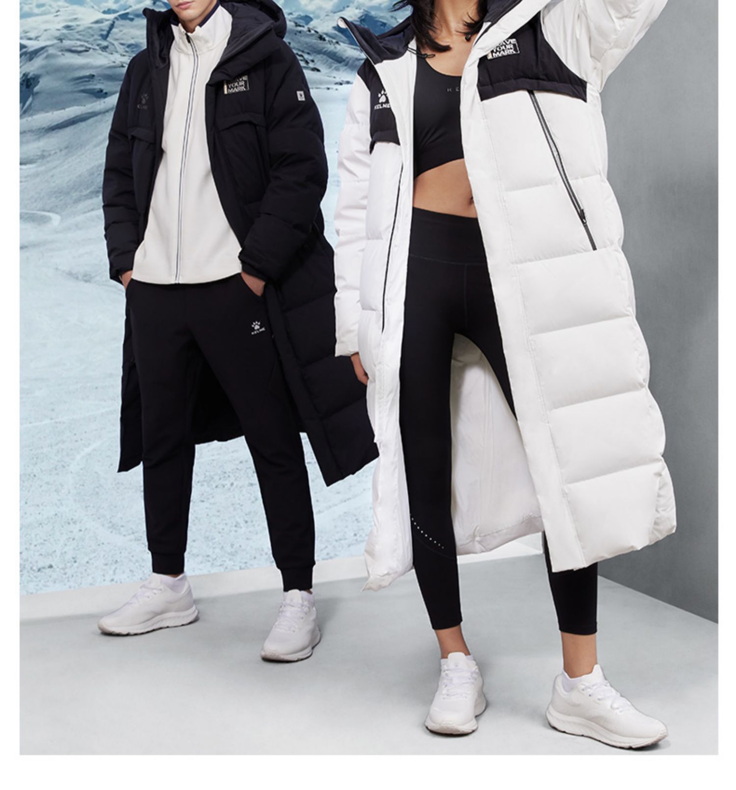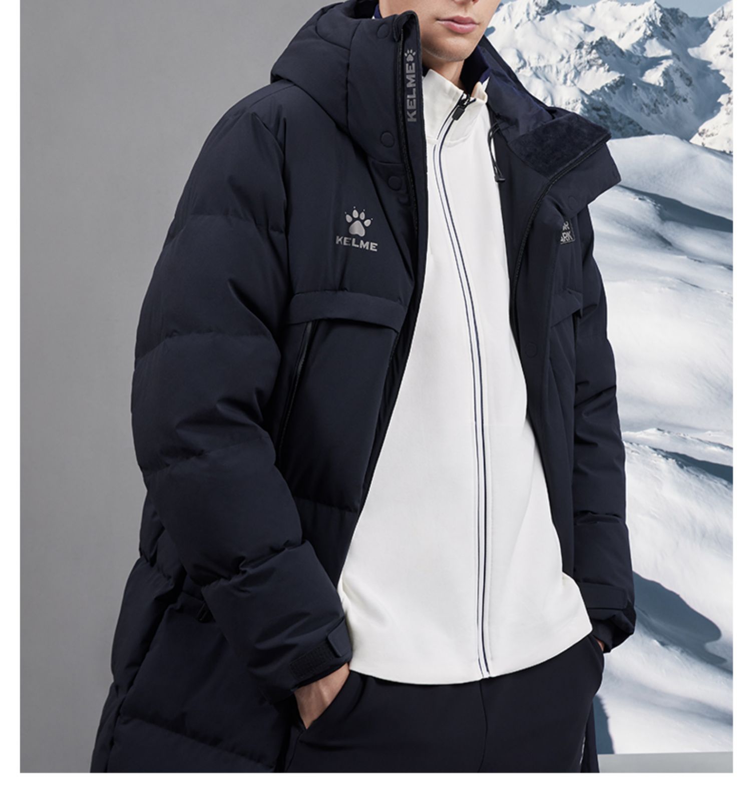 卡尔美长款羽绒服男女加厚连帽外套运动休闲保暖过膝鸭绒服8261YR1013