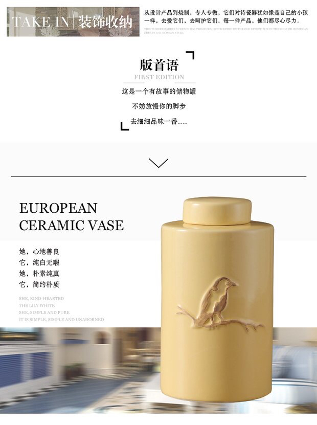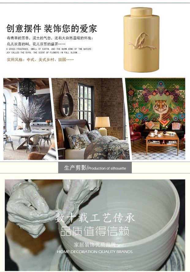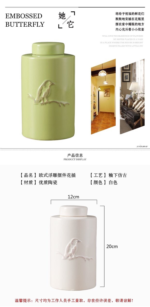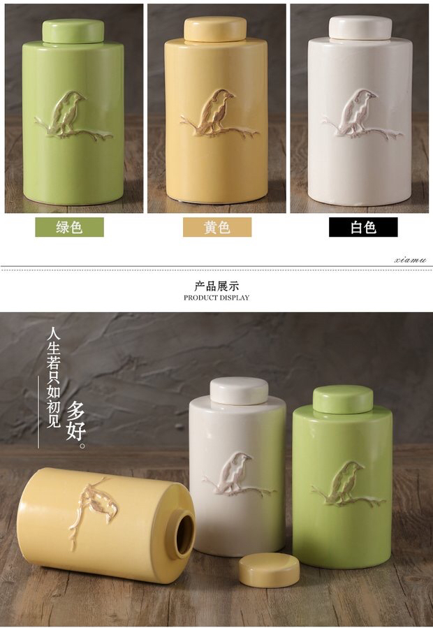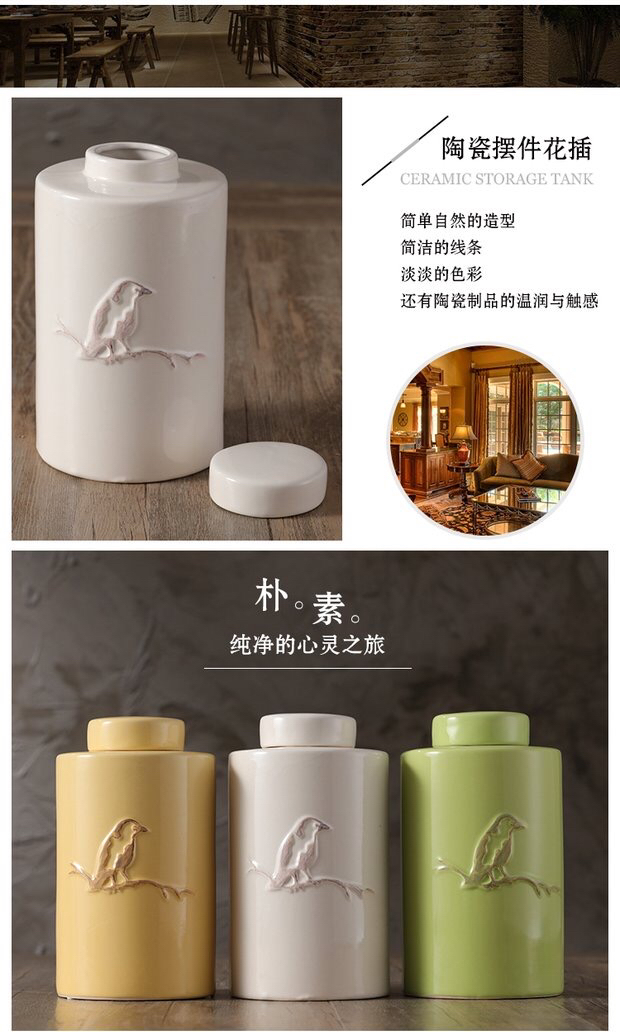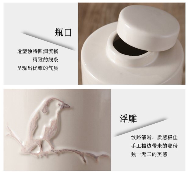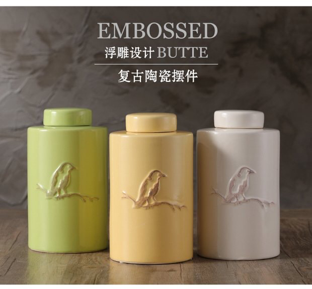 浮雕鸟厨房酒柜玄关家居陶瓷罐北欧创意花器摆件