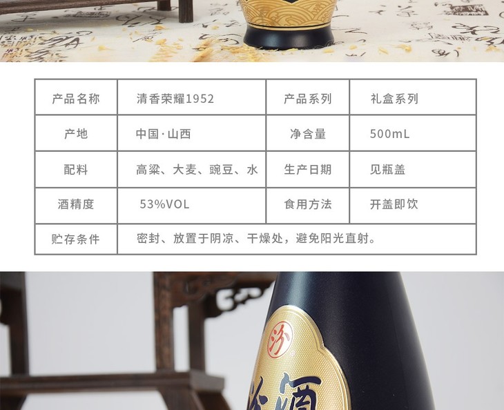 【年货节】 汾酒 清香荣耀1952 清香型 53度 500ml*6【整箱】