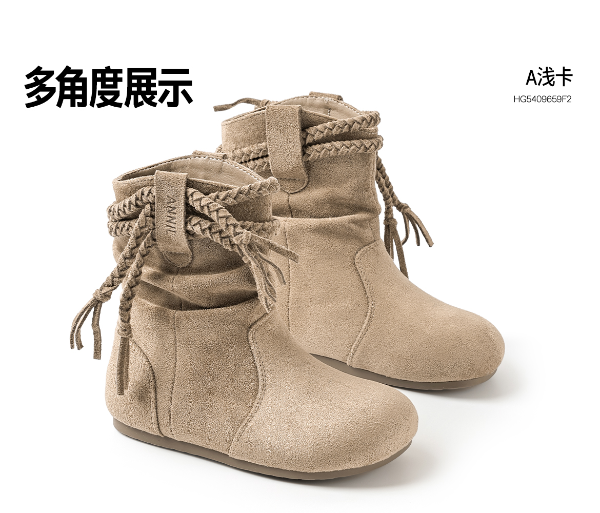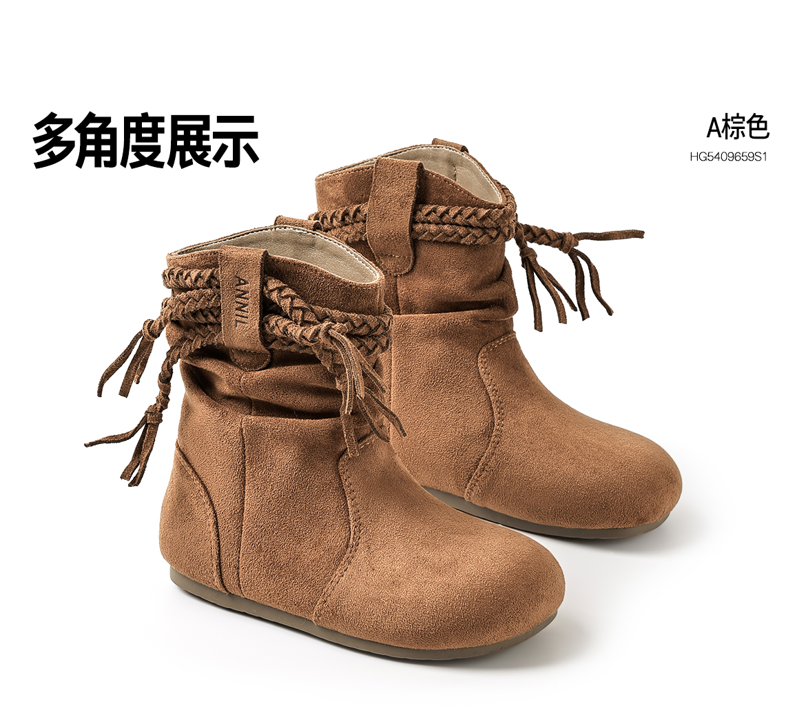 ANNIL/安奈儿童鞋女童6-12岁女童马丁靴加绒加厚雪地靴休闲英伦风中筒靴子HG5409659