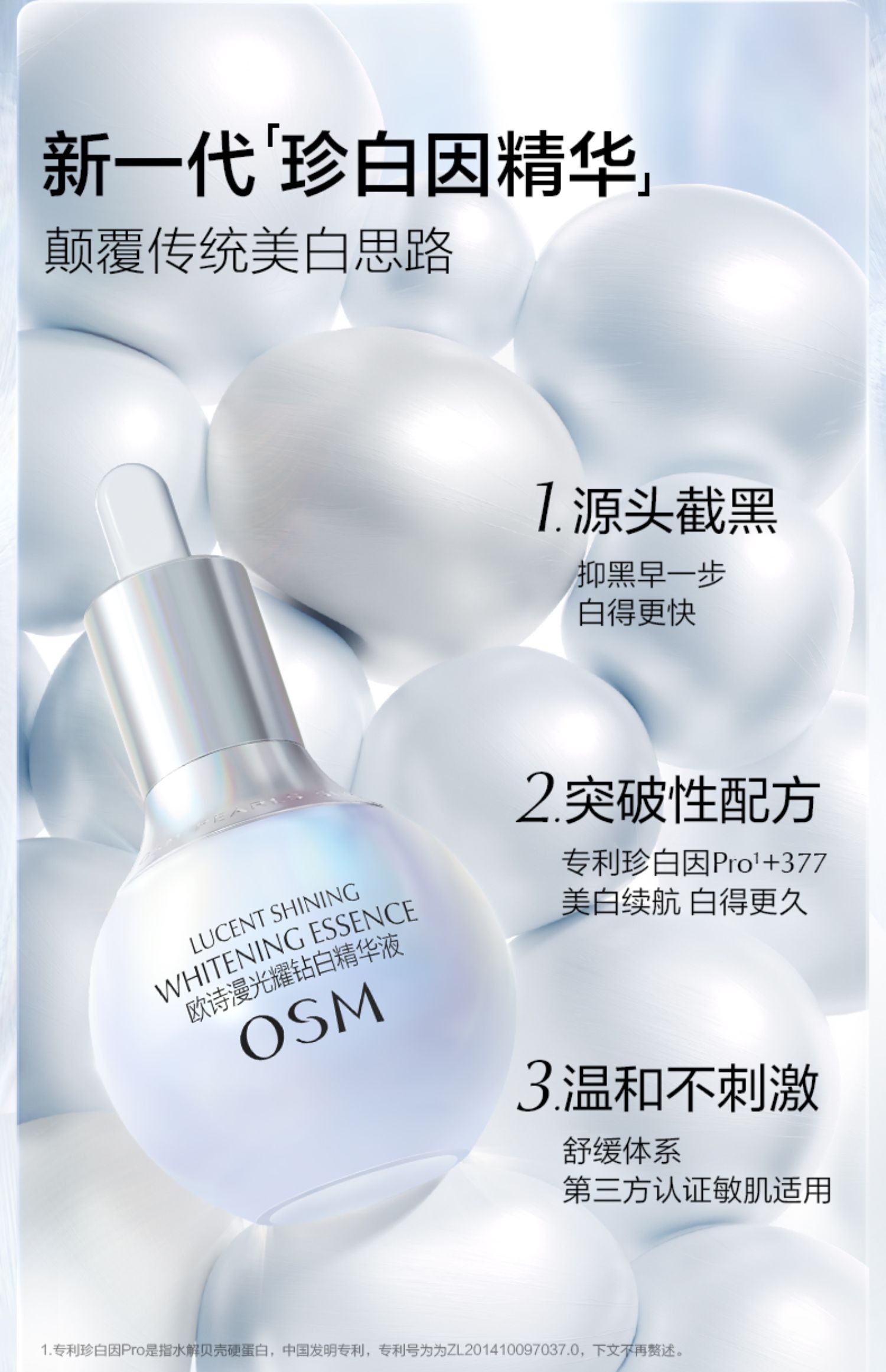 【官方直发】(到手70ml+5片面膜) 欧诗漫光耀钻白精华液30ml美白特证 淡斑提亮