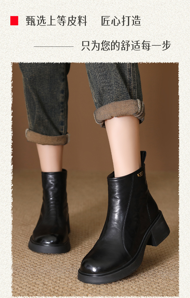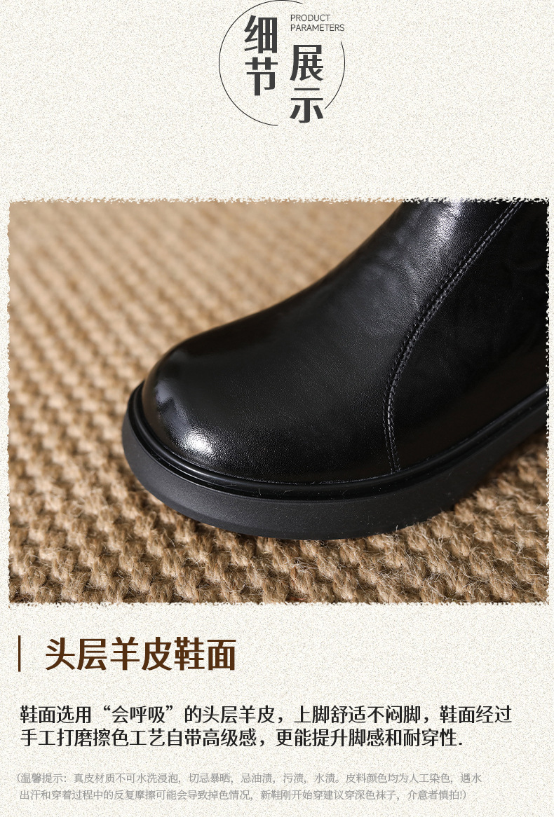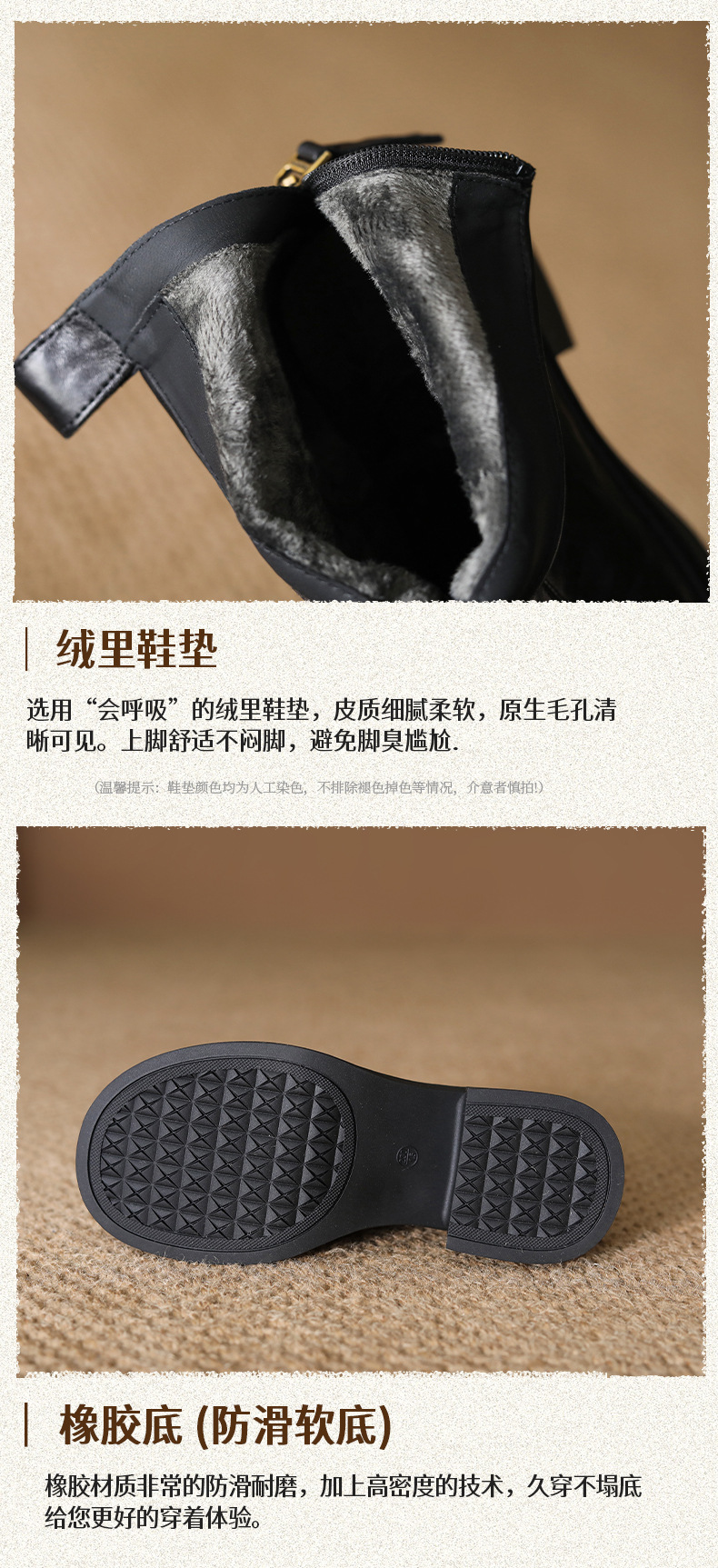 FR 85155真皮短靴复古粗跟羊皮棉靴保暖马丁靴 商品图4