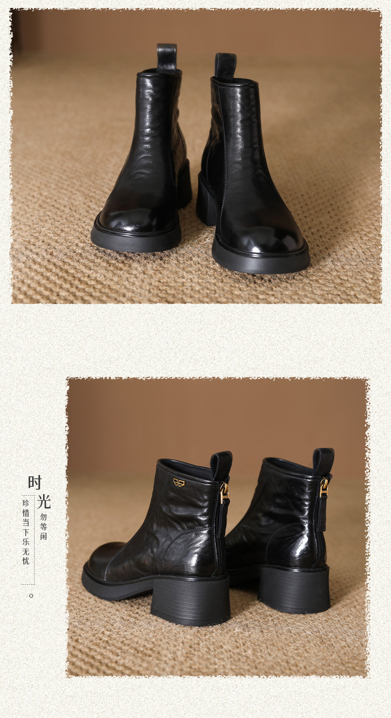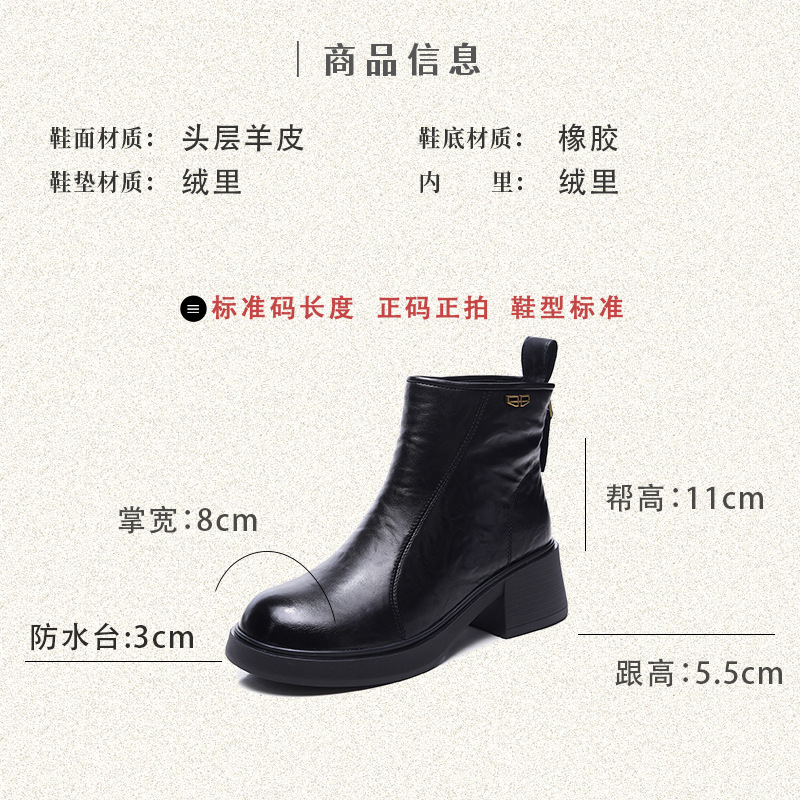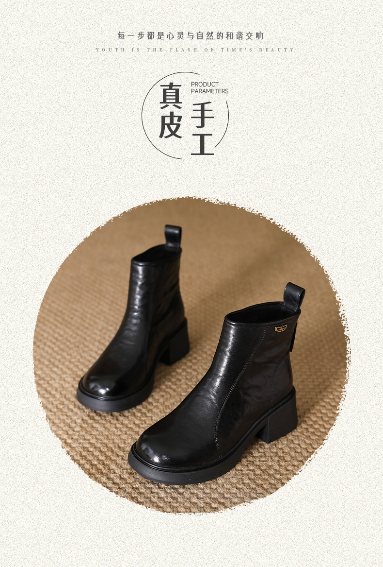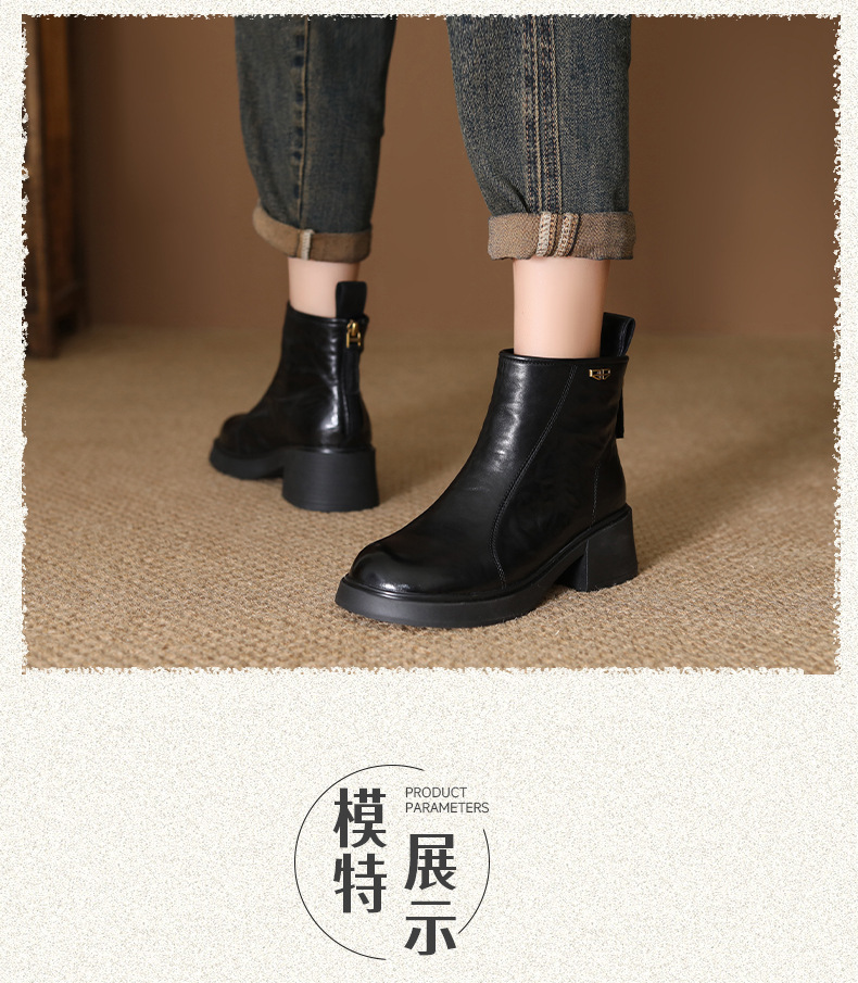 FR 85155真皮短靴复古粗跟羊皮棉靴保暖马丁靴 商品图4