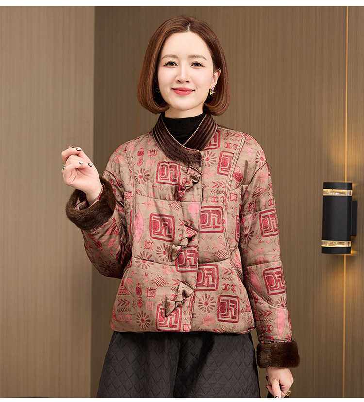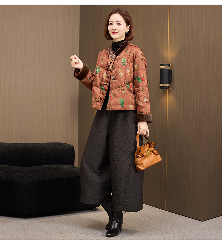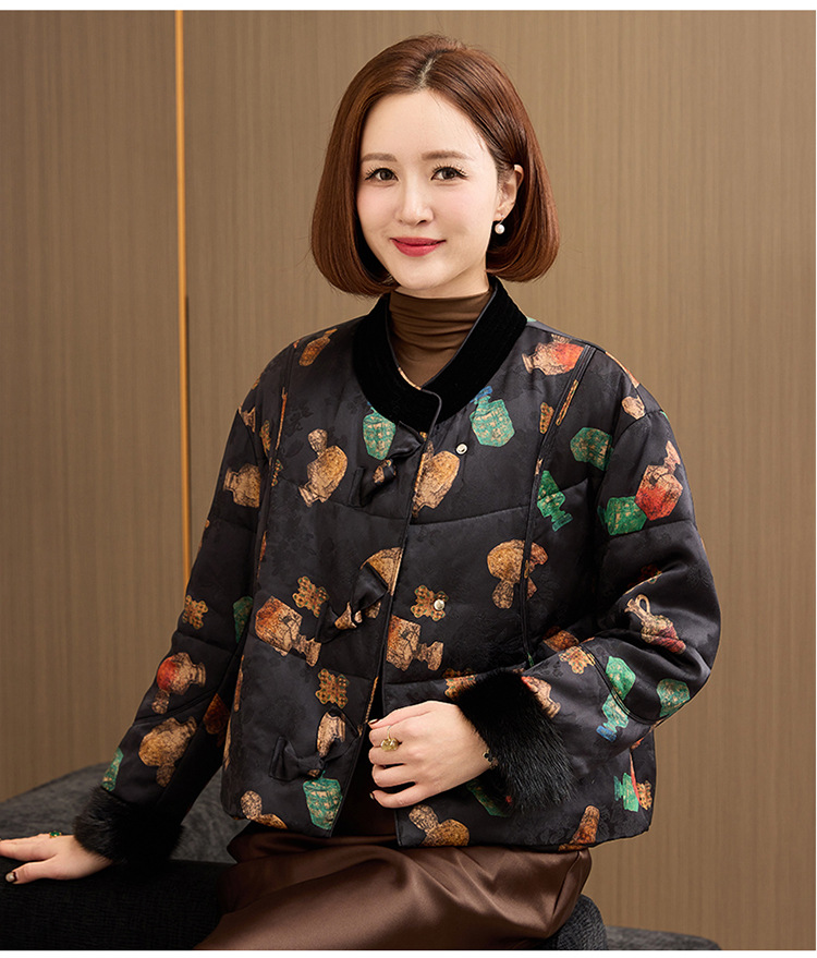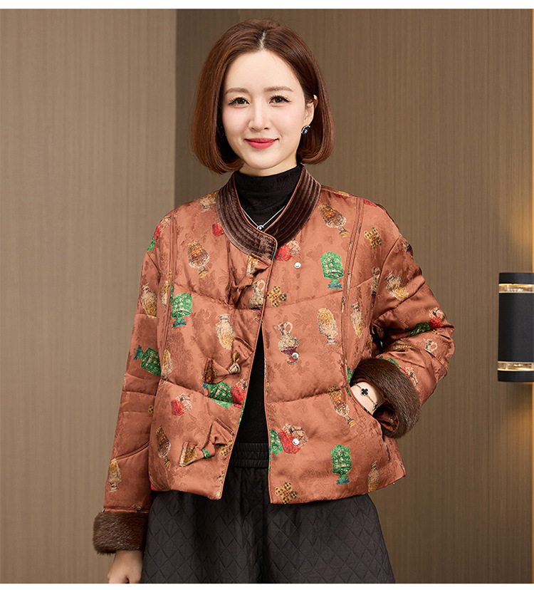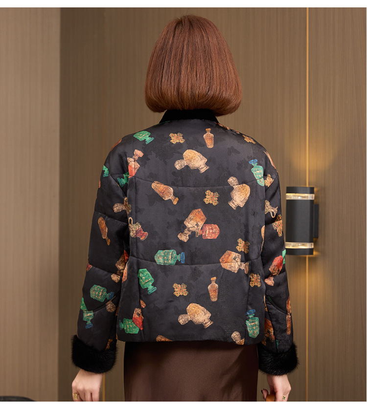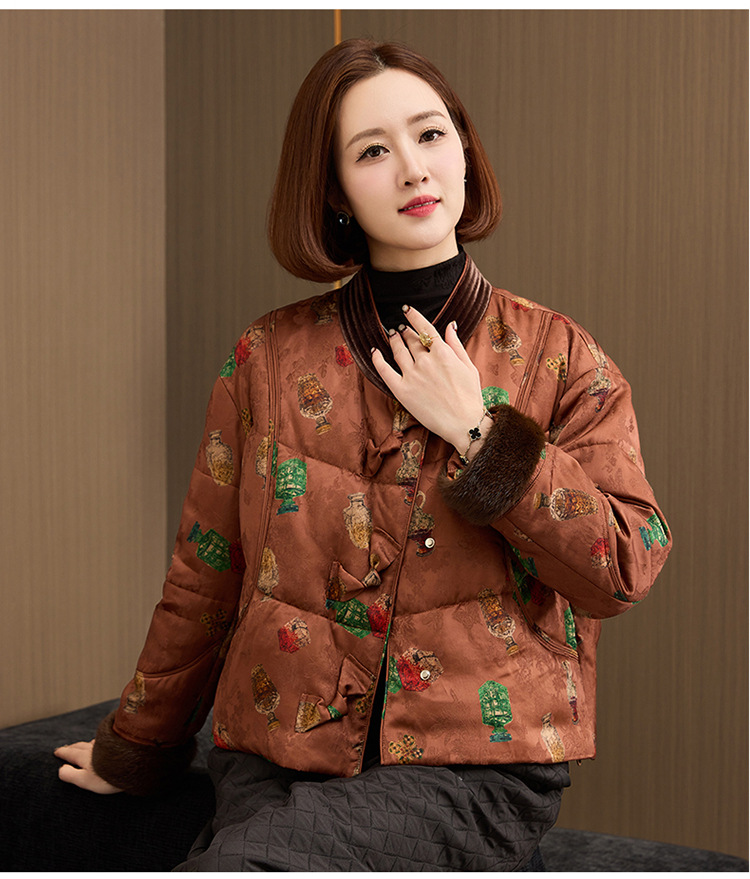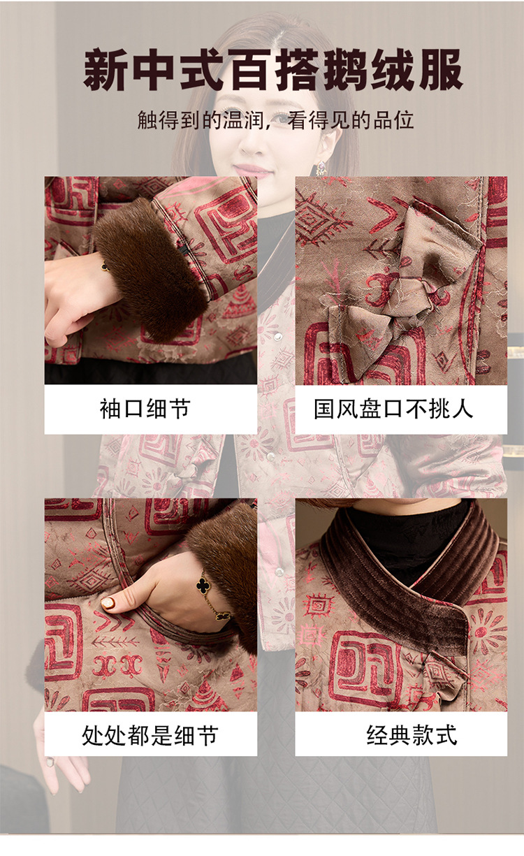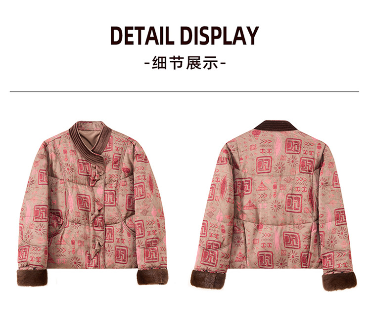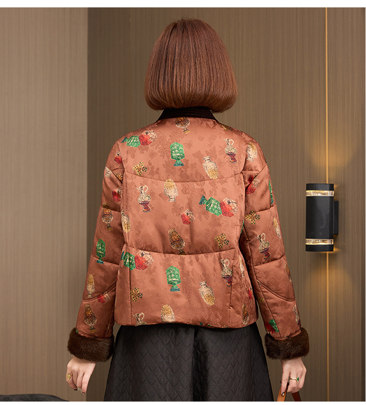 OSL 88K06盘扣国风短款羽绒服水貂毛袖口90白鹅绒服宽松大码