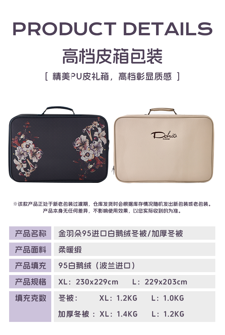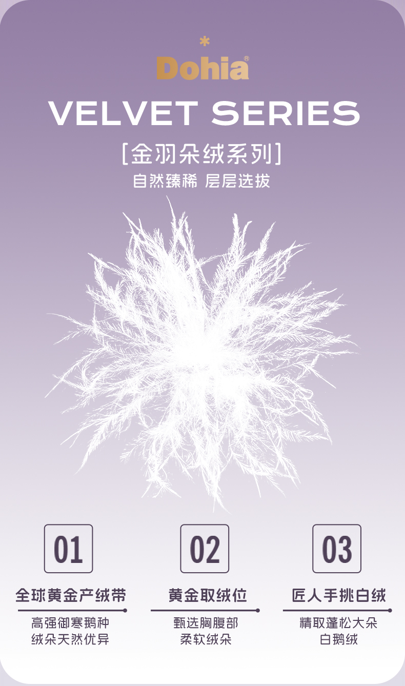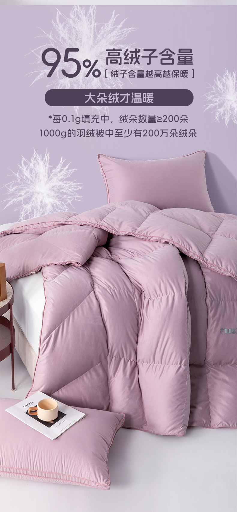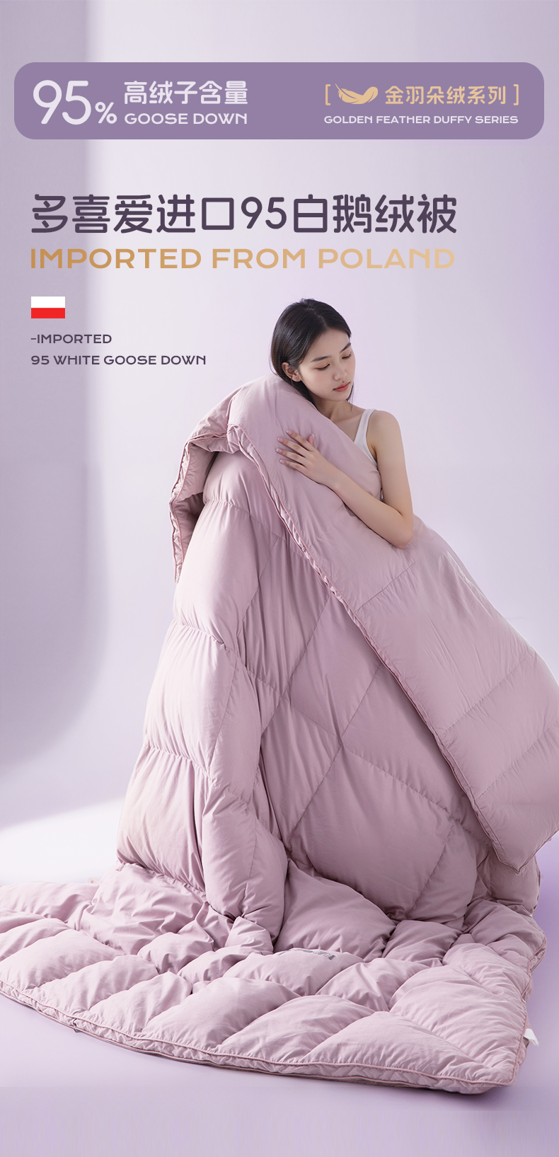 多喜爱 金羽朵95进口白鹅绒冬被-羽白/云紫/雪金【95%绒子含量】【分区保暖工艺】【皮箱包装】【1000+清洁度】【波兰进口】【柔暖缎面料】【A类品质】匠人手挑白绒 黄金取绒位
