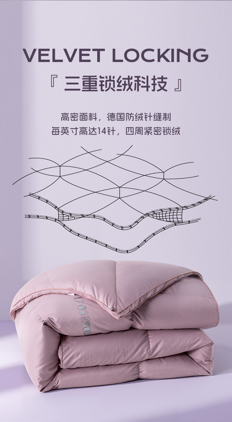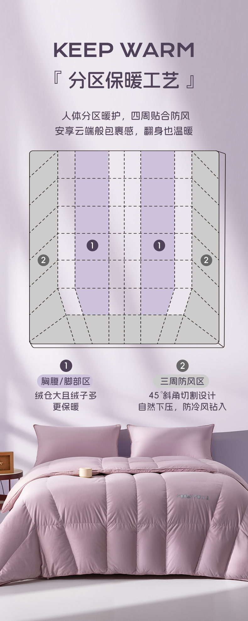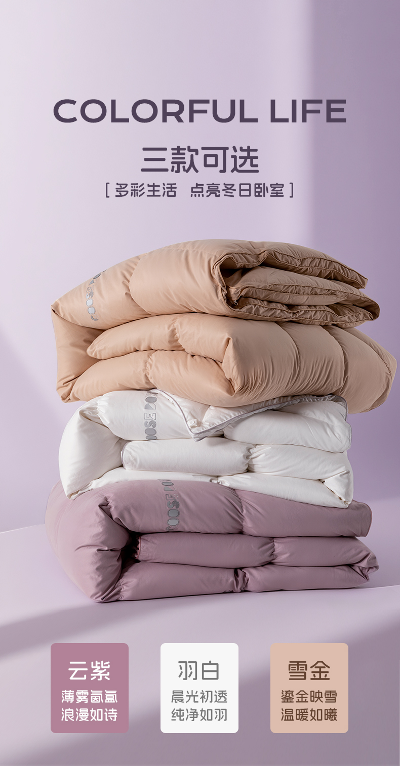 多喜爱 金羽朵95进口白鹅绒冬被-羽白/云紫/雪金【95%绒子含量】【分区保暖工艺】【皮箱包装】【1000+清洁度】【波兰进口】【柔暖缎面料】【A类品质】匠人手挑白绒 黄金取绒位