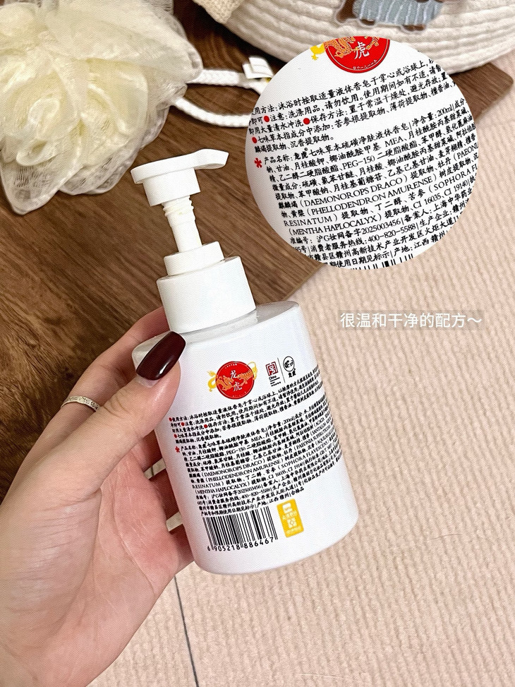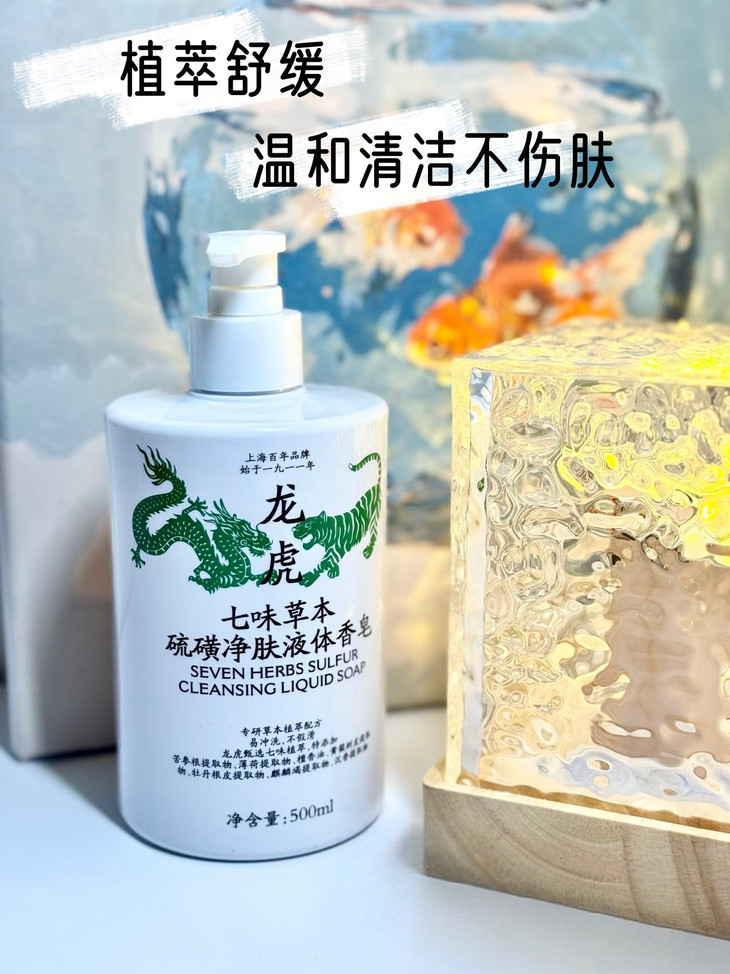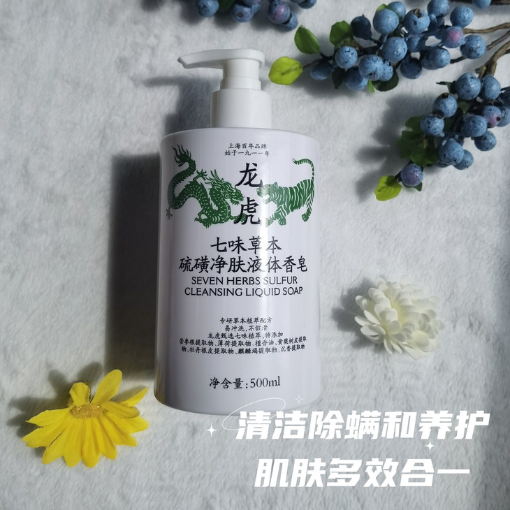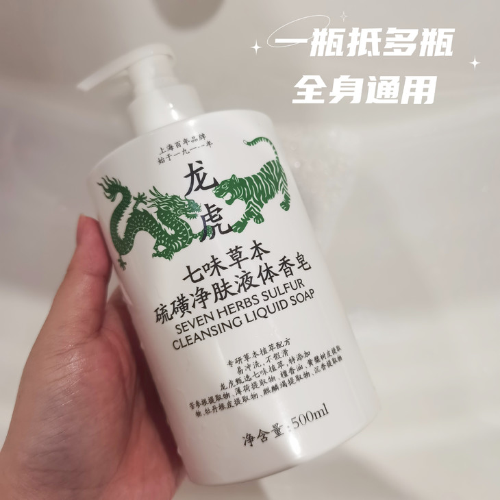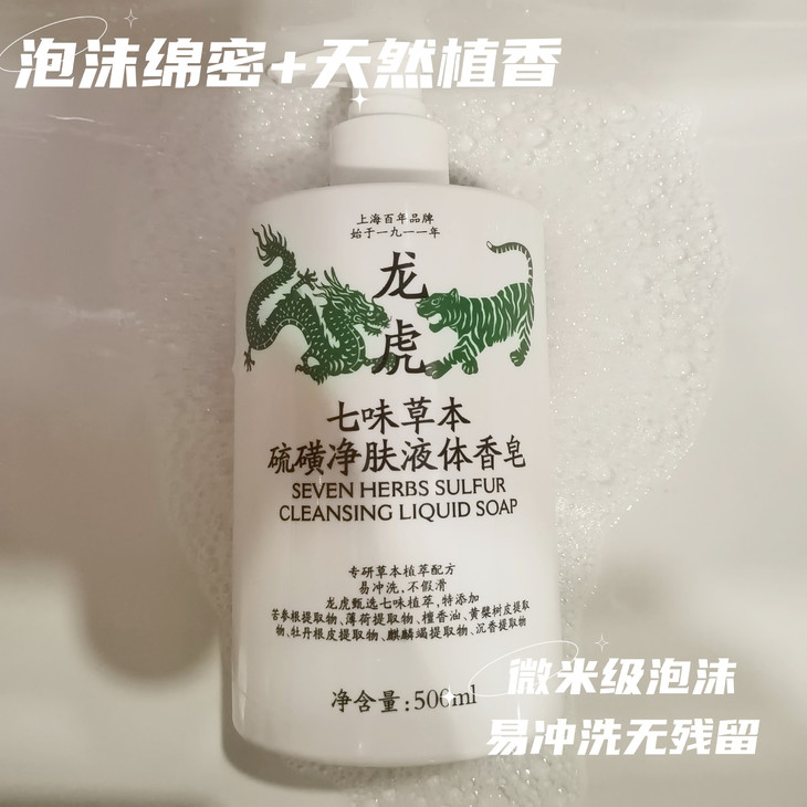 龙虎七味草本硫磺净肤液体皂 ,不挑季节,不挑肤质,温和净肤。✅草本温和:七味草本植萃配方,温和调理换季肌肤状态