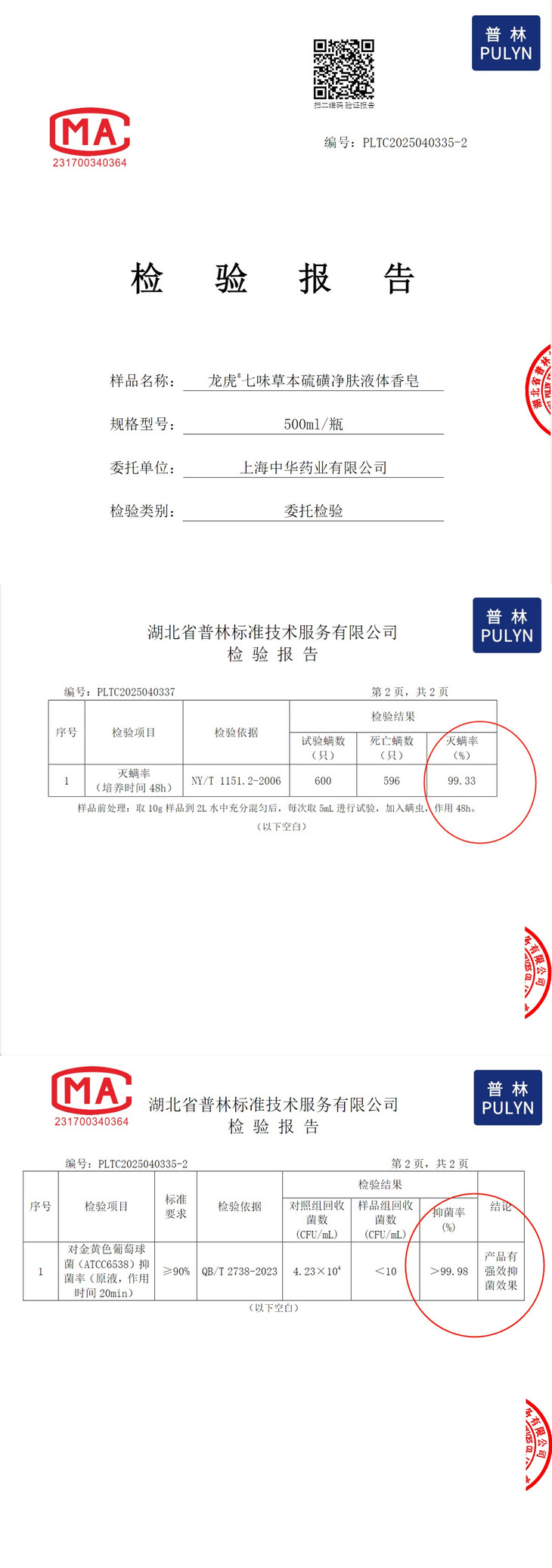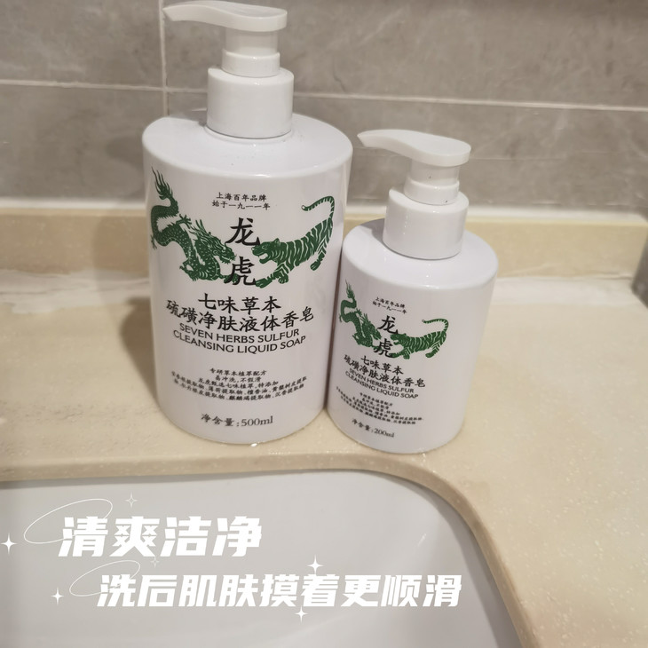🏆 百年老字号出品,品质信得过 提到龙虎,大家肯定不陌生,中华老字号,专注制y百年历史。这次他们把严谨用到了沐浴露上,推出了这款【七味草本硫磺净肤液体香皂】