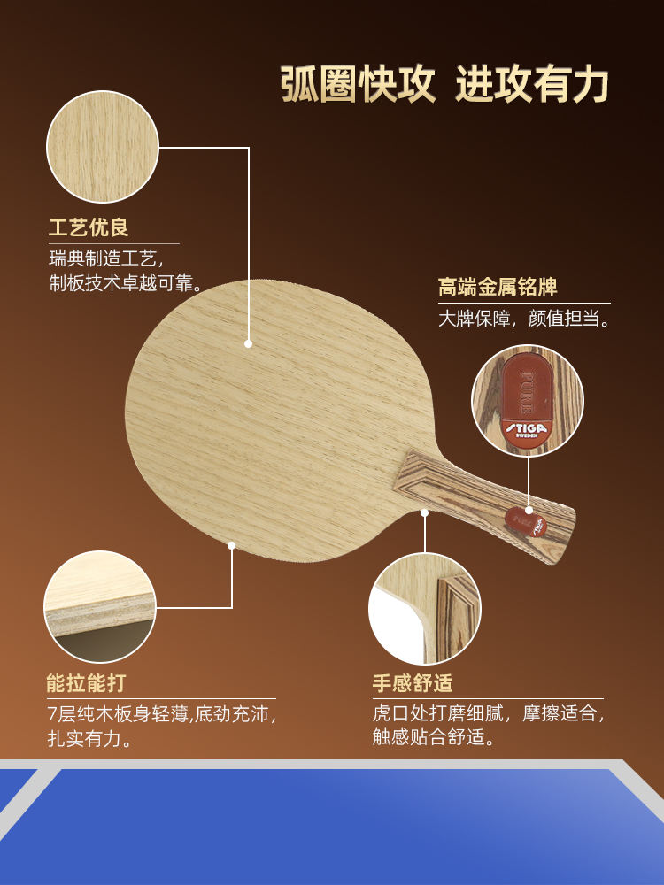 控制与力量的平衡:斯帝卡自然之力底板专为重视控制的进攻型球员设计,7层纯木设计为其创造了带有最大精准性的甜区,能够在击球时提供出色的控制和准确性。