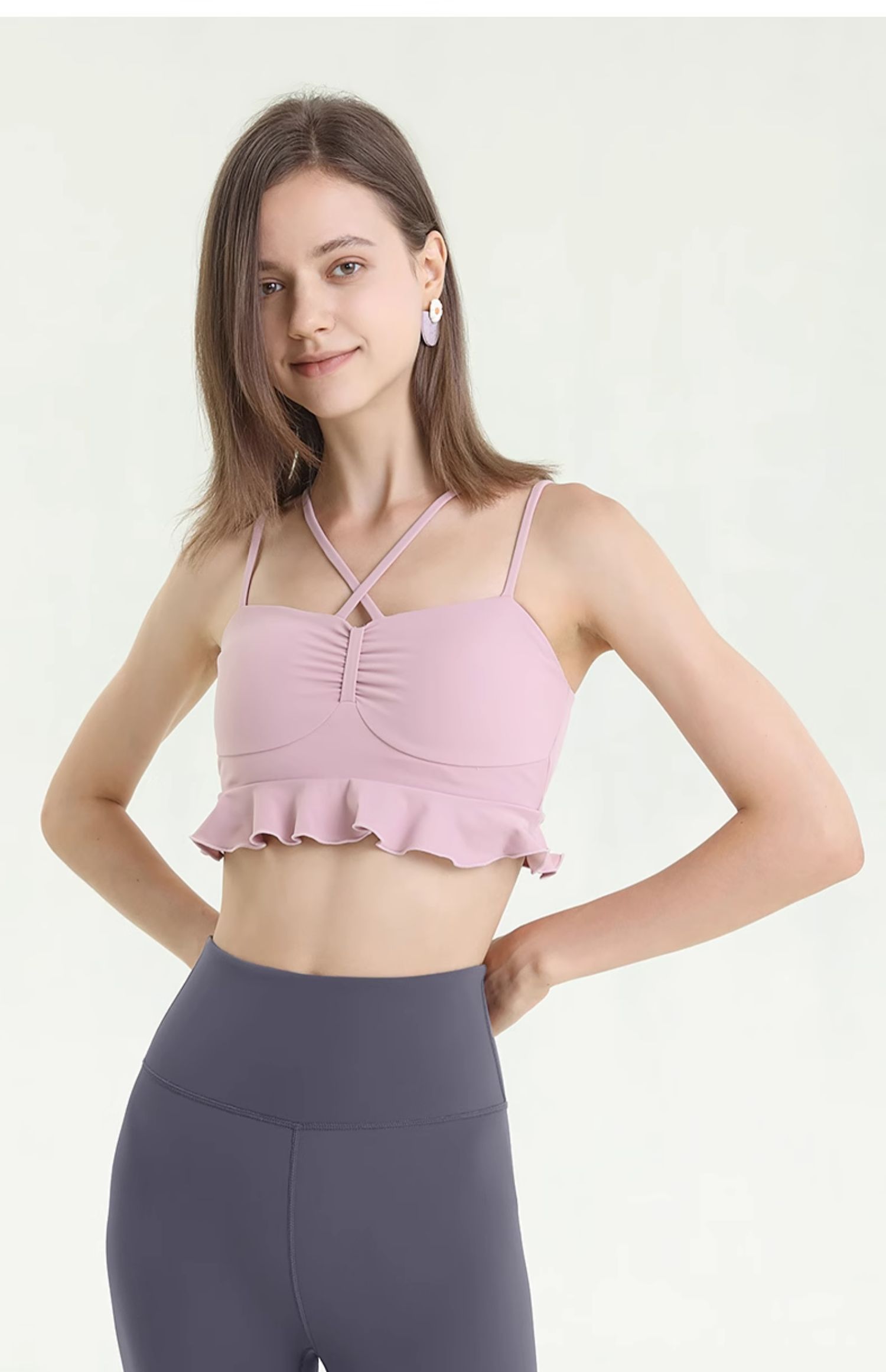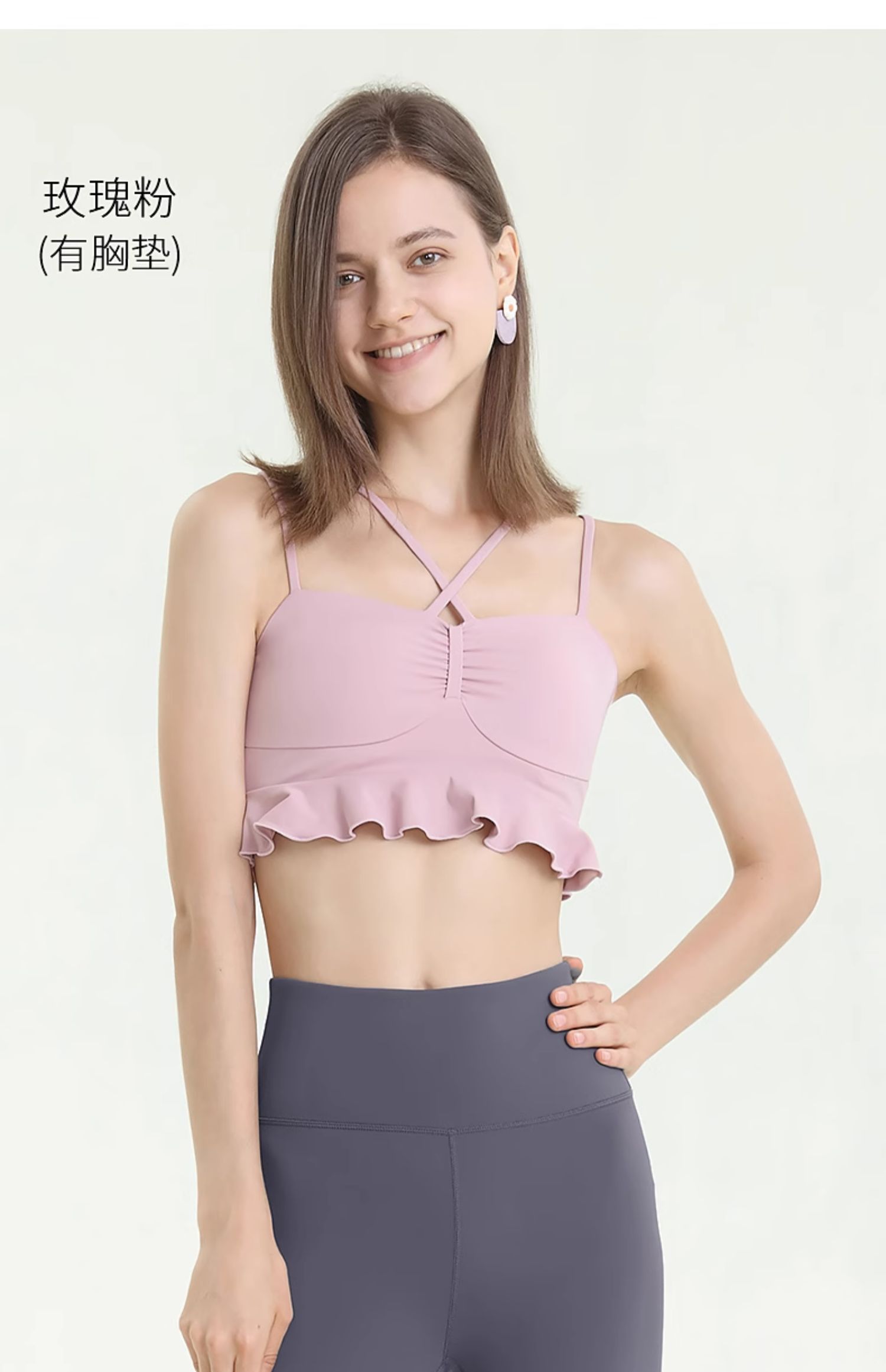 梵美人 F5365 挂脖瑜伽背心 可拆卸胸垫 薄云螺纹