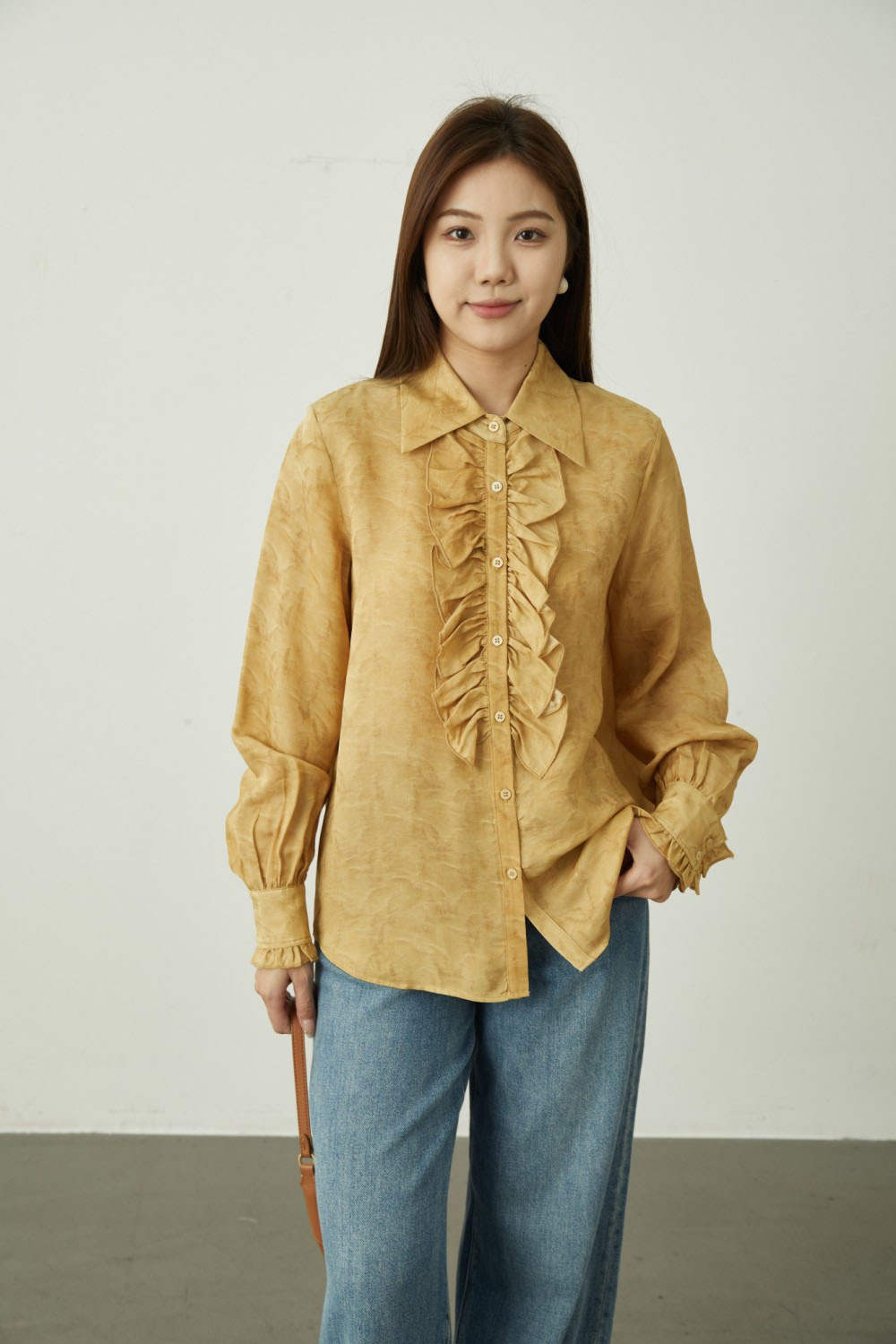 「K」洛诗琳04032法式优雅衬衫2025夏季新款设计感木耳边拼接衬衫5009
