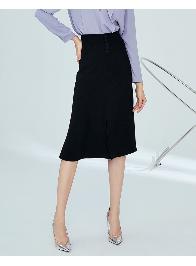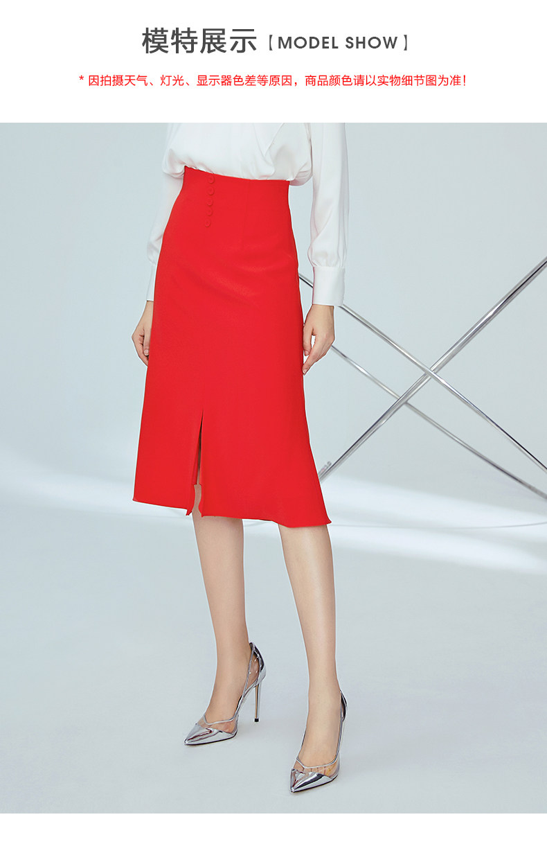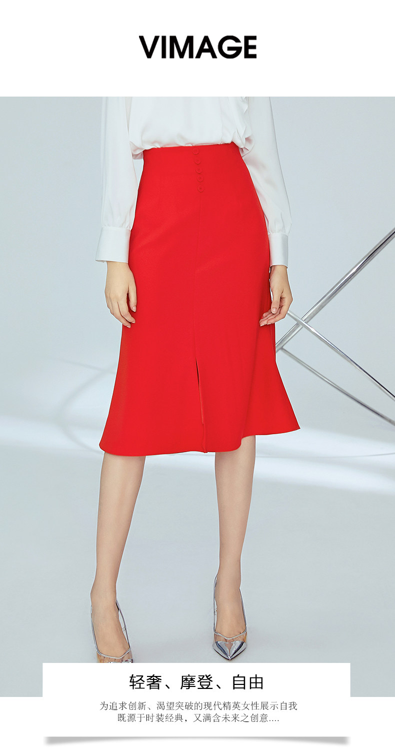 VIMAGE纬漫纪女装秋季高腰开叉名媛气质优雅一步裙半身裙V1206809