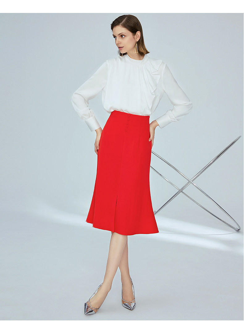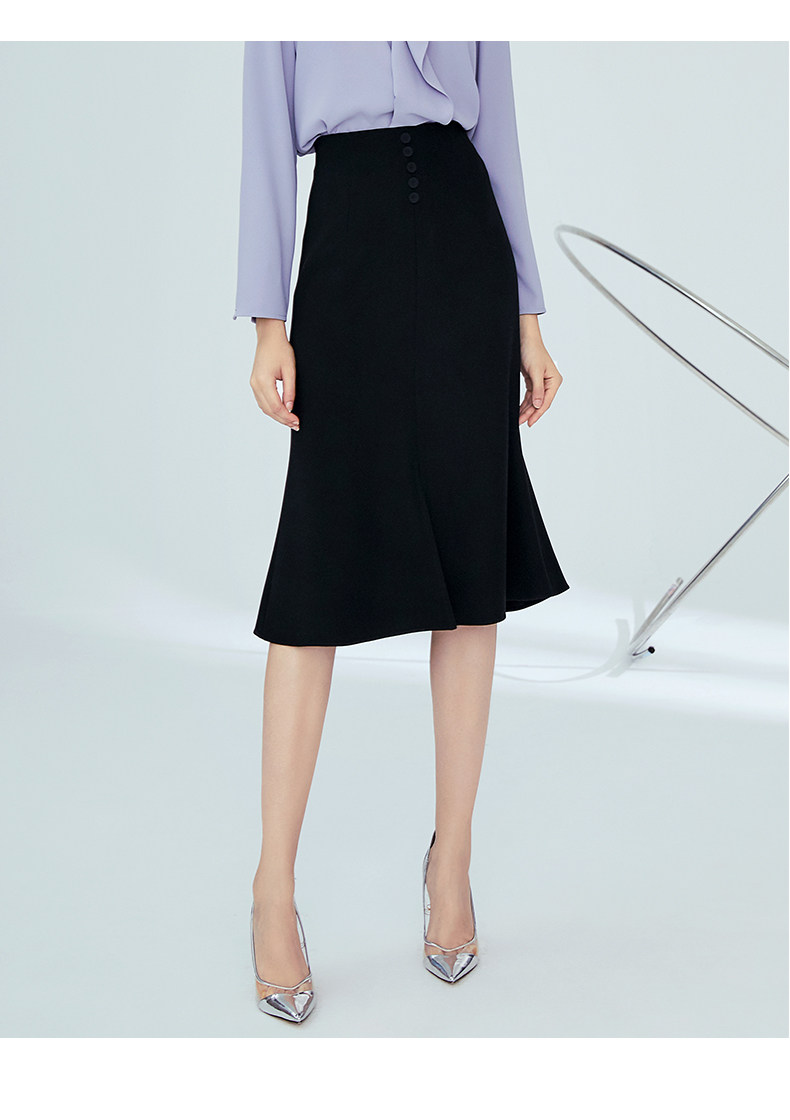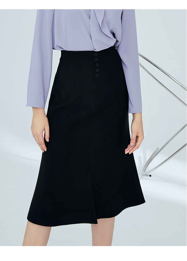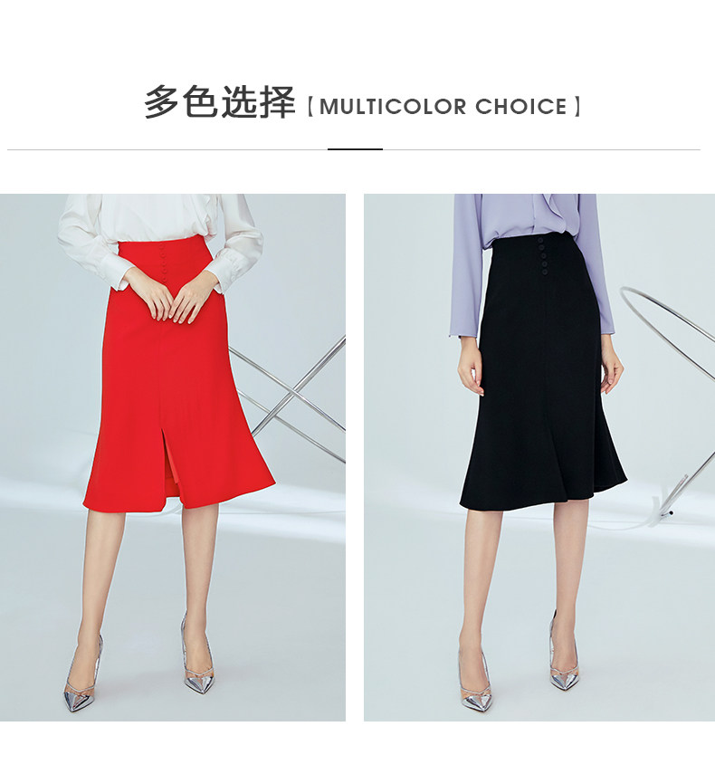 VIMAGE纬漫纪女装秋季高腰开叉名媛气质优雅一步裙半身裙V1206809