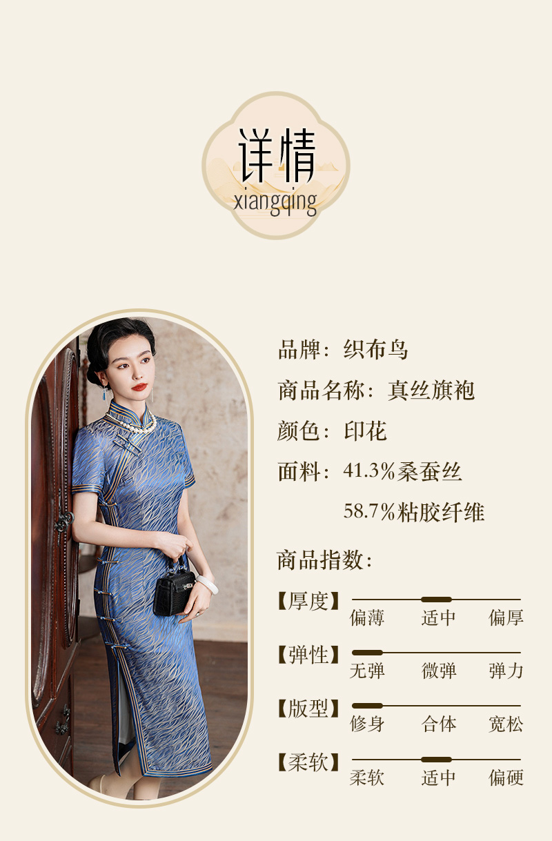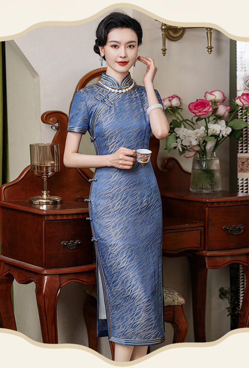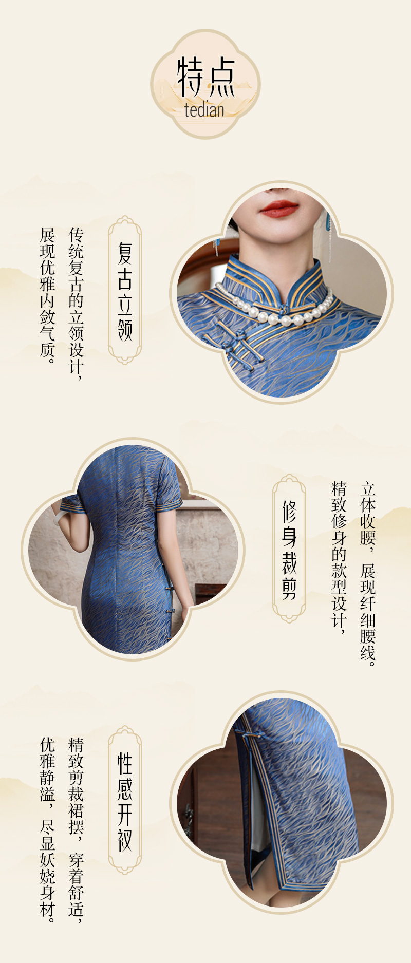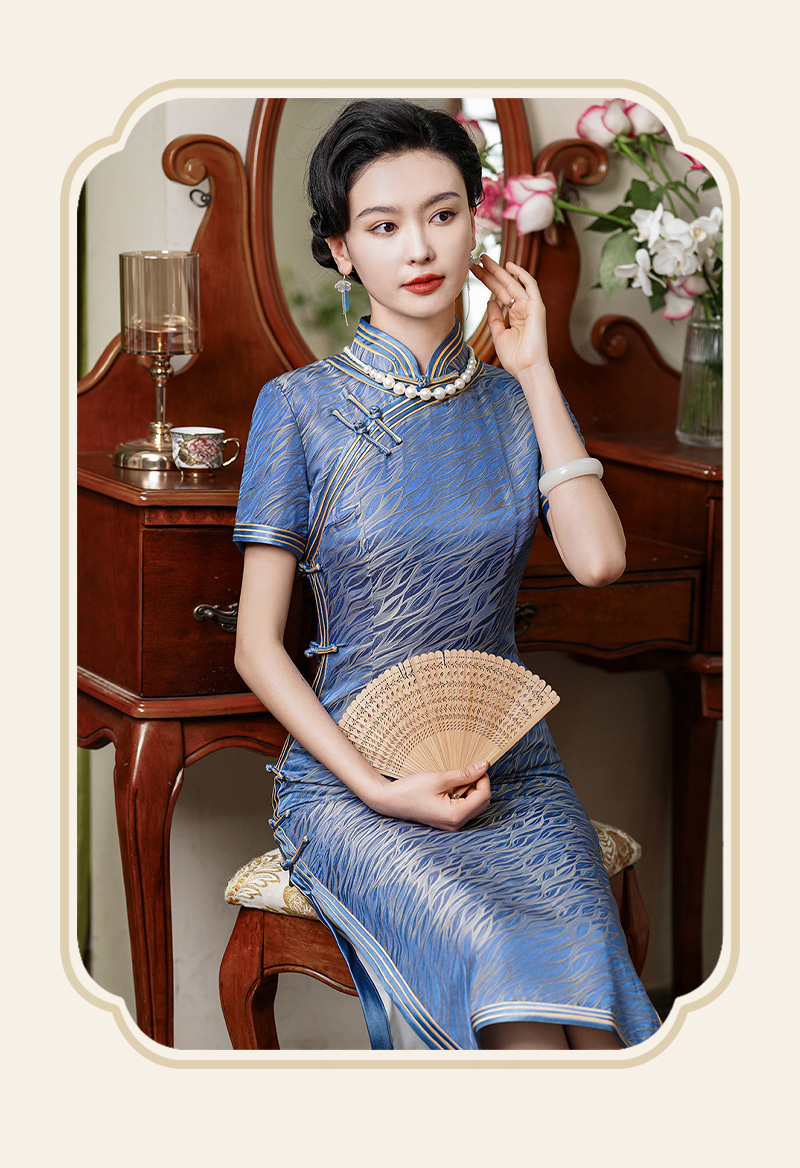 【预售5天】2025新款蓝色改良真丝旗袍ZBNW23058