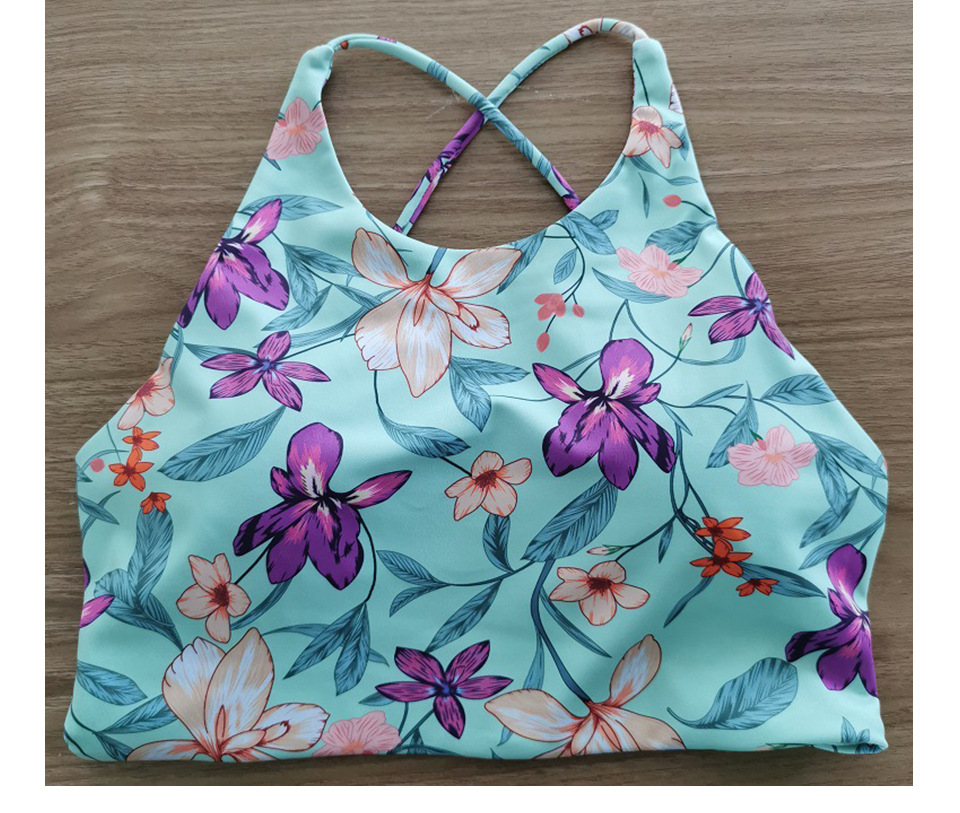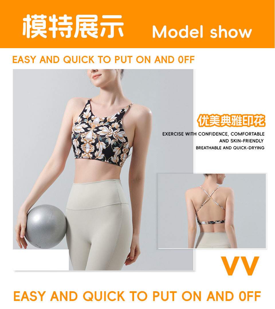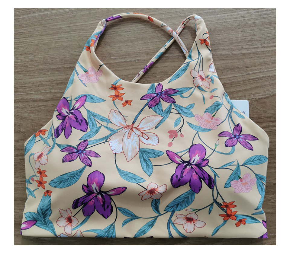 【126元任选2件】跃牌【漫西】系列 花色运动文胸内衣女聚拢性感美背心交叉吊带健身裤Y158