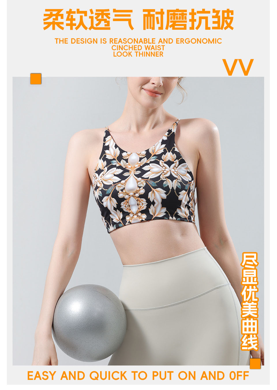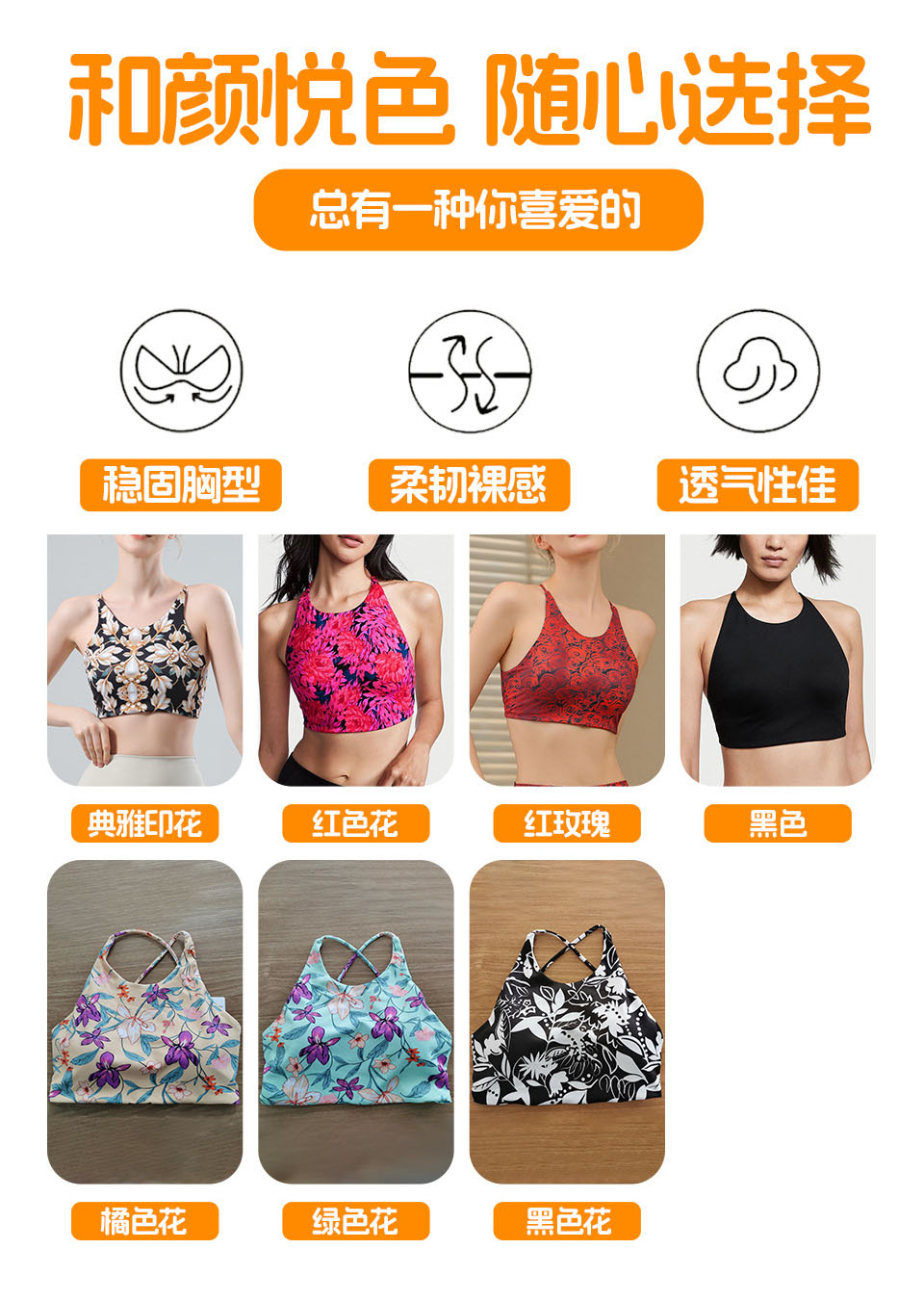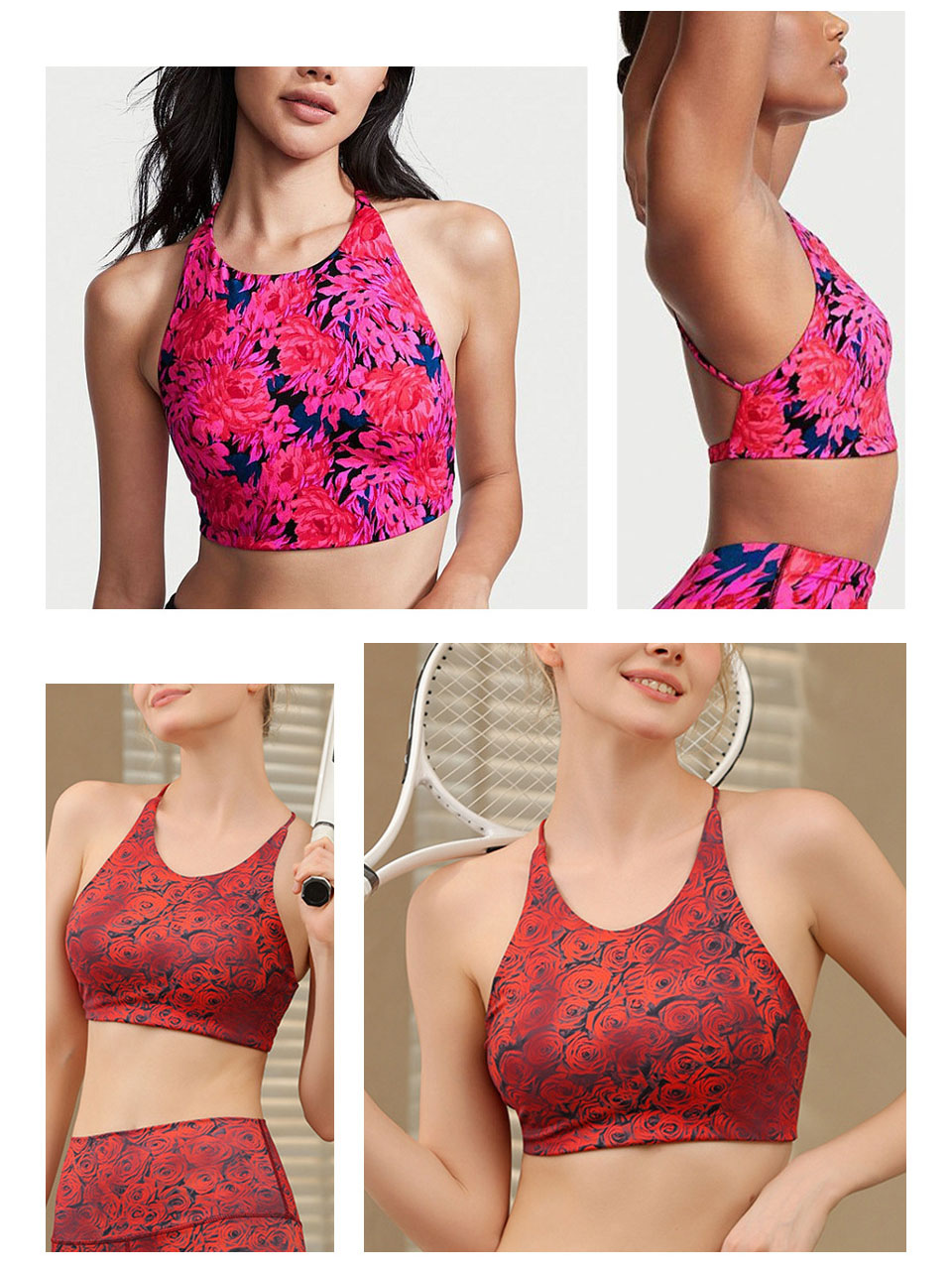 【126元任选2件】跃牌【漫西】系列 花色运动文胸内衣女聚拢性感美背心交叉吊带健身裤Y158