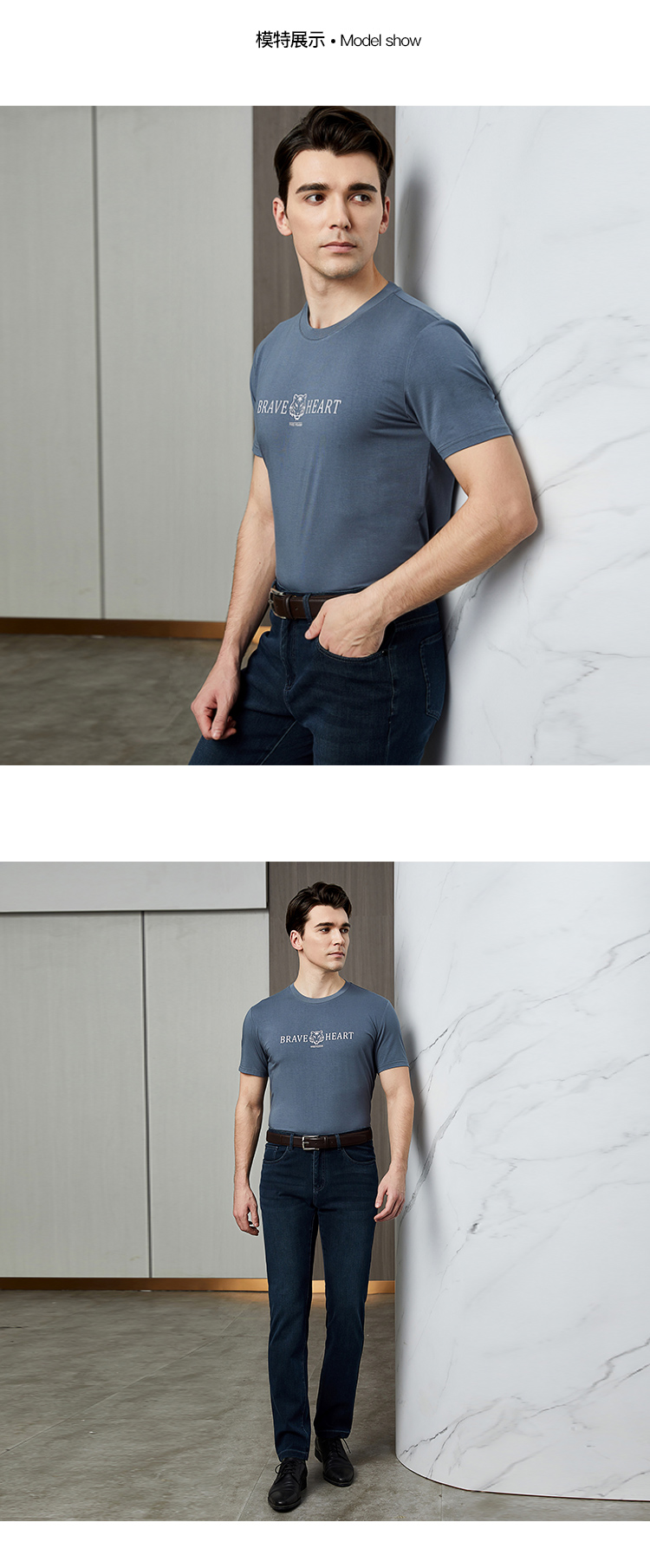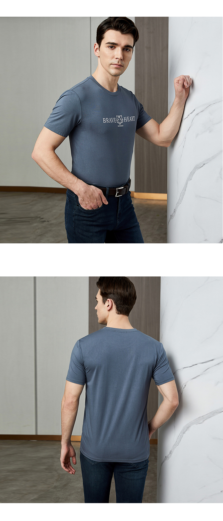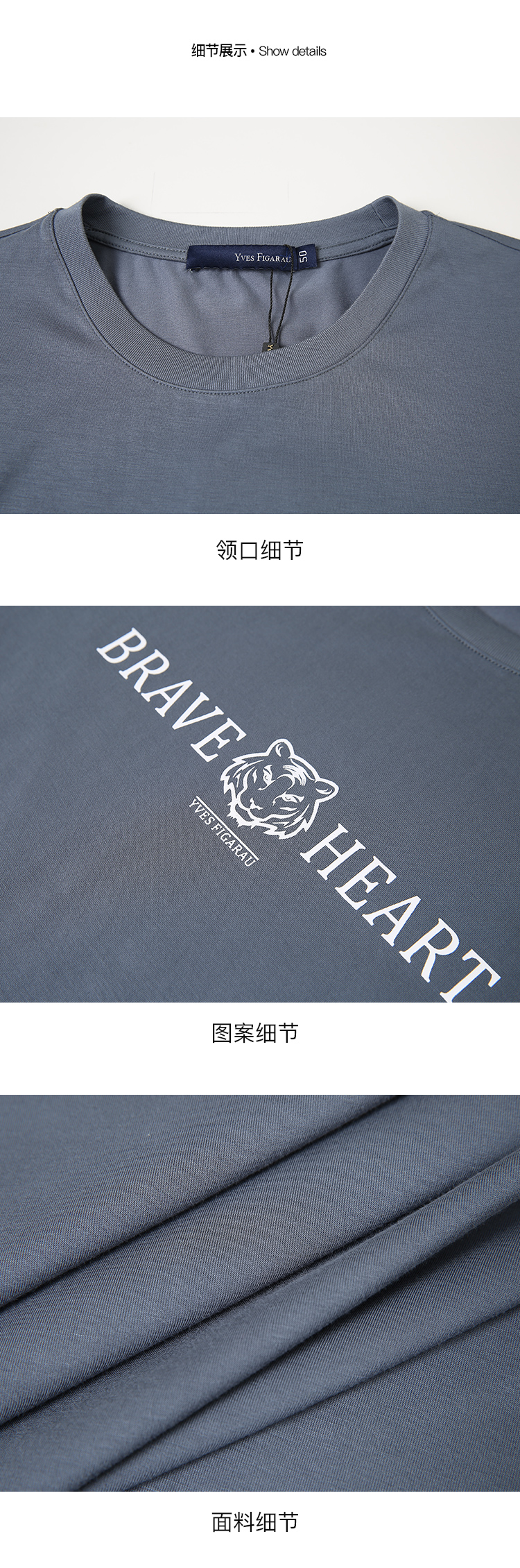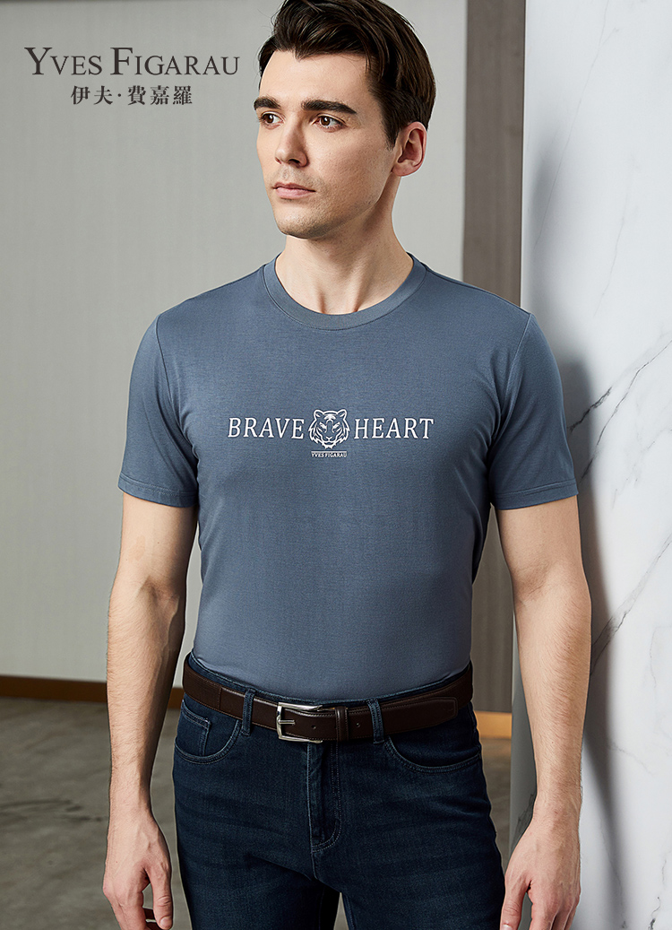 YvesFigarau伊夫·费嘉罗新款夏季男士简约印花舒适透气休闲圆领短袖T恤936852
