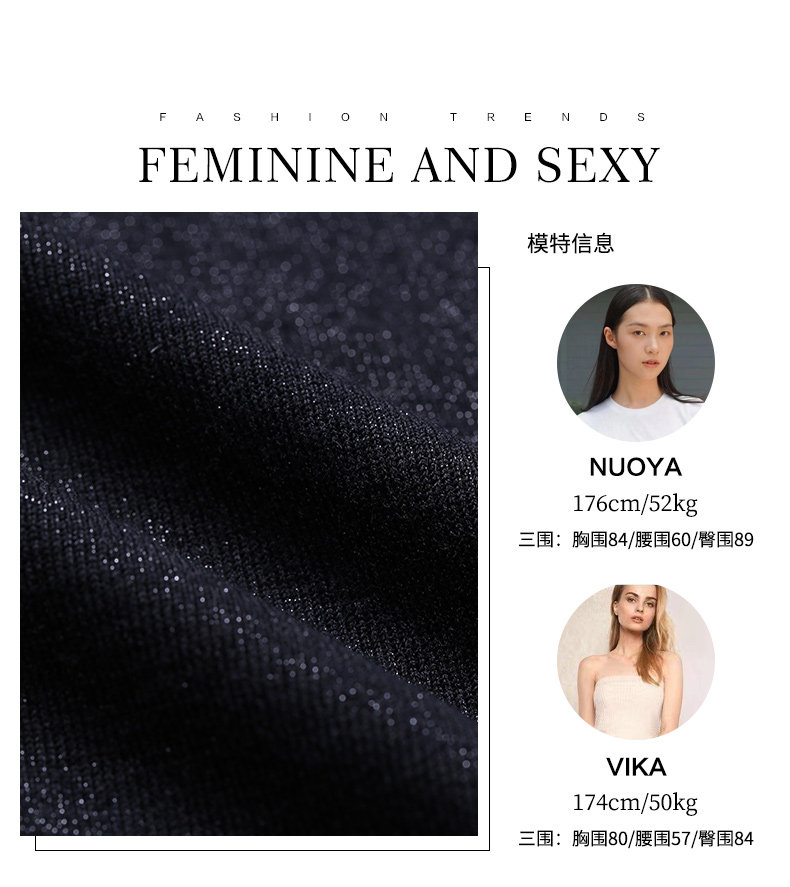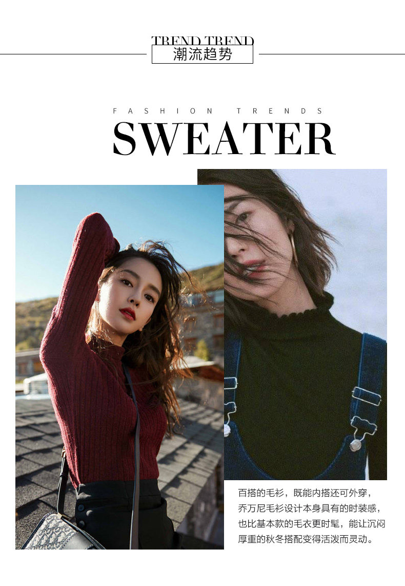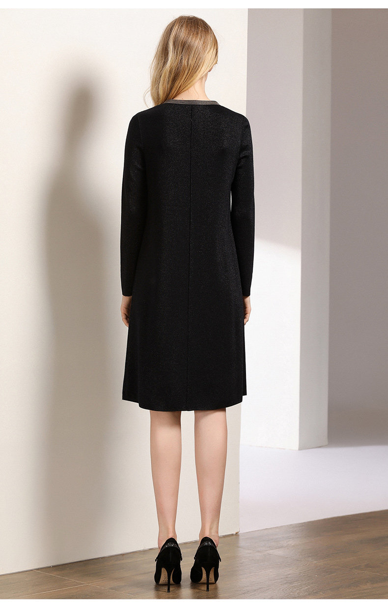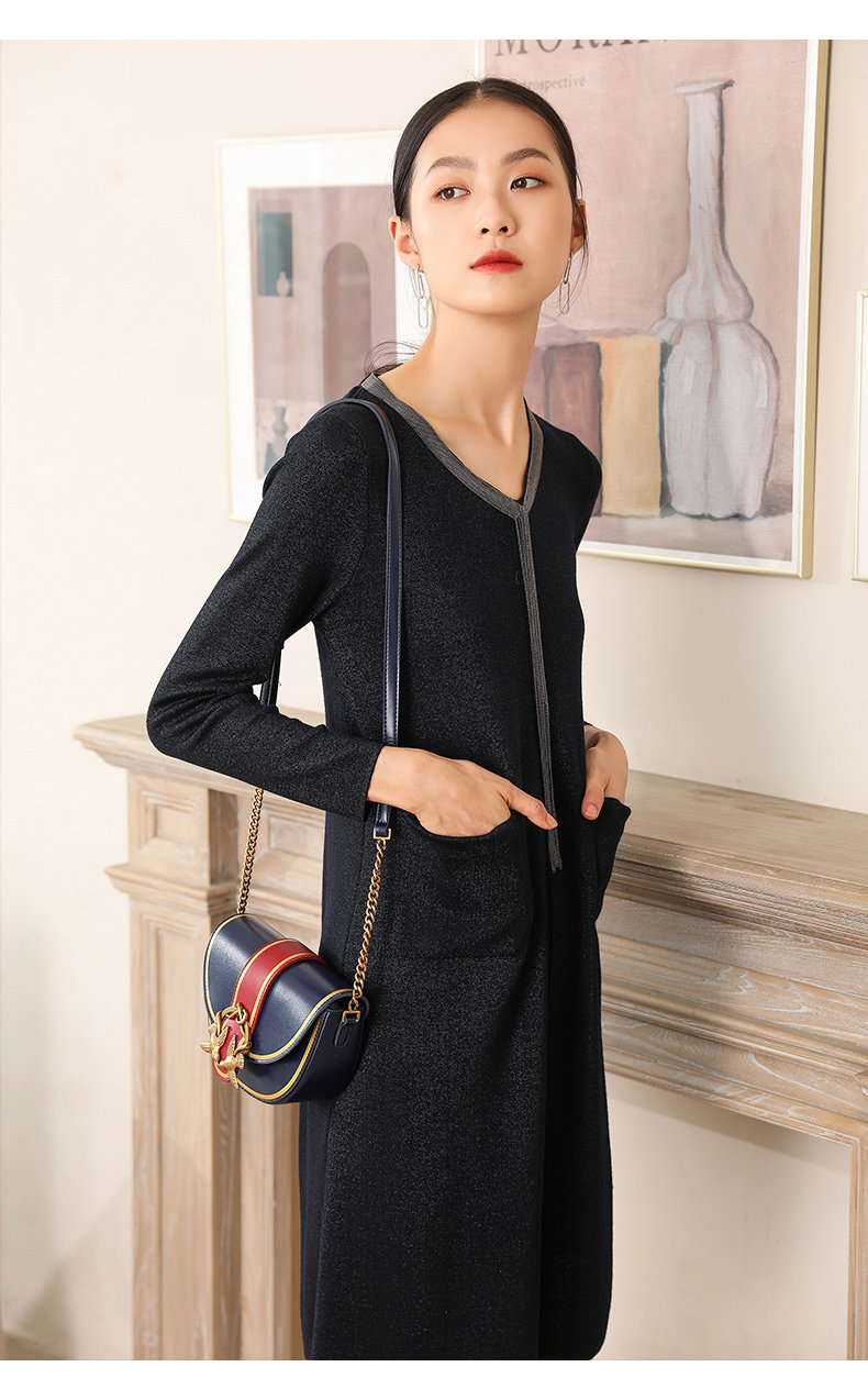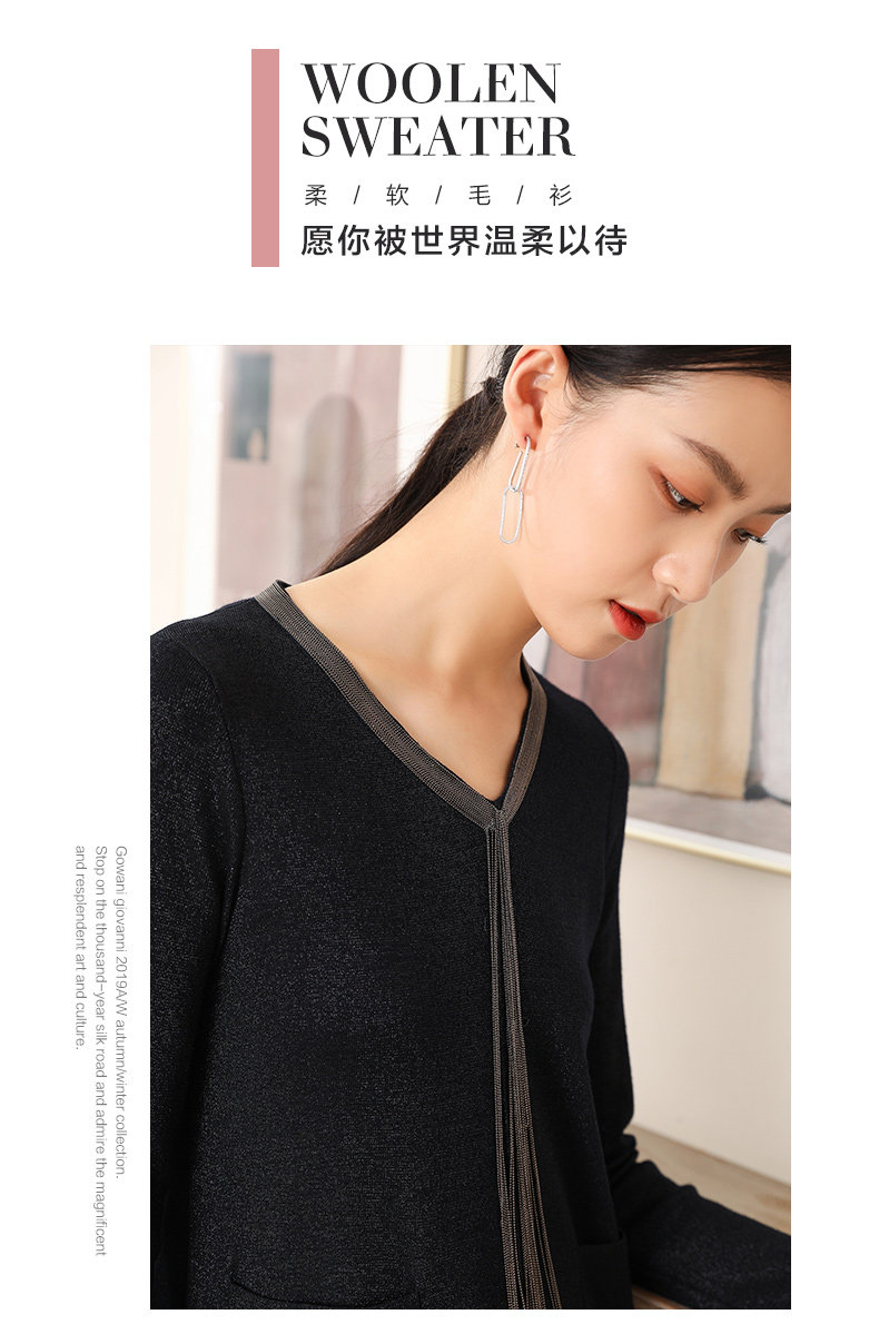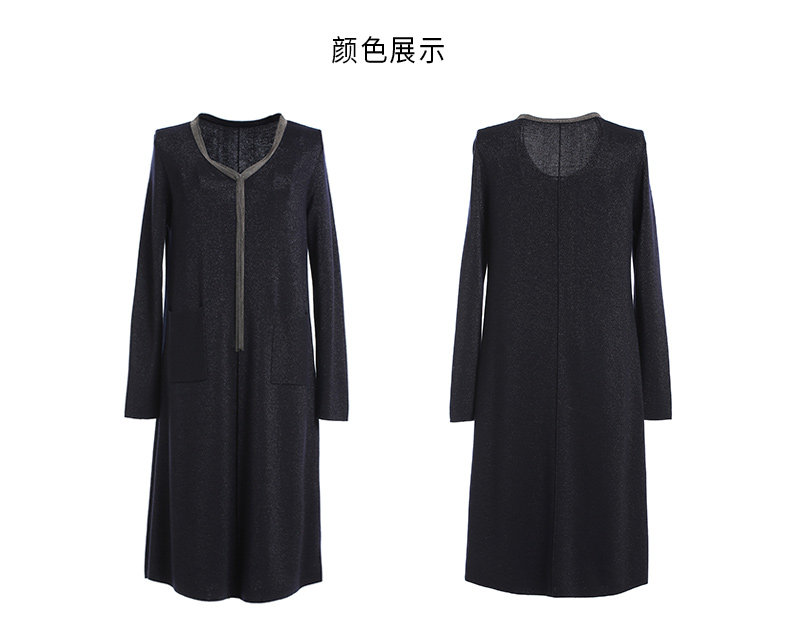乔万尼秋装女长袖打底衫V领直筒显瘦羊毛针织连衣裙中长EN3M410