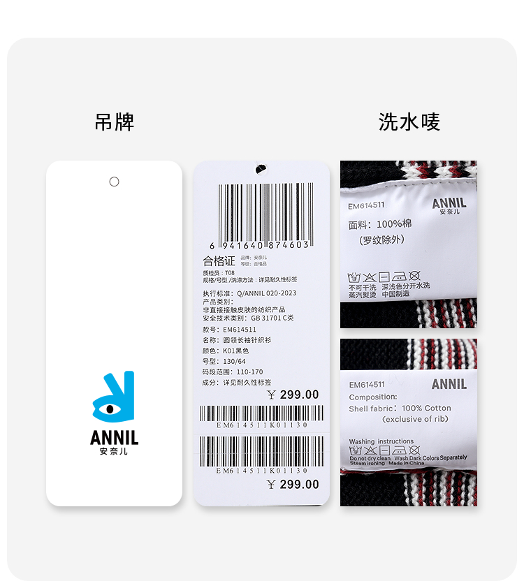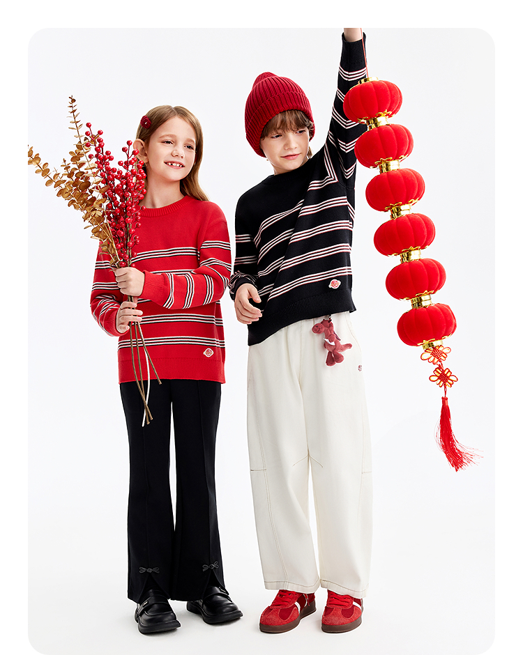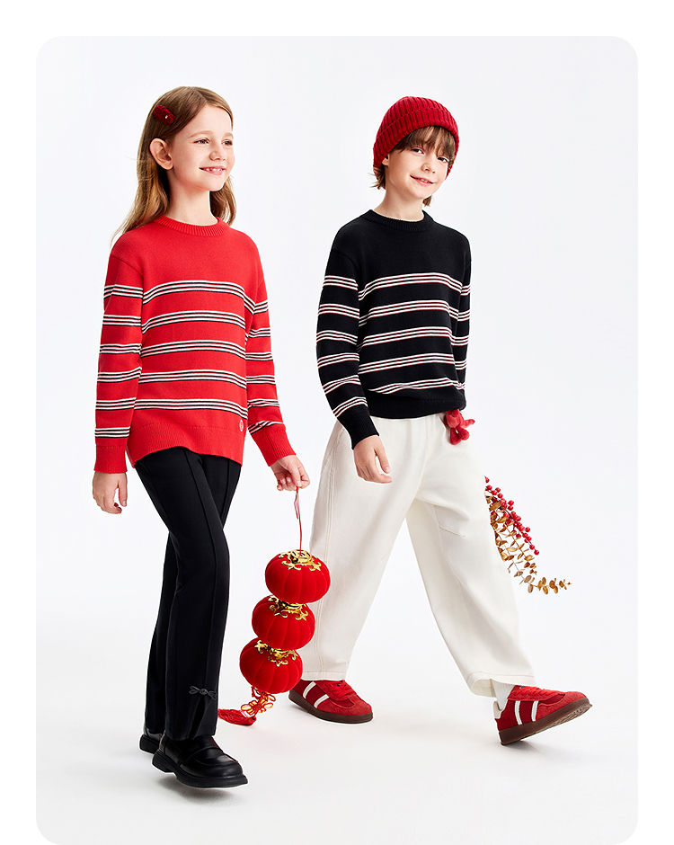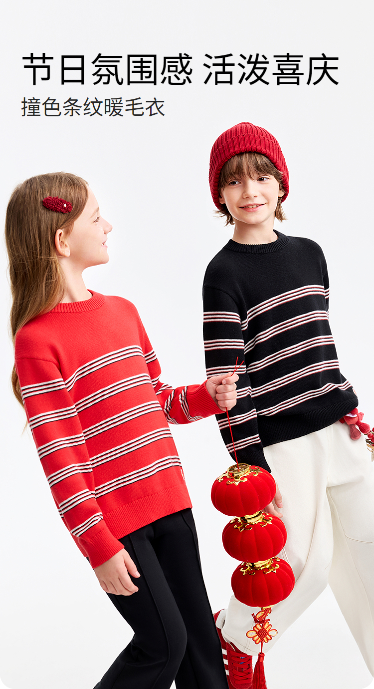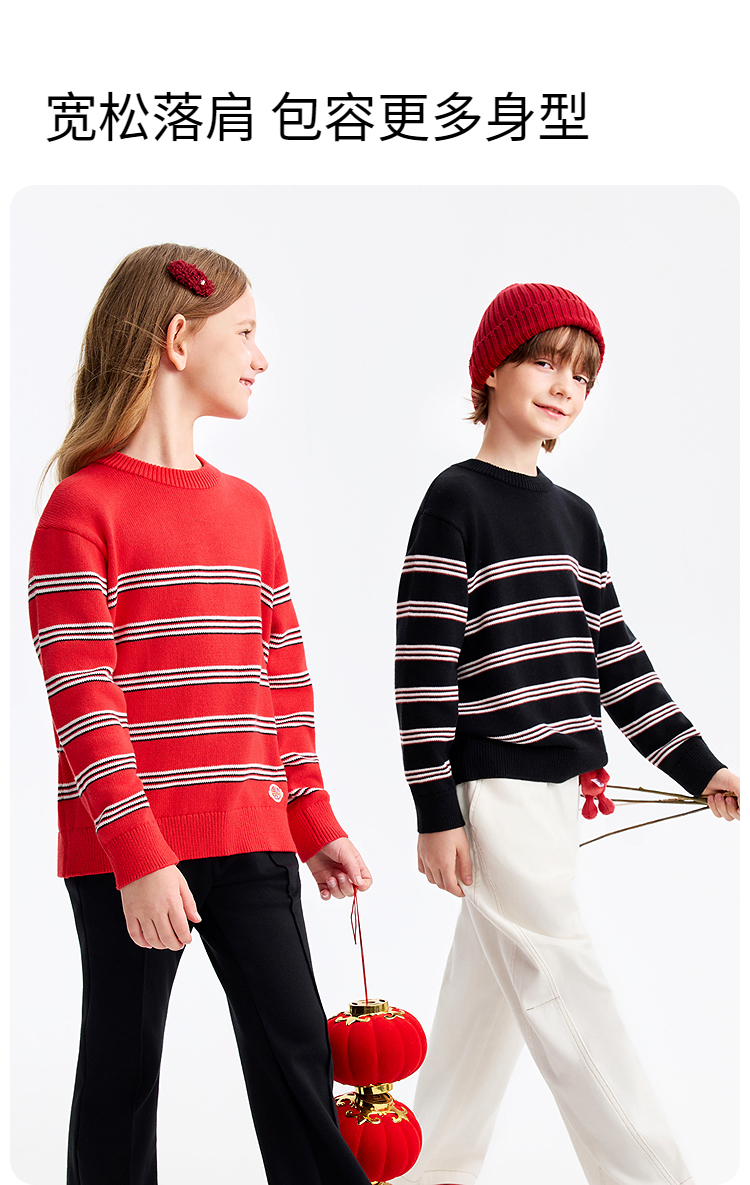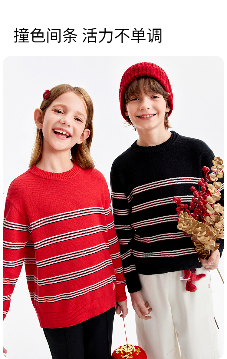 【新年波】男女童圆领长袖针织衫春季新款安奈儿童装EM614511