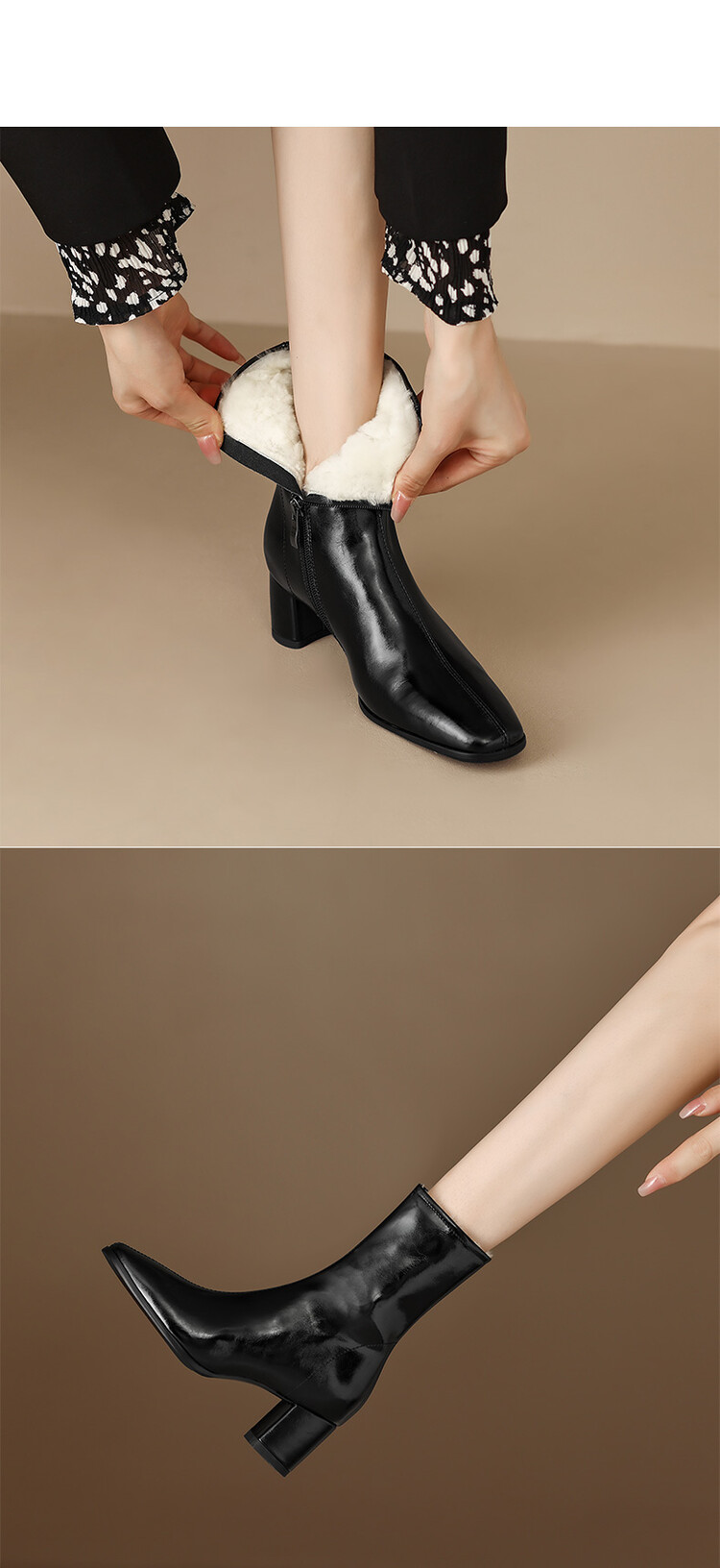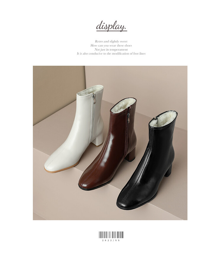 【预售5天】简约洋气女靴加绒加厚东北低跟瘦瘦靴冬季羊毛靴棉靴&A27