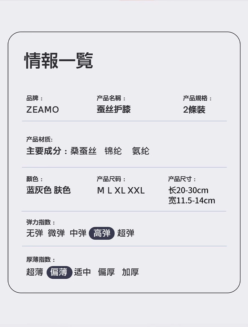 【商品名称】ZEAMO蚕丝护膝拉绒防滑款