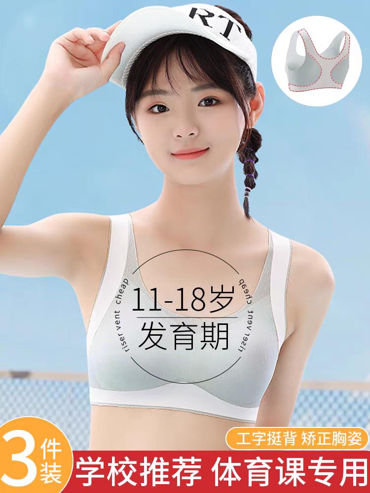 工字背背佳文胸 (三件装)| 小沐佳桐 背心一体式 初高中生发育期文胸 轻薄透气 轻弹不易变形