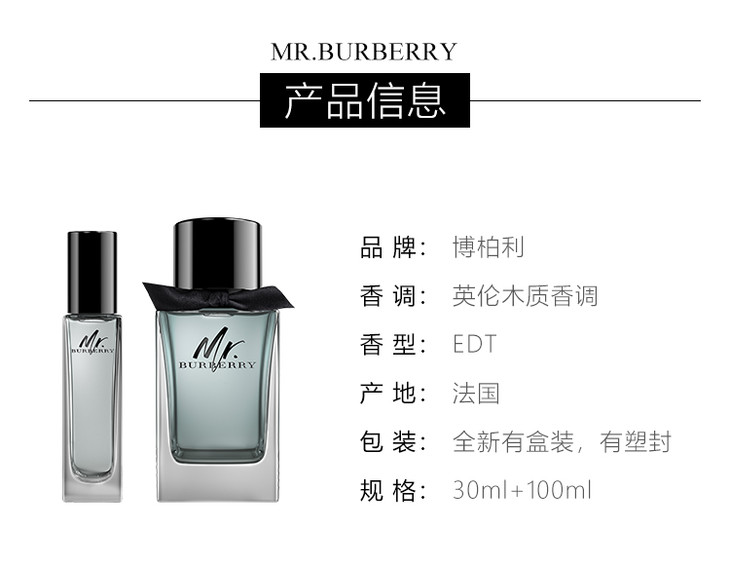 博柏利先生男士淡香水礼盒套装(博柏利先生英伦男士淡香水礼盒套装)100ml淡香水+30ml淡香水