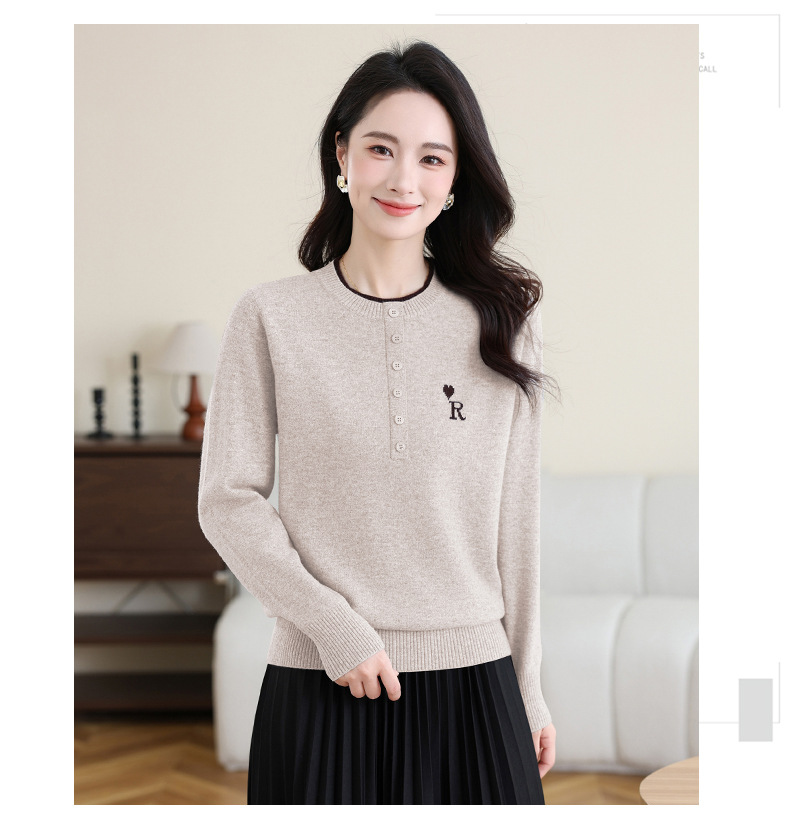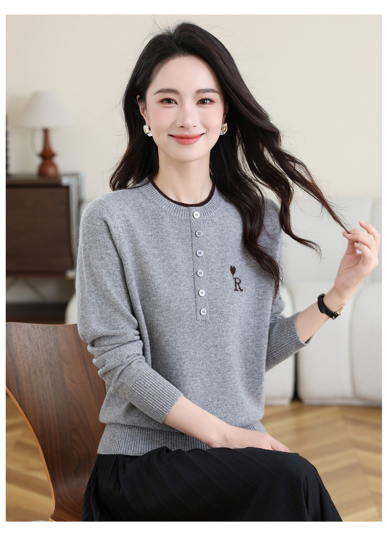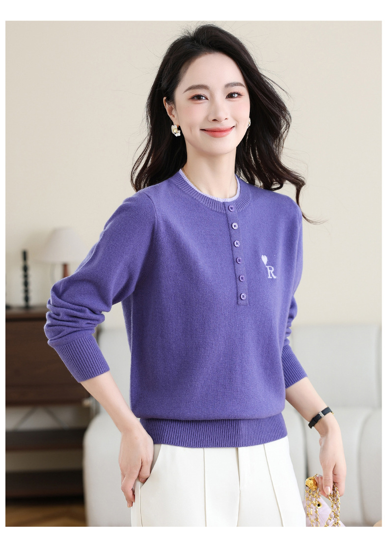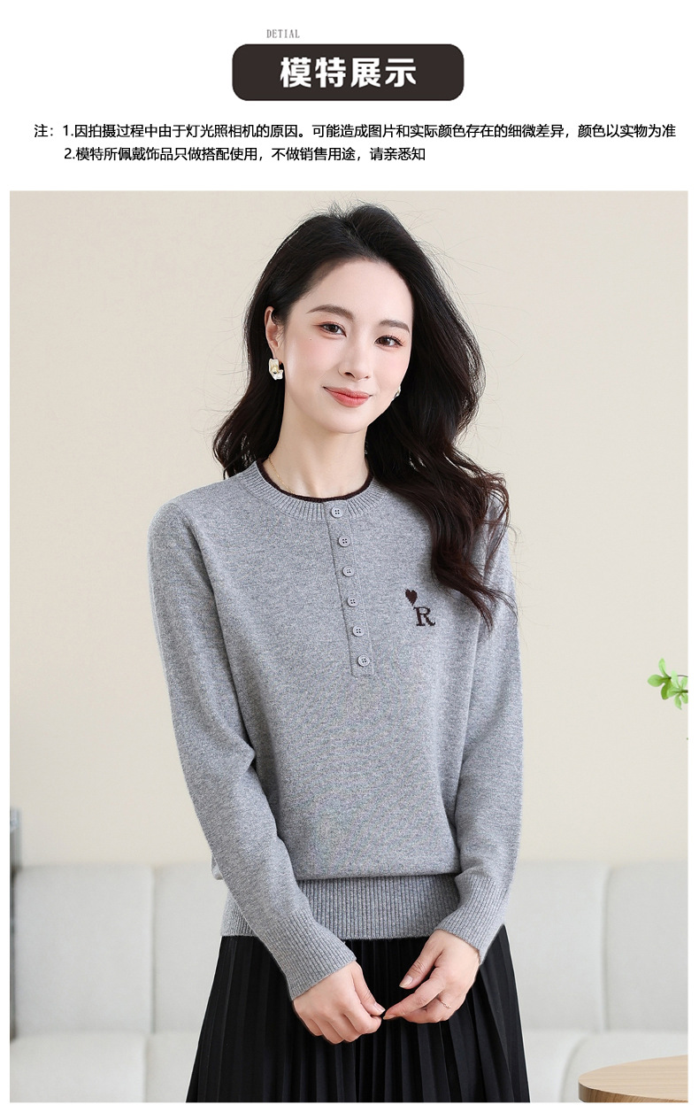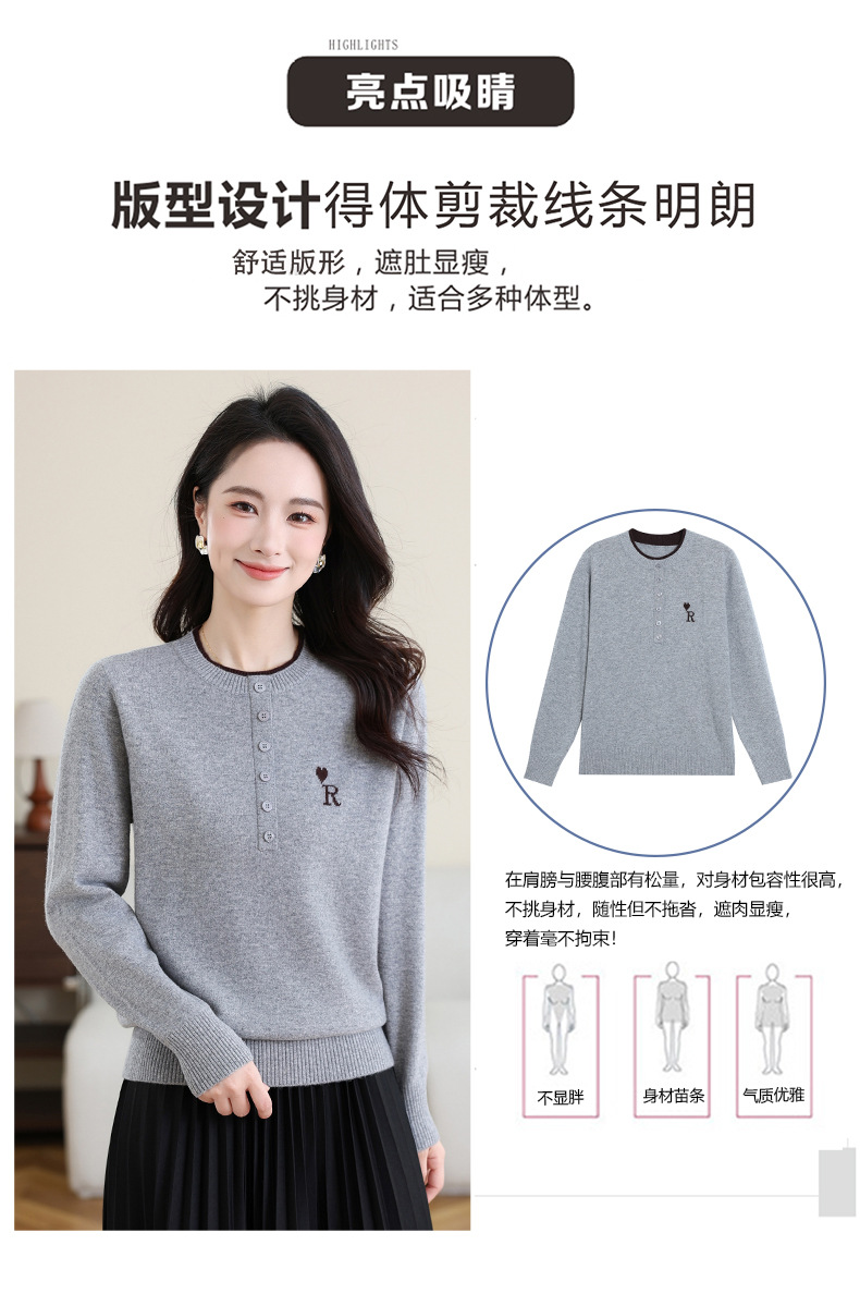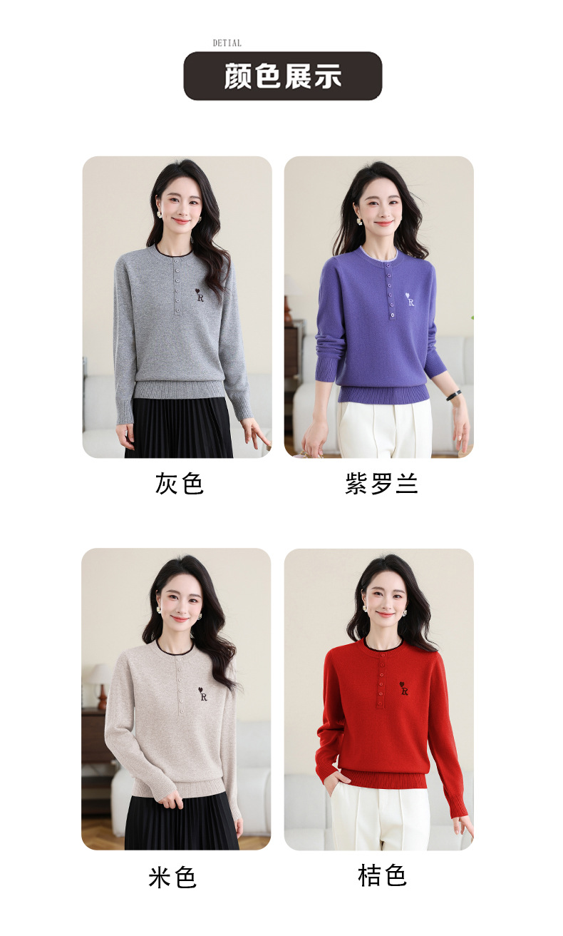 女士100纯羊毛衫,针织打底衫洋气圆领上衣CC-MH-335