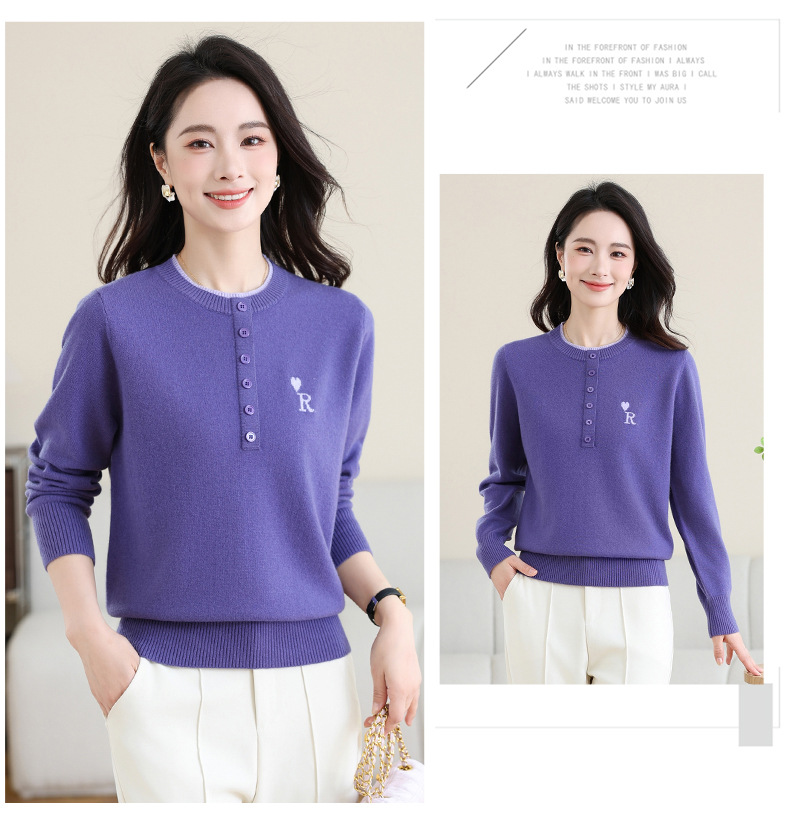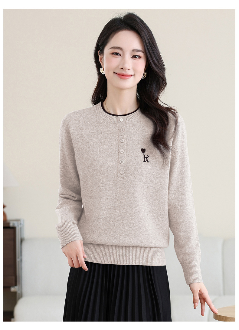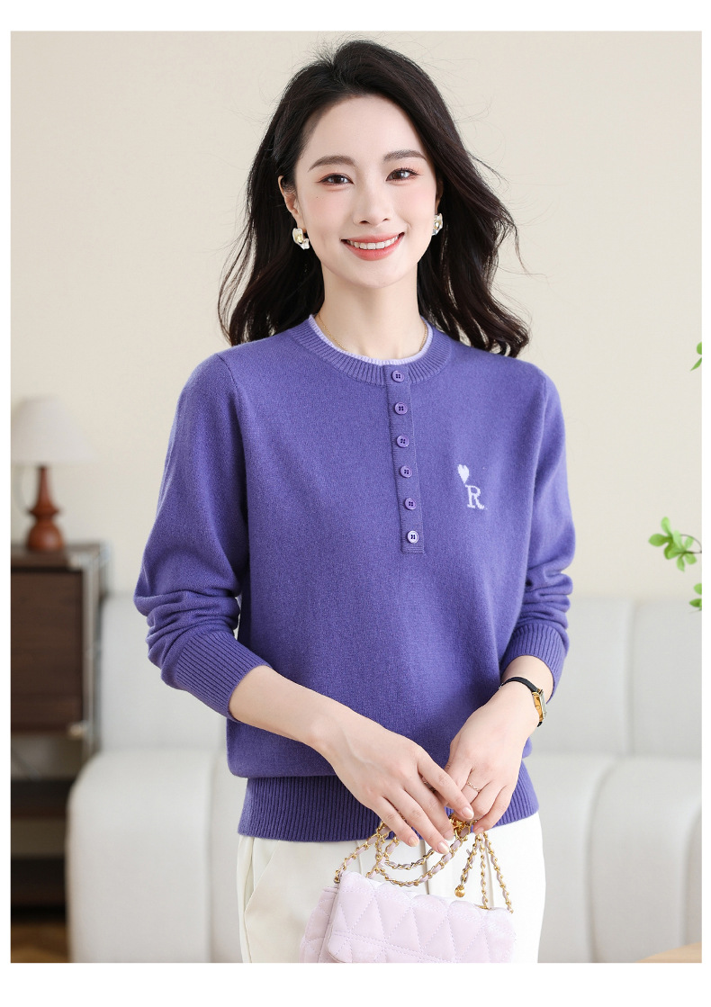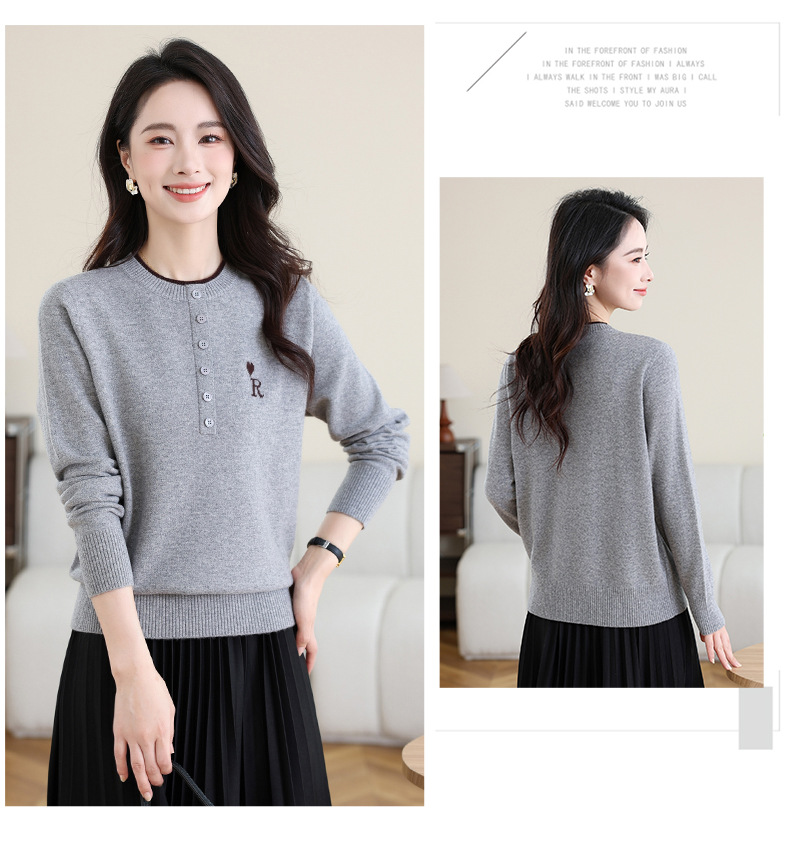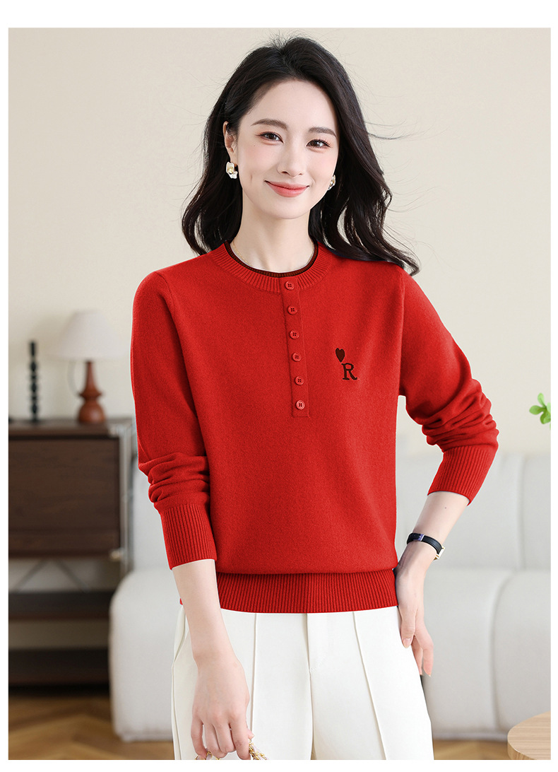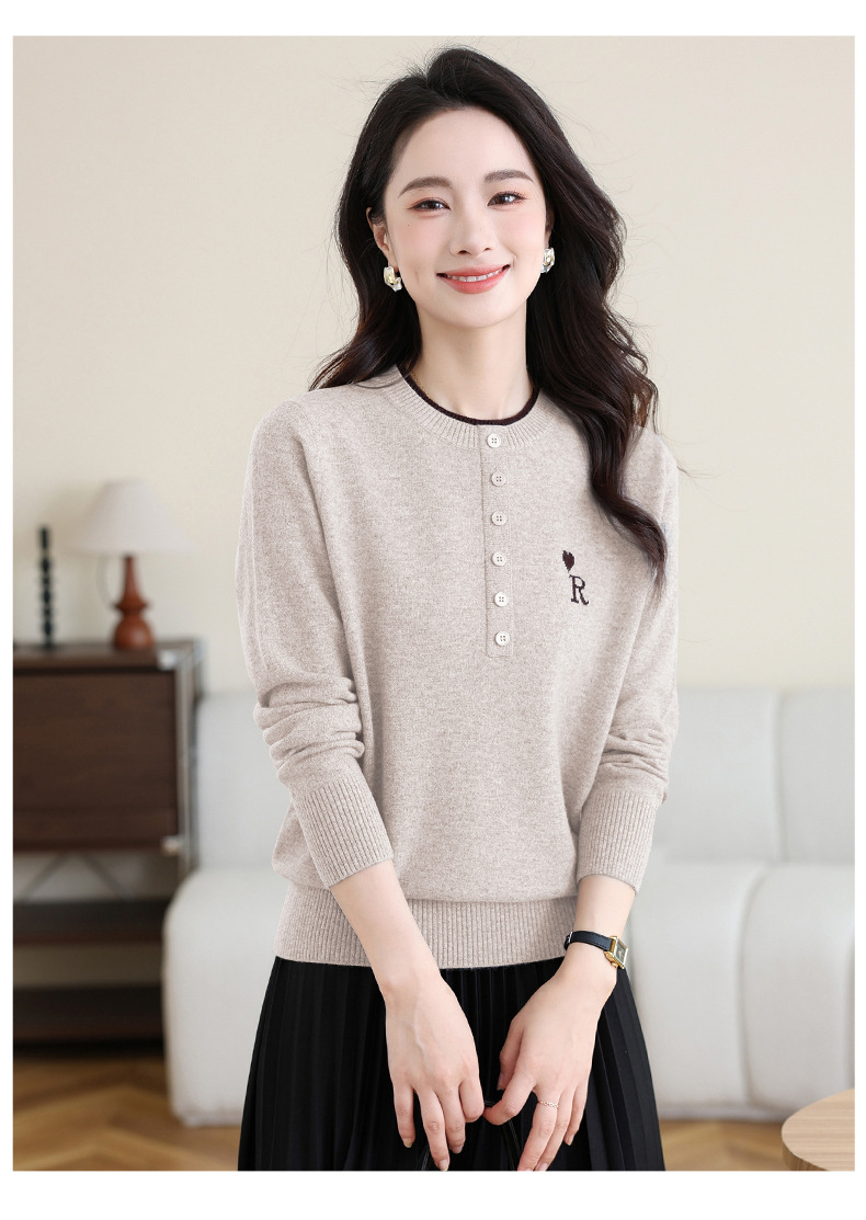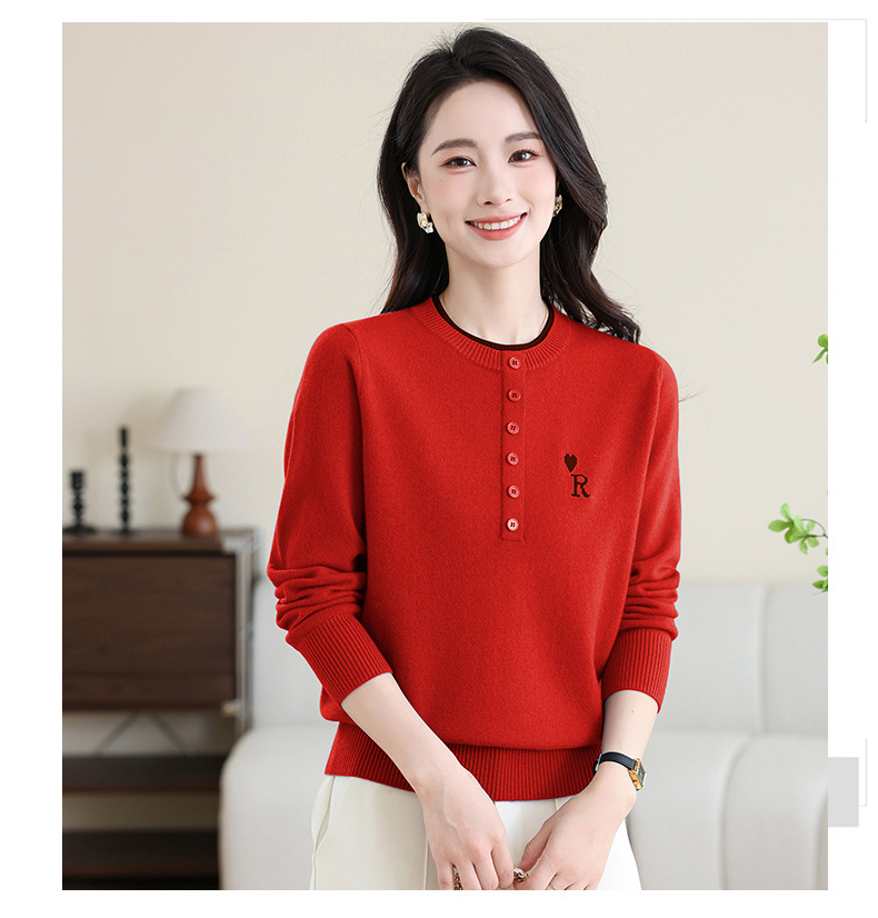 女士100纯羊毛衫,针织打底衫洋气圆领上衣CC-MH-335