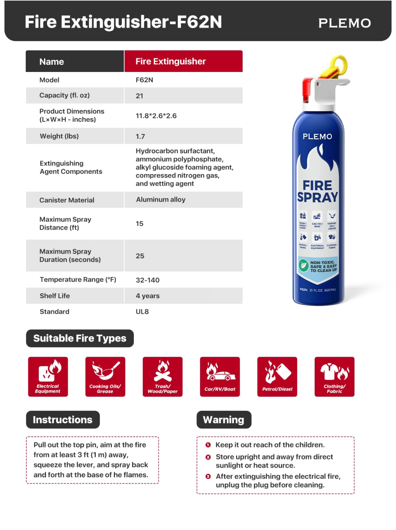 PLEMO水基灭火器大瓶钢瓶厨房桌面车载通用