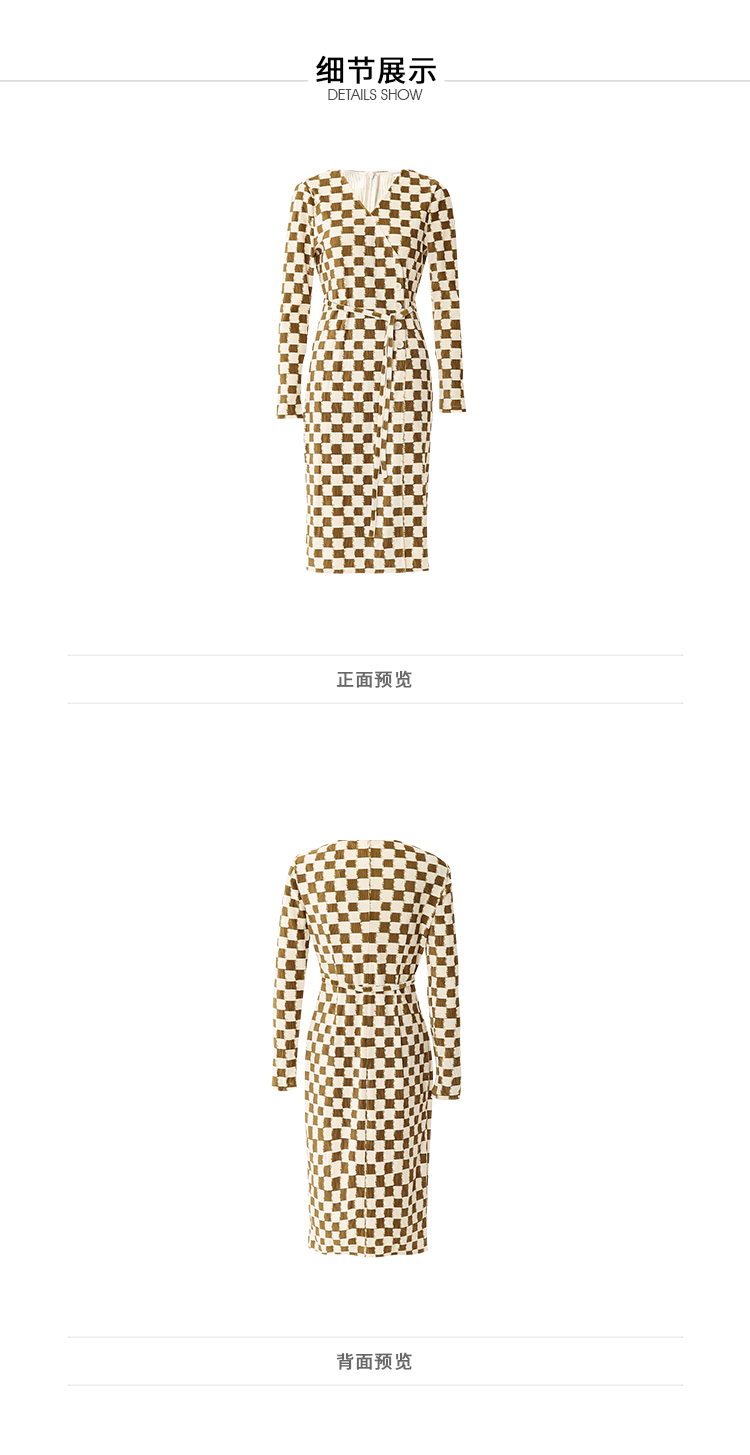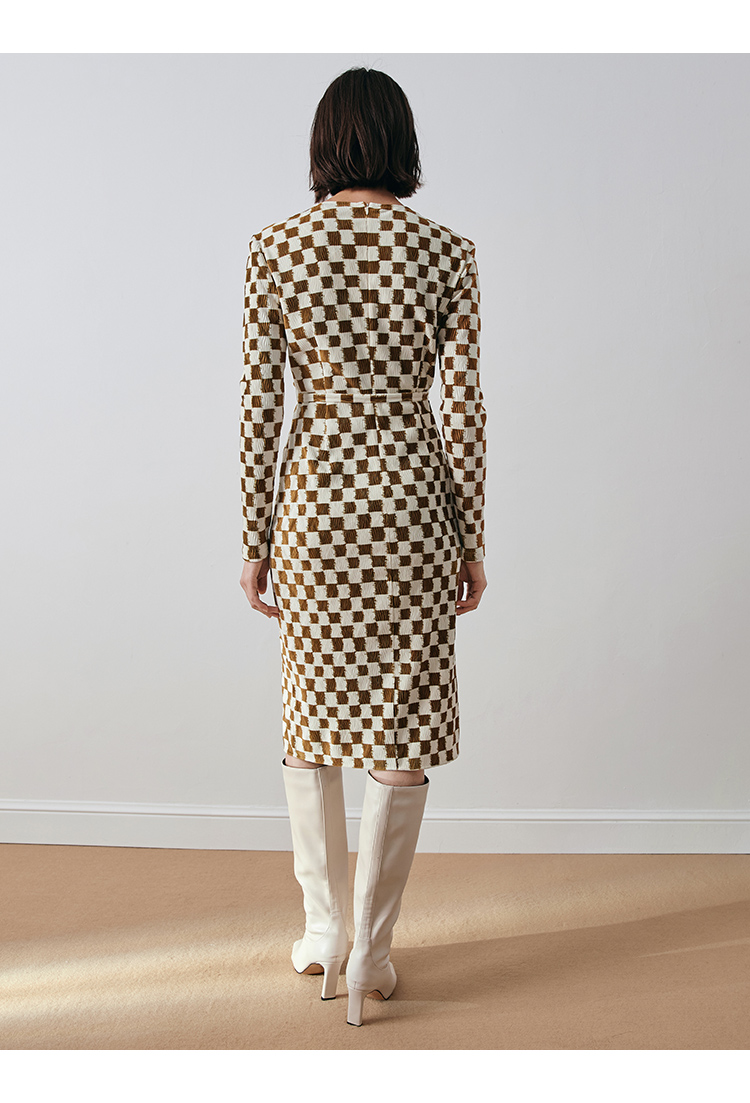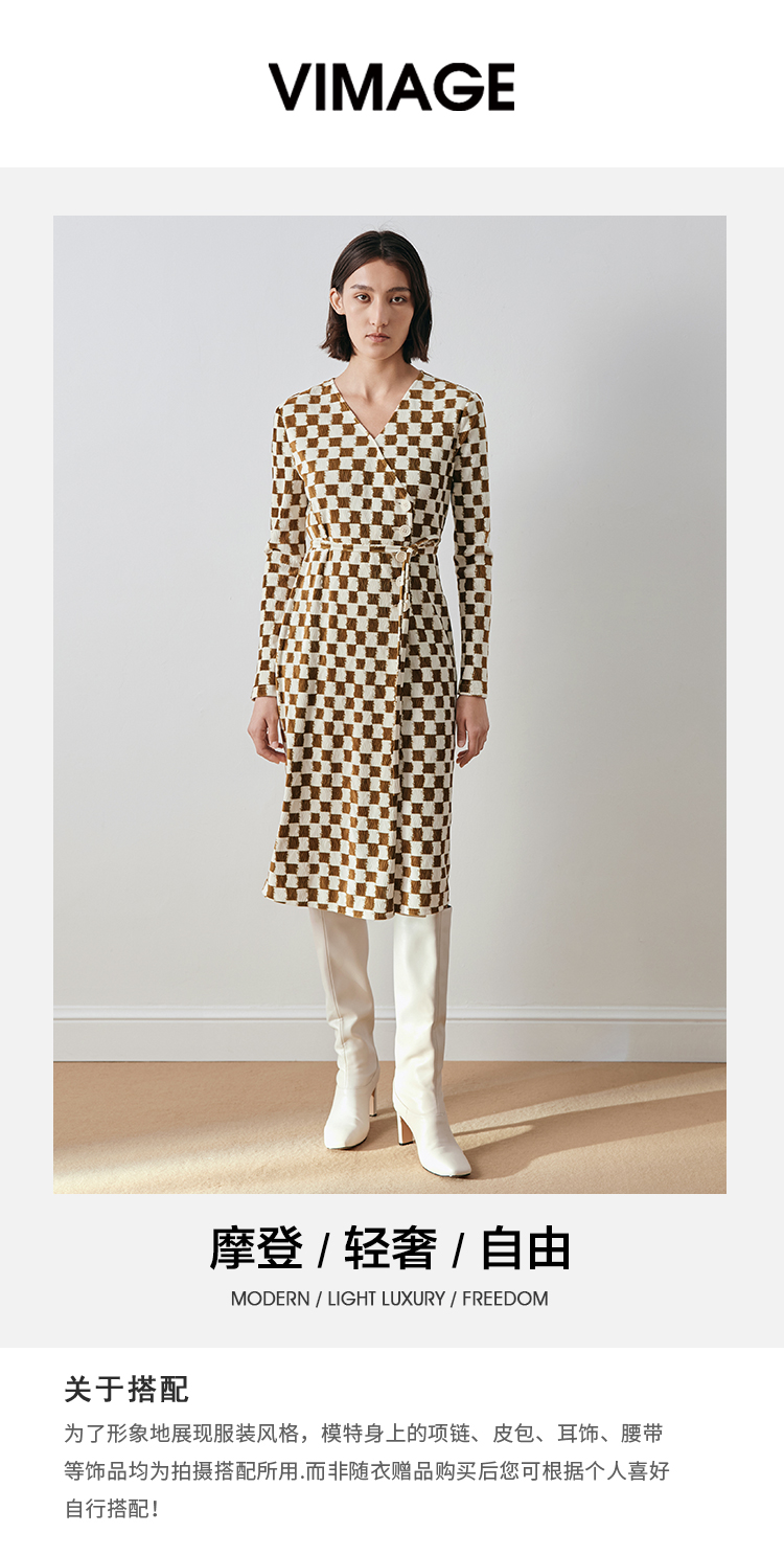 VIMAGE纬漫纪冬季新款时尚气质棋盘格通勤修身连衣裙V2007631